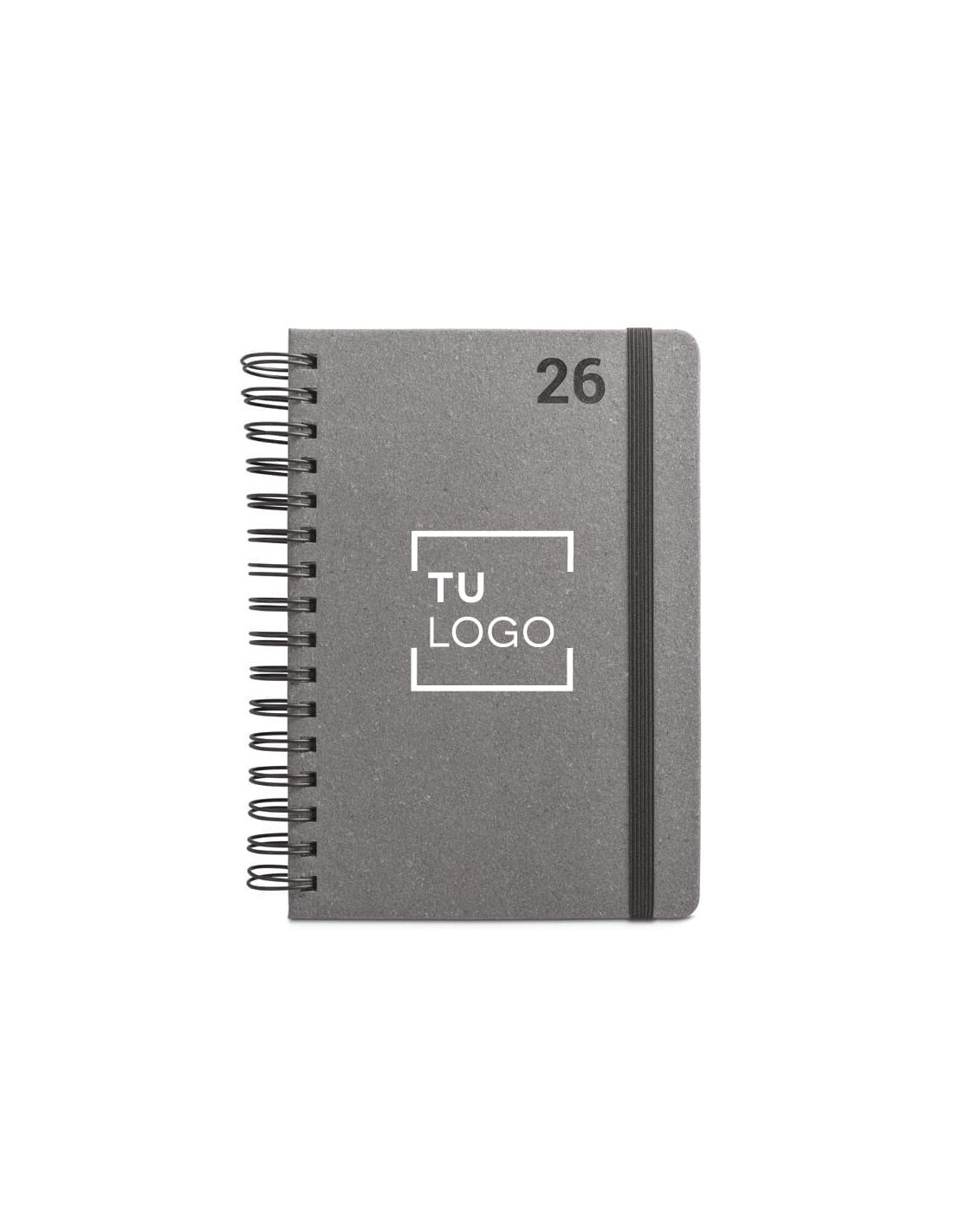 Organiza tu día a día con esta agenda diaria A5 con anillas, elaborada en cuero reciclado (58%) y diseñada para durar. Su cierre elástico mantiene la agenda cerrada de manera segura, mientras que sus hojas con papel certificado FSC™ garantizan un uso responsable con el medio ambiente. Ideal para profesionales, estudiantes o como regalo corporativo sostenible.