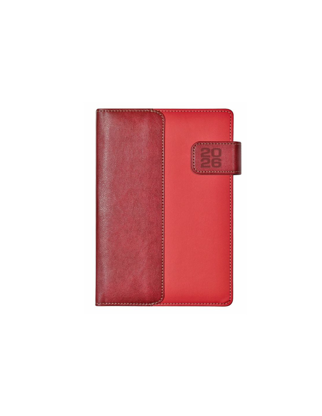Agenda diaria fabricada en PU con portadas similares a piel de diferentes colores y cierre de solapa con imán. Moderna agenda día/página de 15 x 21 cm impresa interiormente a dos tintas y con 362 páginas dispuestas por meses separados con uñeros de colores y marcapáginas en color gris. Solapa con año grabado a fuego. Páginas de papel de 65 gr de color crema. Diferentes colores disponibles.