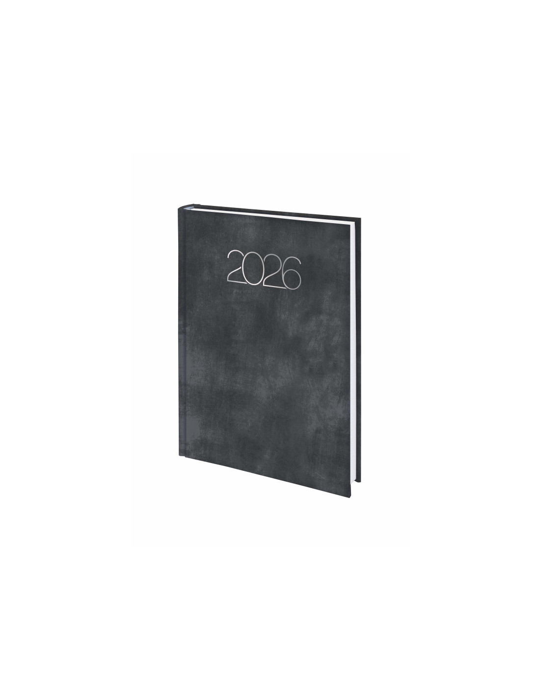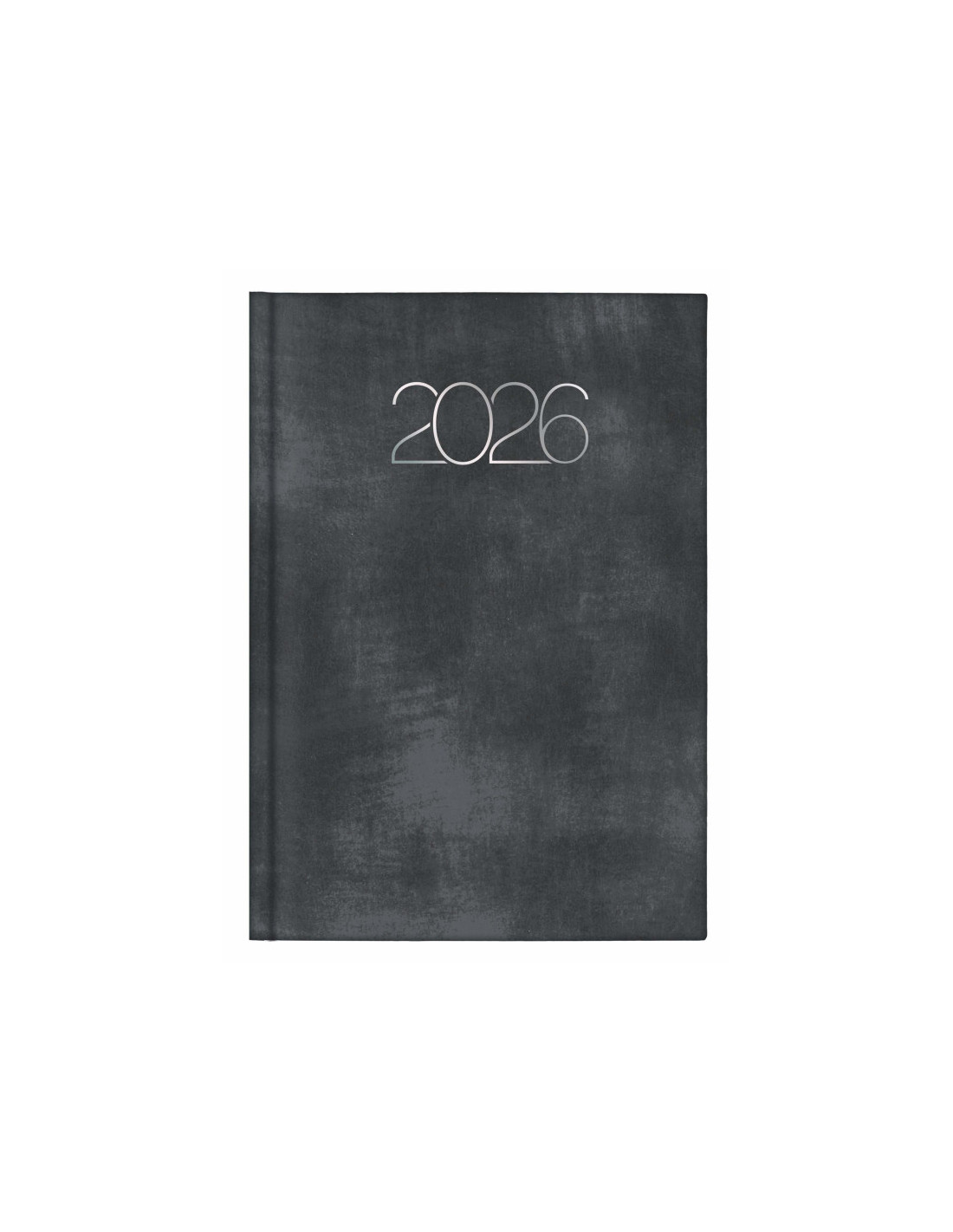 Agenda dietario base con impresión interior y páginas blancas de 70 gr. Tamaño 14,5 x 20,5 cm. 320 páginas de información y dietario, en formato día/página. Cabezadas y cinta de registro en color gris perla de 5 mm.
