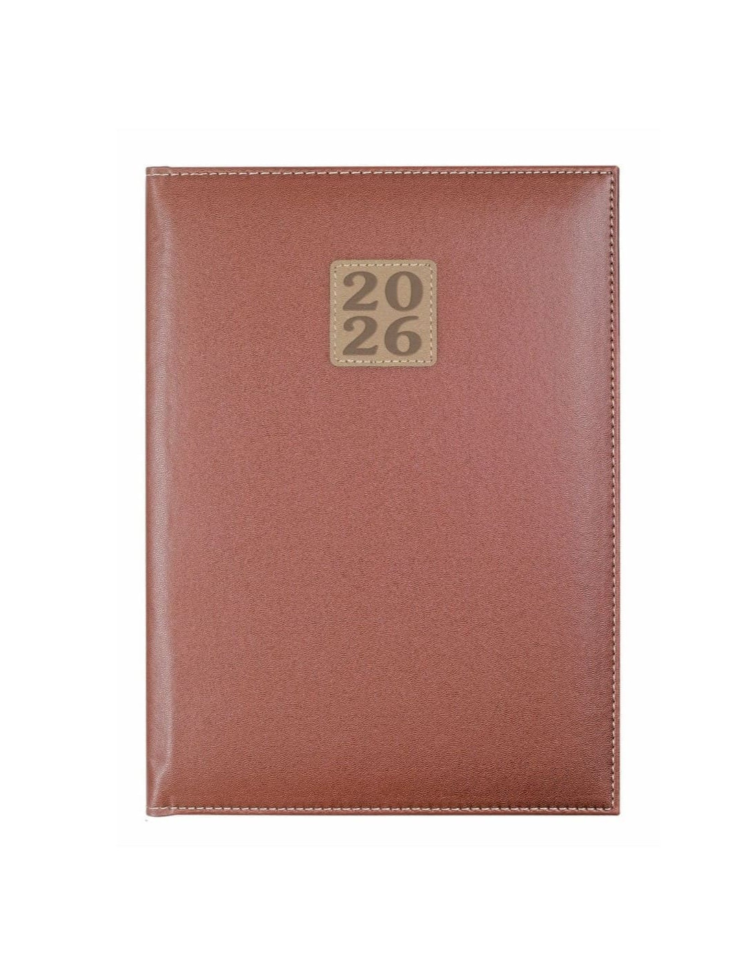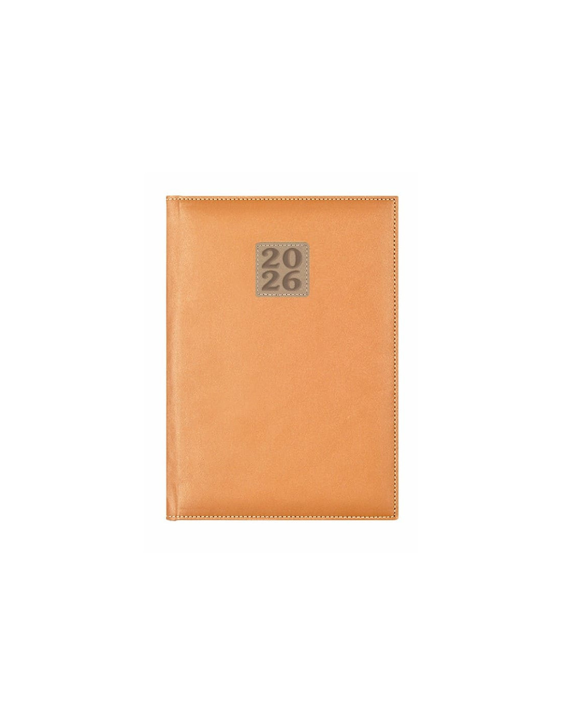 Agenda Rodeo fabricada en piel sintética de colores sobrios con año grabado a fuego en pieza de color cuero. Elegante agenda de 17 x 24 cm con 344 páginas de papel color crema. Una práctica agenda diaria con interior impreso a dos tintas y marcapáginas en color gris plata.