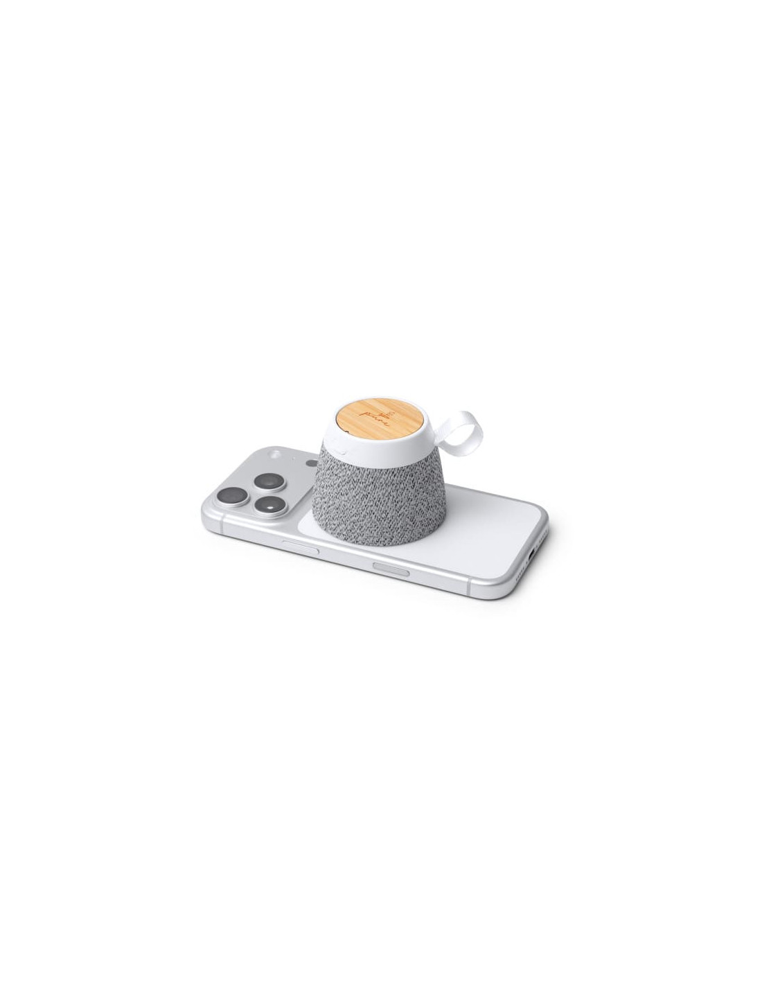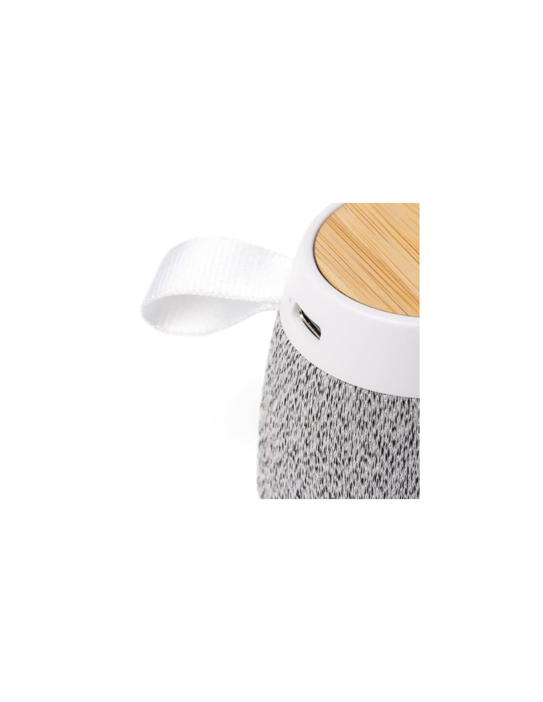Altavoz inalámbrico con diseño elegante fabricado en bambú natural y tejido RPET reciclado, que combina sostenibilidad y funcionalidad. Ofrece una potencia de 5W que proporciona un sonido claro y equilibrado, ideal para escuchar música en casa, en la oficina o al aire libre. Batería con capacidad de 300 mAh. Funciona mediante conexión Bluetooth 6.0 y cuenta con función manos libres para responder llamadas con comodidad. Incluye un práctico anillo magnético que permite utilizarlo como soporte para smartphone, aportando mayor versatilidad en su uso. También puede adherirse a otras superficies metálicas para aprovecharlo en todo tipo de situaciones. Además, incorpora un asa de transporte para facilitar su movilidad. Con unas dimensiones aproximadas de 11 x 8 x 5 cm, es un gadget moderno, perfecto como regalo promocional tecnológico.