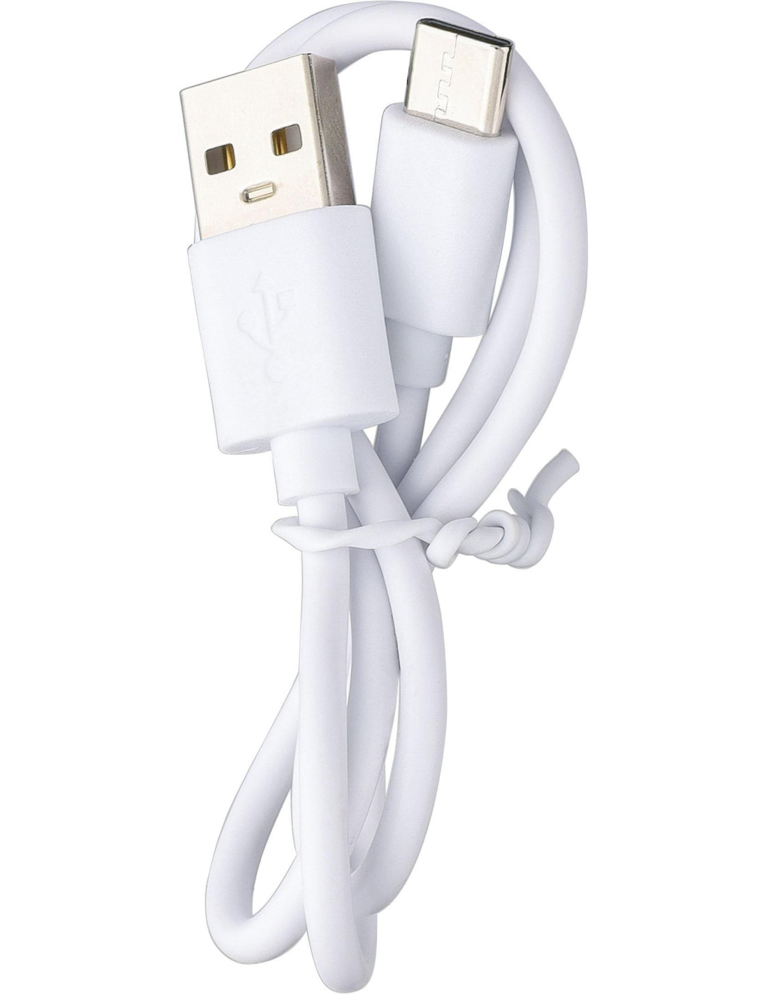 Incluye cable USB-C de 30 cm, un cordón de nailon para facilitar su transporte y se presenta en caja de cartón reciclable, ideal para acciones promocionales con conciencia medioambiental.