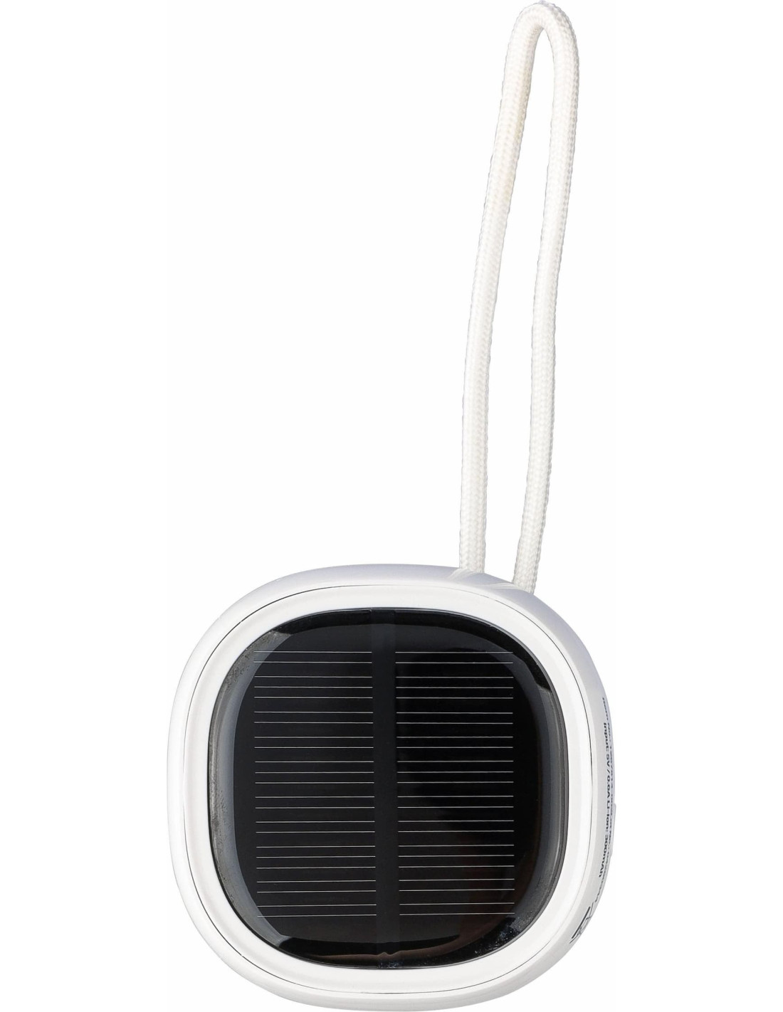 Altavoz inalámbrico ecológico fabricado con ABS reciclado y tela RPET, una combinación que apuesta por la sostenibilidad sin renunciar al diseño. Su panel solar integrado permite aprovechar la energía solar para recargar su batería de 300 mAh, ofreciendo una autonomía de entre 2 y 3 horas de reproducción. Con una potencia de salida de 3 W y tecnología Bluetooth 5.3, garantiza una conexión estable y de calidad en un alcance de hasta 10 metros.