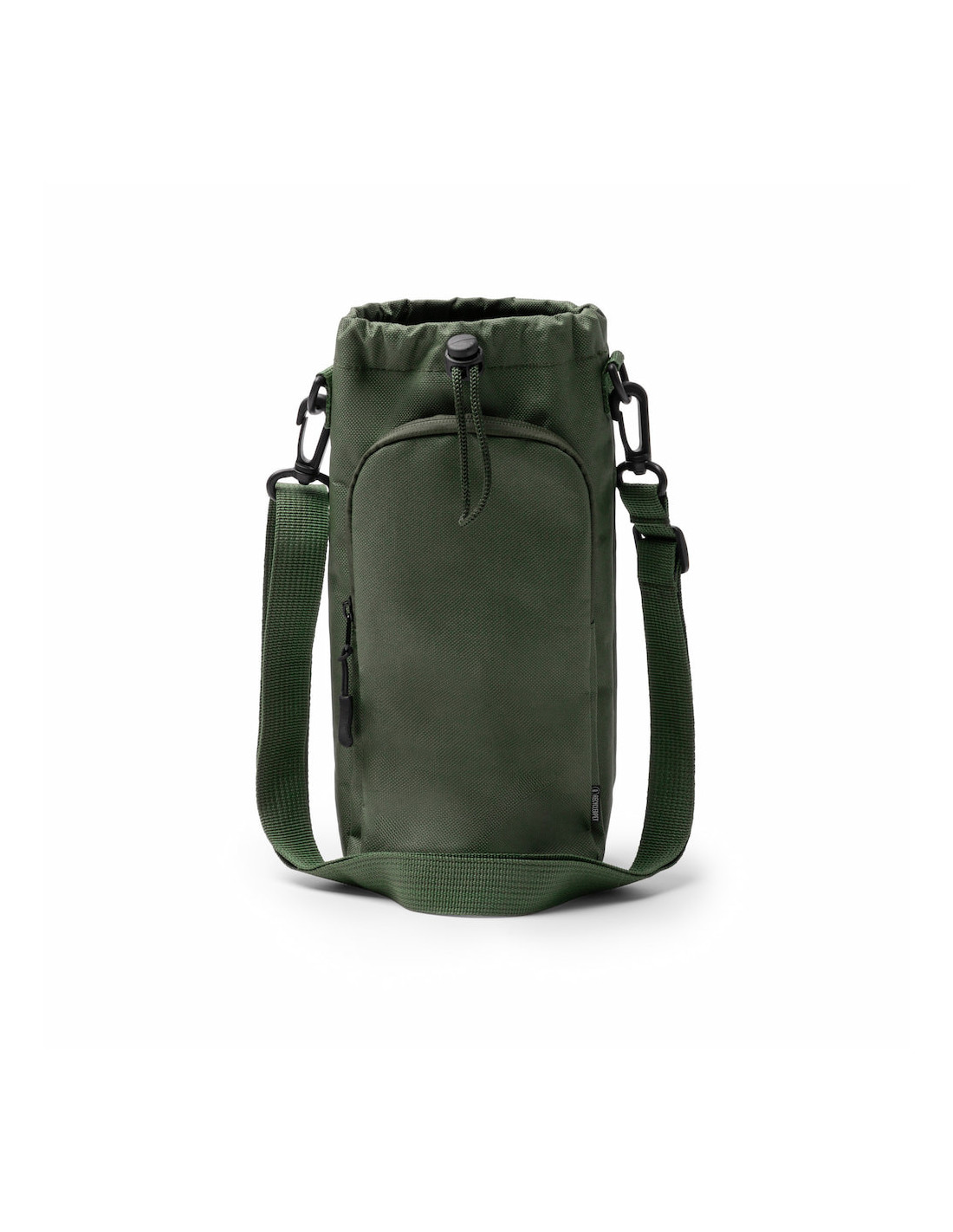 Bandolera portabotellas de hasta 2,5 litros fabricada en RPET 600D, una opción práctica y sostenible para transportar bebidas con total comodidad. Cuenta con cierre mediante ajustador de cordón que asegura el contenido, además de un bolsillo exterior de gran apertura con cremallera a juego y tirador en color negro para guardar pequeños objetos. Incorpora cinta ajustable con refuerzos, extraíble gracias a su mosquetón, lo que permite adaptarla a diferentes usos. Su interior forrado aporta mayor resistencia y durabilidad. Con unas dimensiones aproximadas de 12 x 27 x 8 cm, es ideal para excursiones, deporte o uso diario.