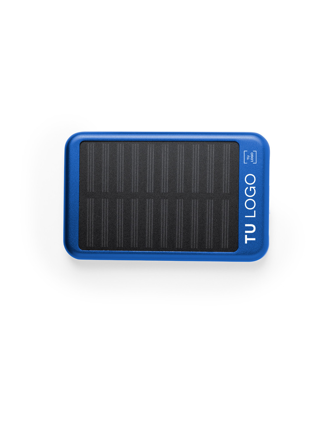 Batería externa fabricada en aluminio con carga solar de 4.000 mAh. Salida USB y cable micro USB incluido. Batería de grado A de acuerdo a la normativa CE y a los estándares RoHS y los requisitos de seguridad.
