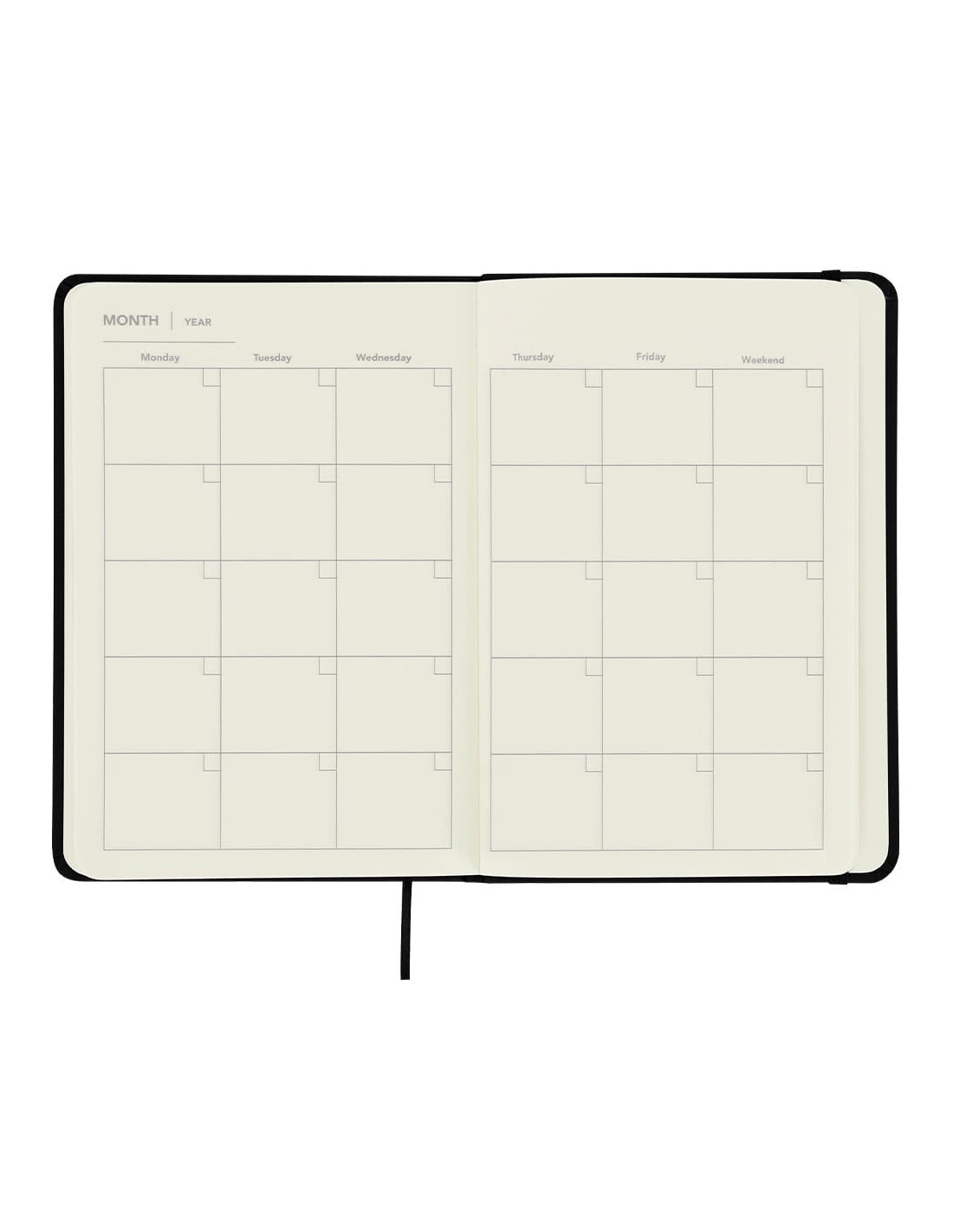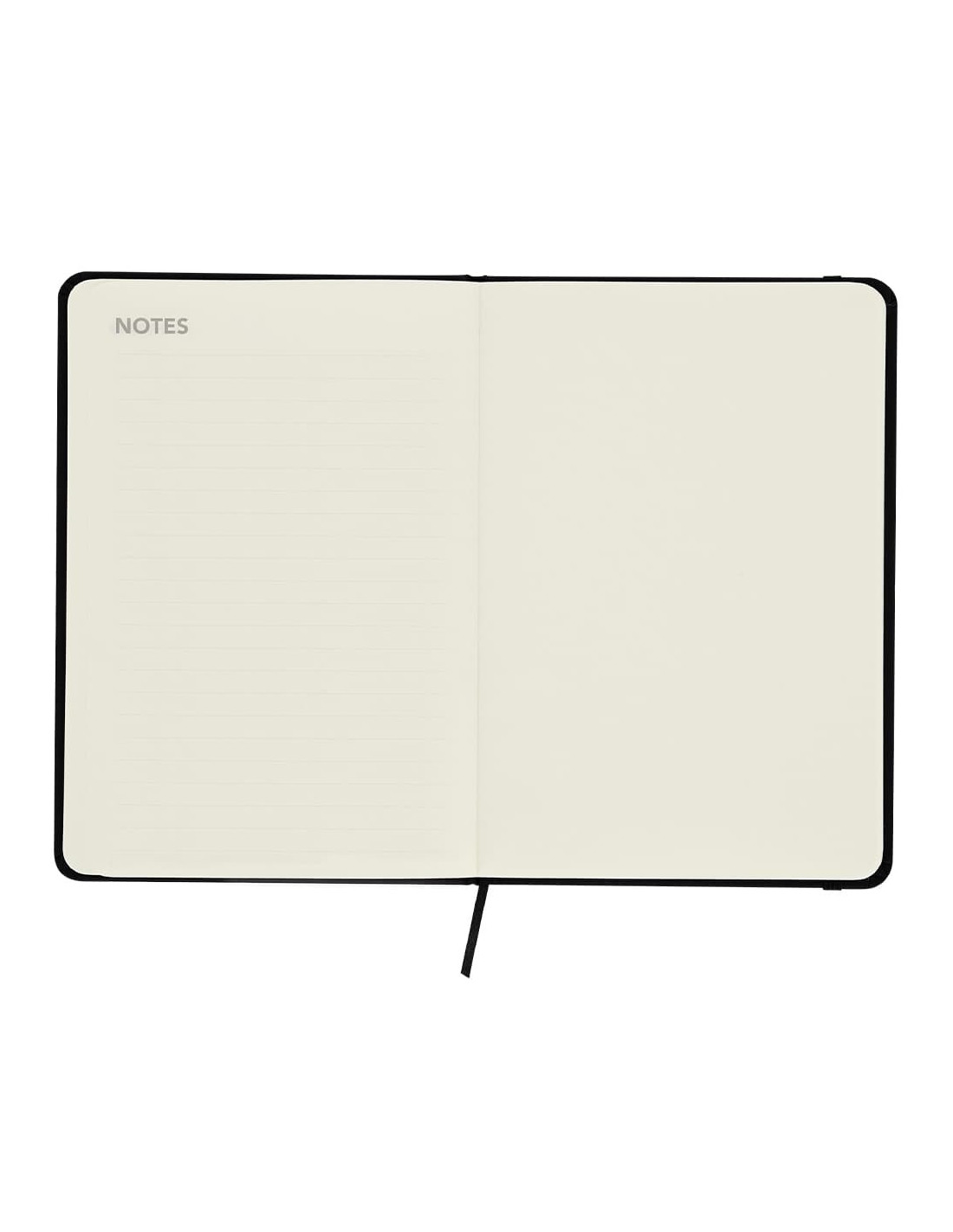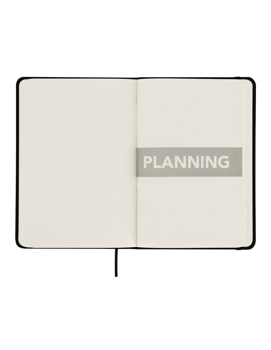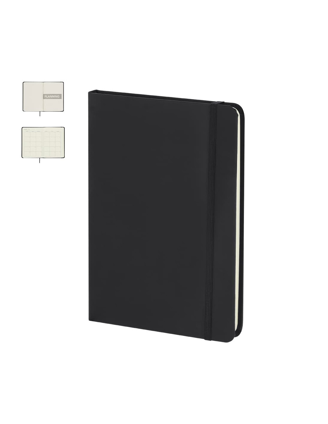 Bloc de notas con planificador mensual integrado, fabricado en PU con tapa rígida y banda elástica a tono. Incluye 98 hojas en color crema sin líneas, 13 hojas de planificación mensual no fechadas con vista de calendario y páginas adicionales con disposición a rayas para notas. Su tamaño A5 lo hace práctico para llevar en el día a día, ideal para organizar tareas, reuniones y objetivos mensuales. Un artículo versátil, perfecto como material de oficina, regalo corporativo o merchandising promocional.