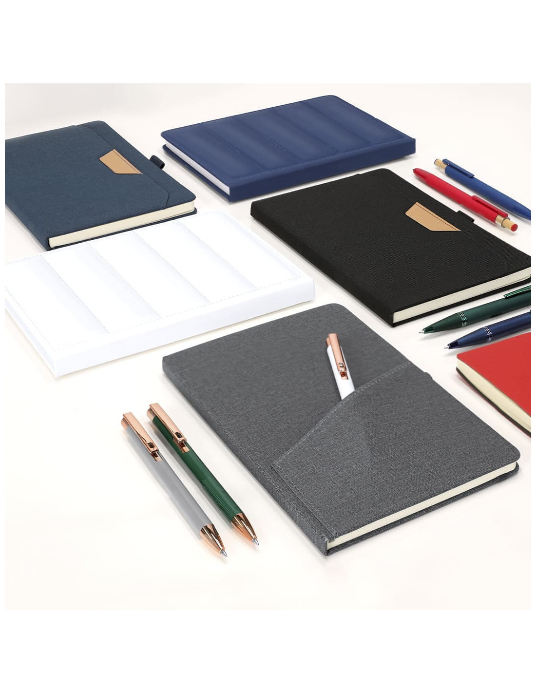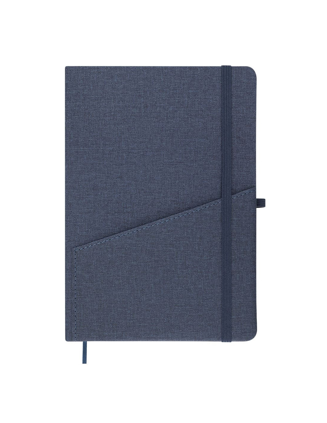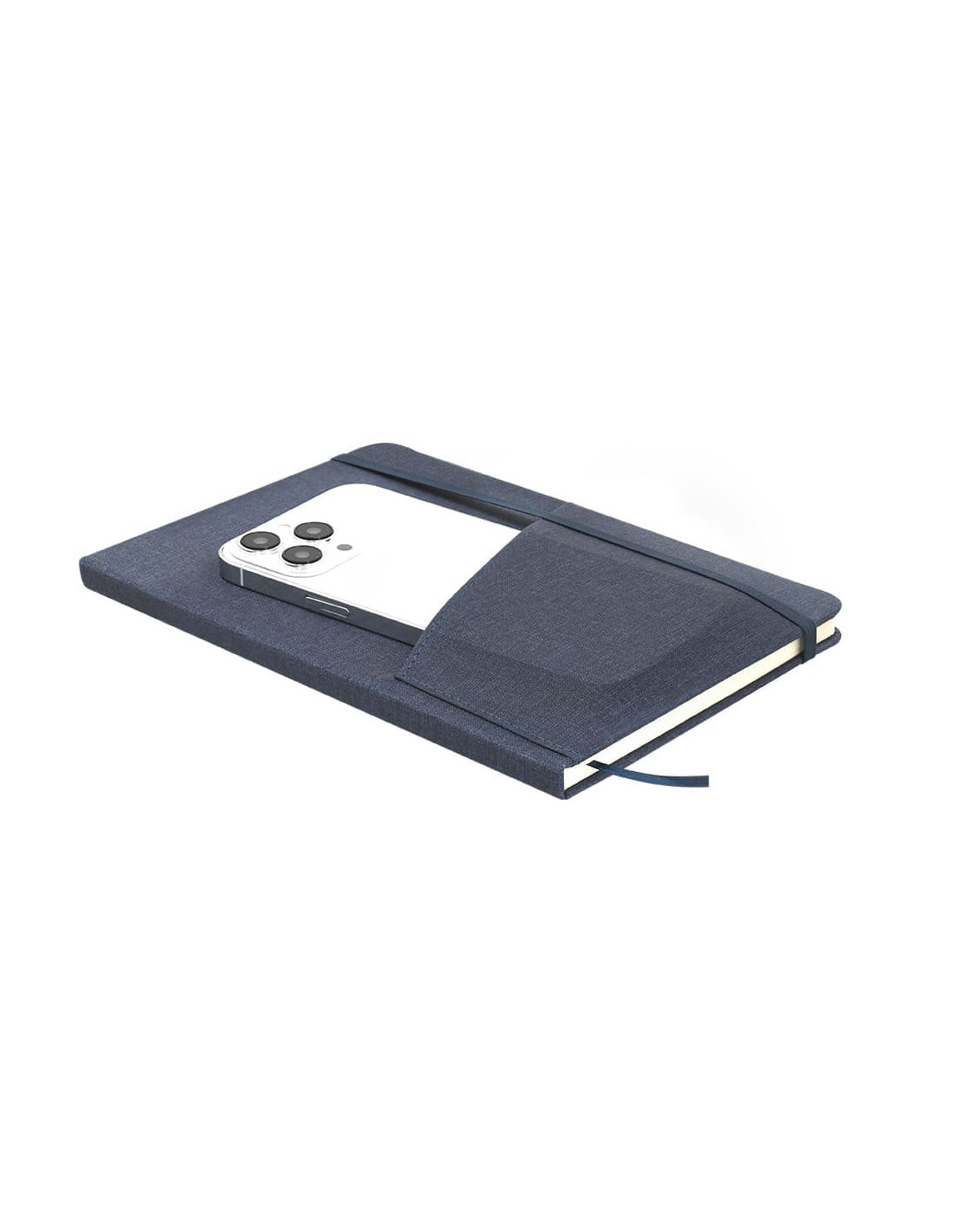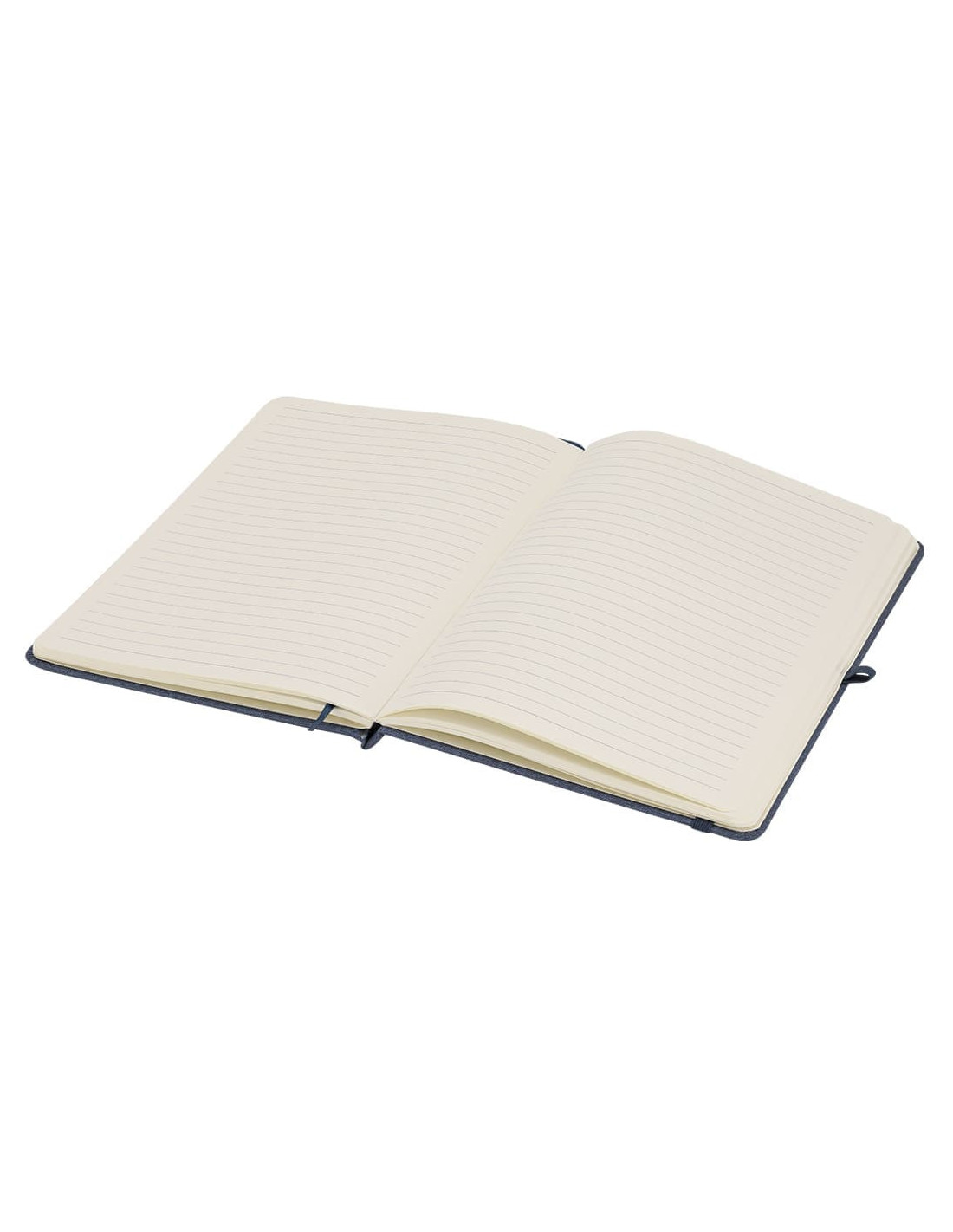Bloc de notas con cubiertas rígidas elaborado en PU reciclada con acabado lino, un material sostenible que mantiene resistencia y elasticidad mientras reduce el impacto ambiental. Dispone de bolsillo frontal, soporte para bolígrafo, marcapáginas y cinta elástica de cierre a juego. Incluye 80 hojas en color crema con disposición a rayas, ideal para tomar notas y tener todo perfectamente organizado. Su diseño funcional hace de este bloc de notas un accesorio muy práctico, tanto para uso personal como profesional, aportando además un compromiso con la sostenibilidad al estar fabricado con material reciclado.