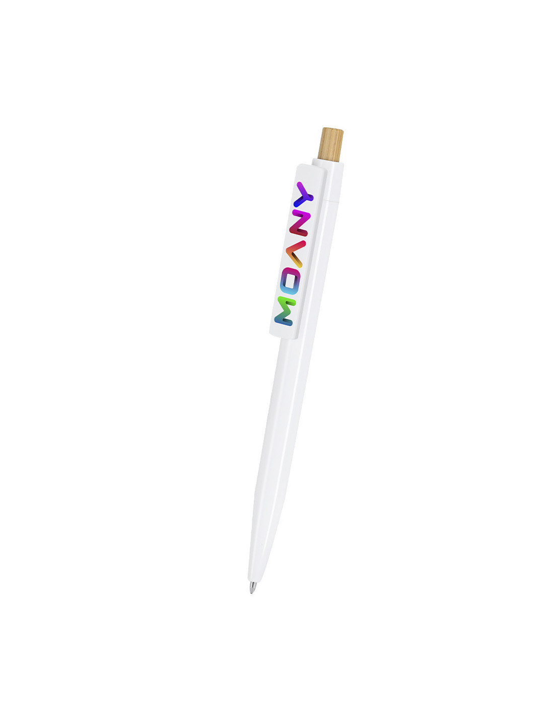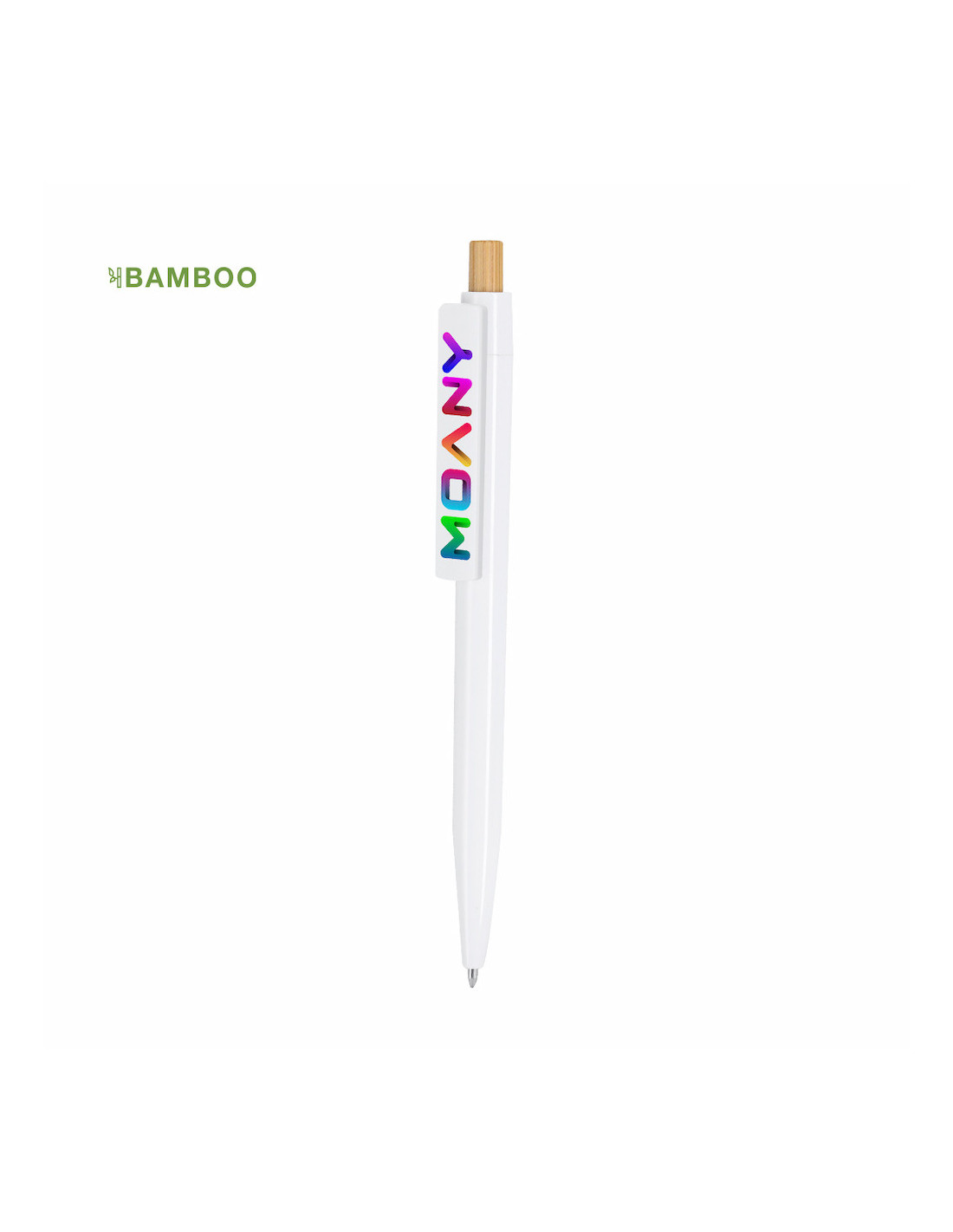 Bolígrafo fabricado en bambú y ABS con cuerpo en acabado brillante que aporta un estilo elegante y moderno. Incorpora pulsador en bambú y mecanismo de apertura por pulsación, ofreciendo un uso cómodo y práctico en el día a día. Su diseño combina materiales naturales con componentes resistentes, lo que lo convierte en una excelente opción como bolígrafo promocional sostenible para empresas y eventos. Además, está especialmente diseñado para impresión digital, permitiendo personalizarlo con logotipos o diseños con gran precisión y visibilidad. Ideal como regalo publicitario para ferias, congresos o campañas promocionales que buscan transmitir una imagen actual y responsable con el medio ambiente.