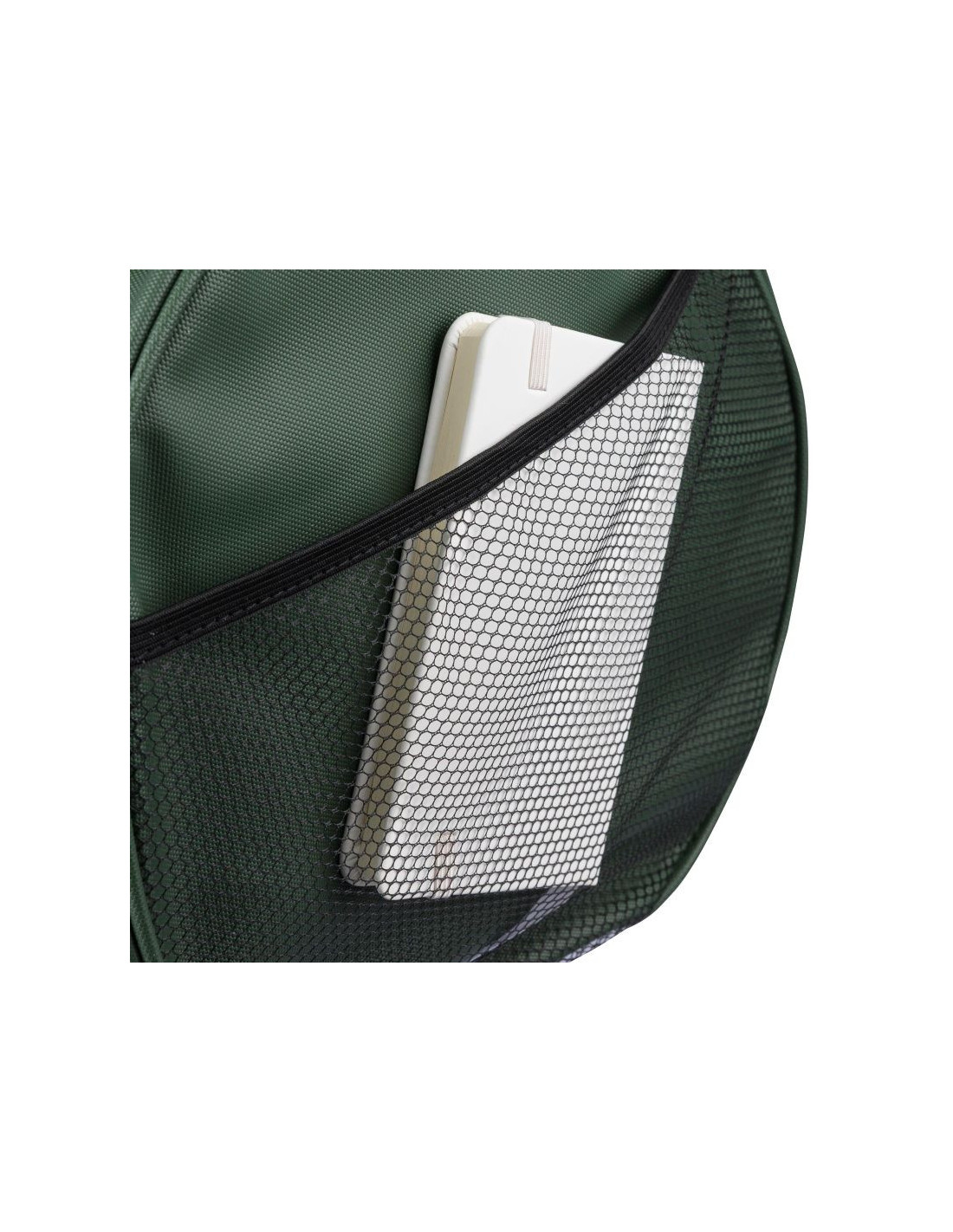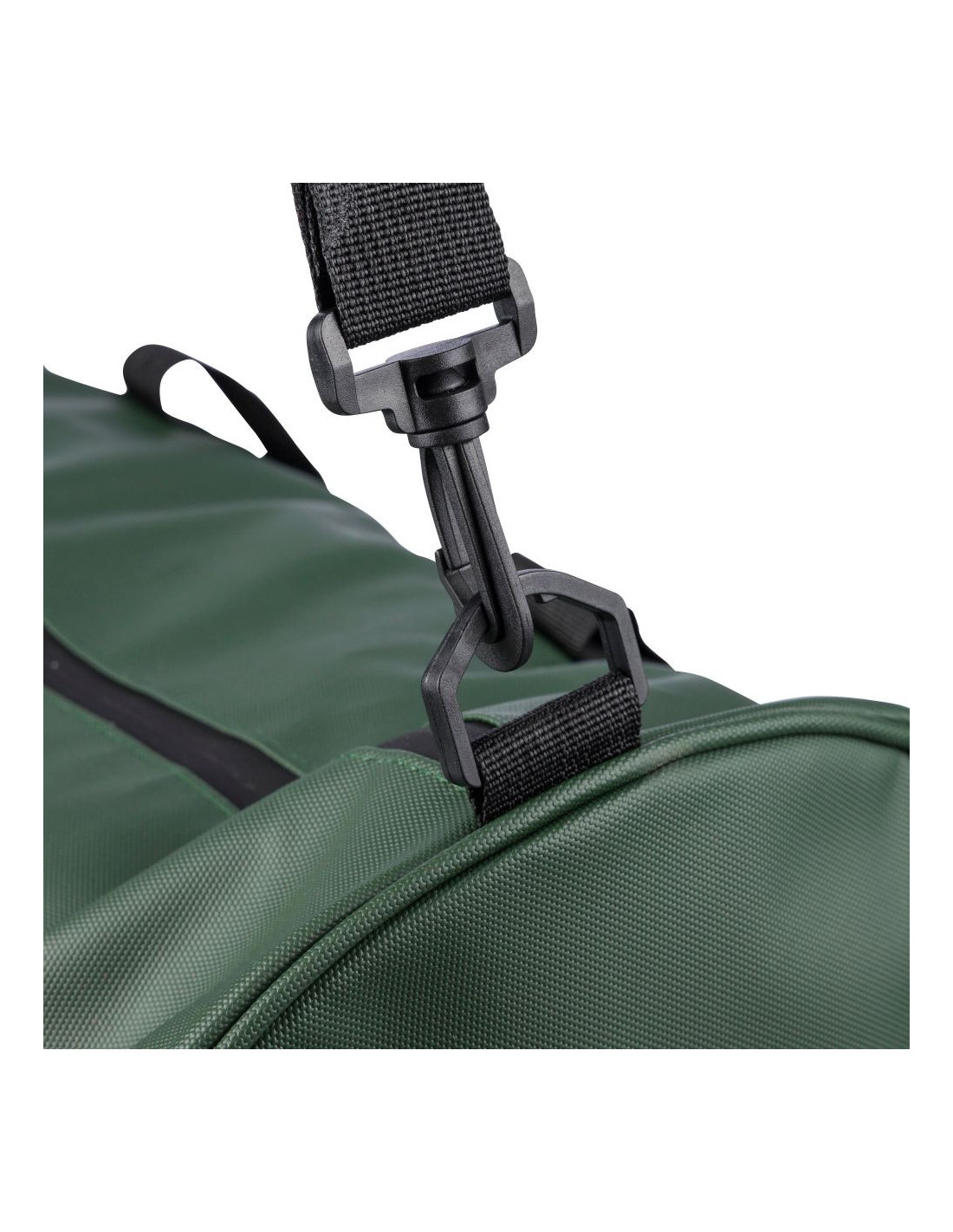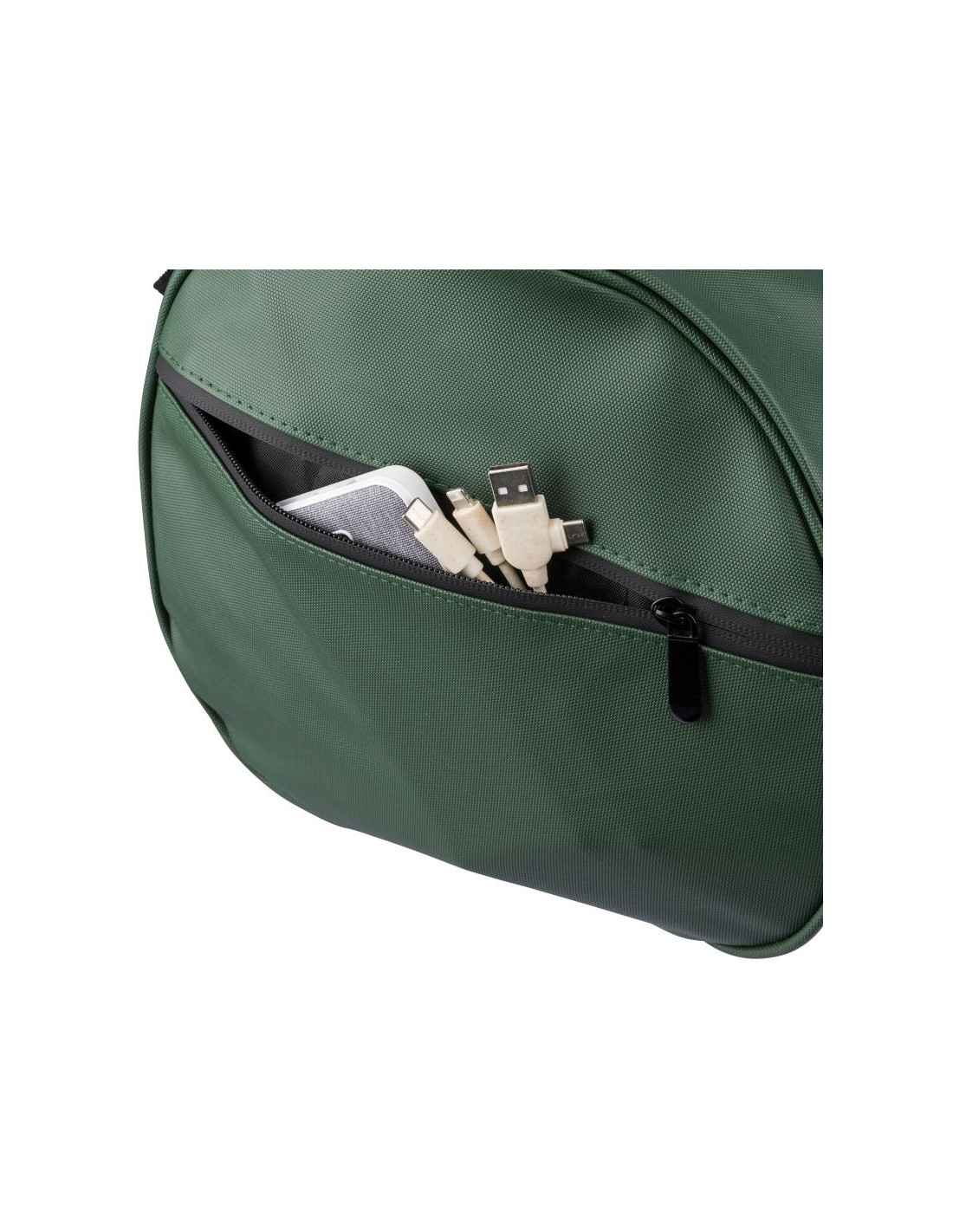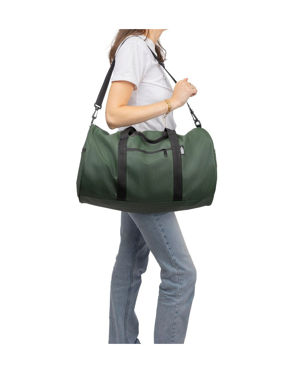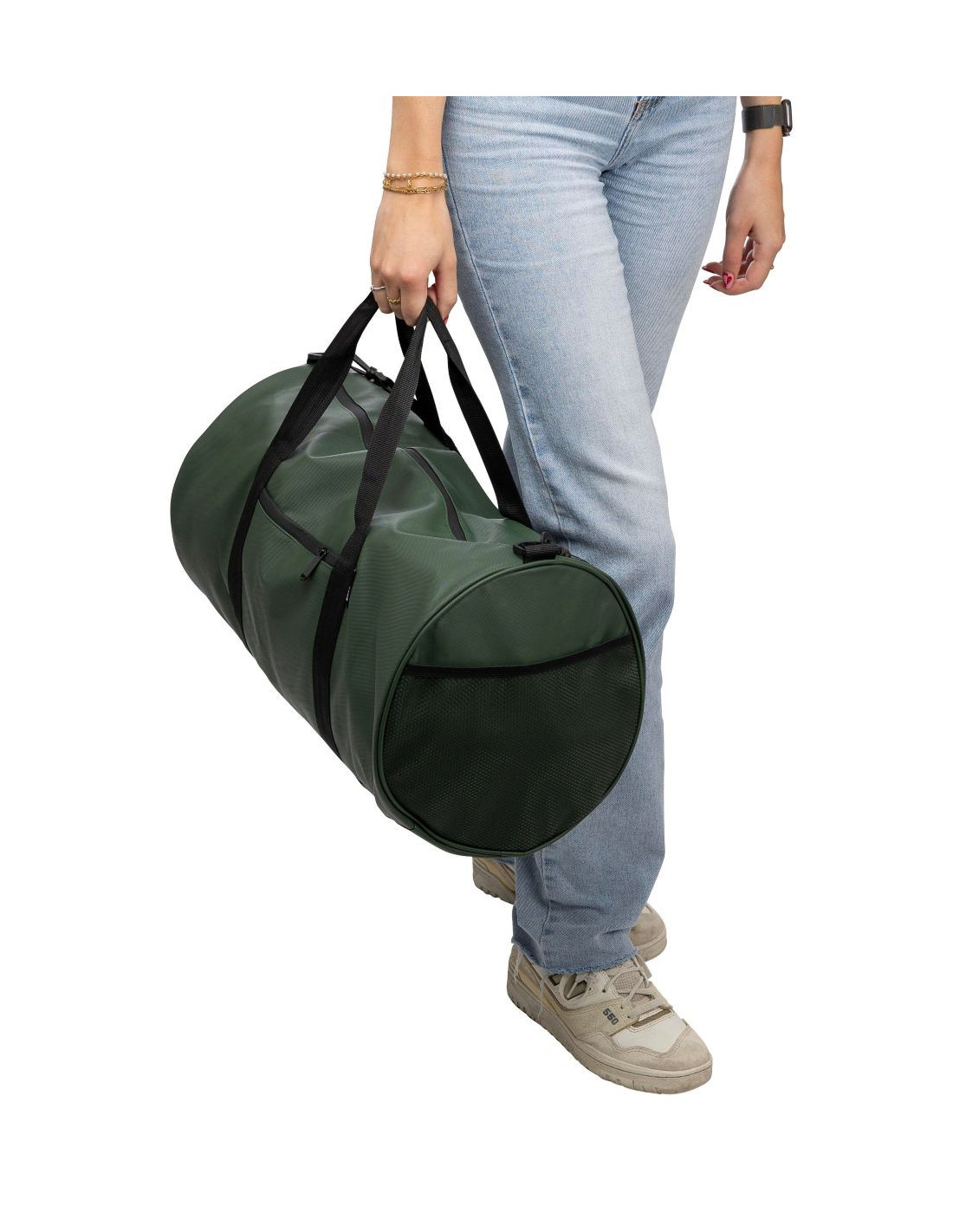 Bolsa de deporte personalizada fabricada en rPET a partir de poliéster 600D, con forro interior 210D y revestimiento de PU resistente al agua, diseñada para un uso intensivo tanto en viajes cortos como en actividades deportivas. Dispone de un amplio compartimento principal con cierre de cremallera que permite transportar ropa, calzado o accesorios con comodidad, además de un bolsillo delantero con cremallera de acabado decorativo y un práctico bolsillo lateral de malla para objetos de acceso rápido. Incorpora dos asas de mano reforzadas y una cinta de hombro ajustable para facilitar el transporte, ofreciendo una capacidad aproximada de 40 litros. Incluye etiqueta exterior rPET que refuerza su carácter sostenible, siendo una opción adecuada como bolsa deportiva personalizada o bolsa de viaje promocional para empresas comprometidas con el medio ambiente.