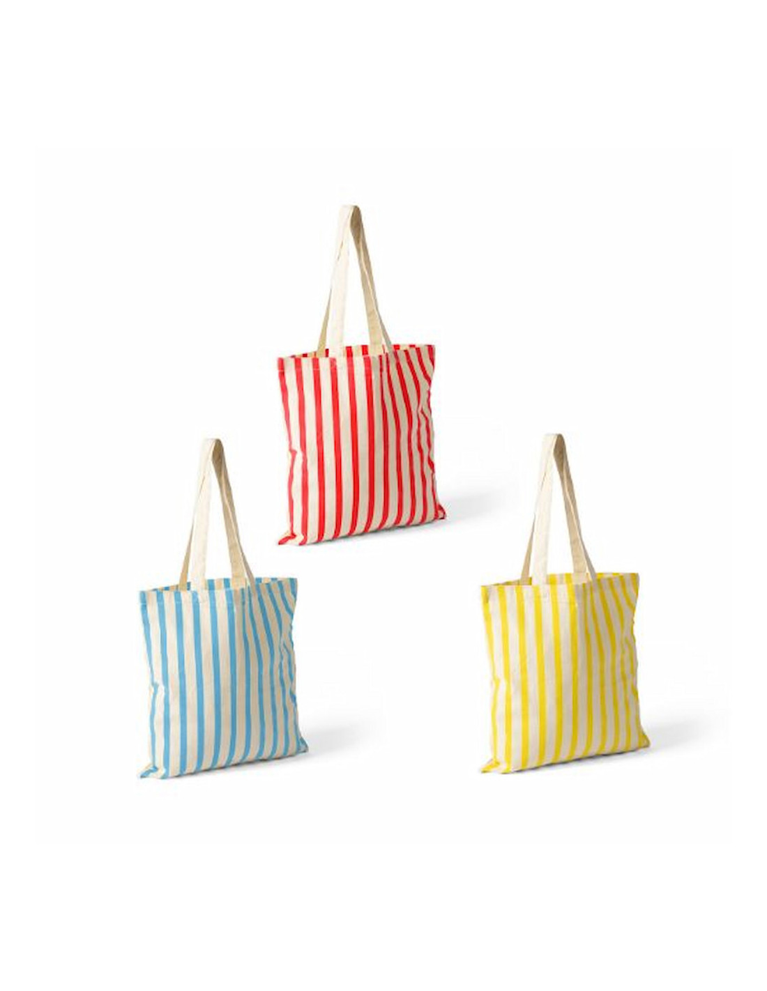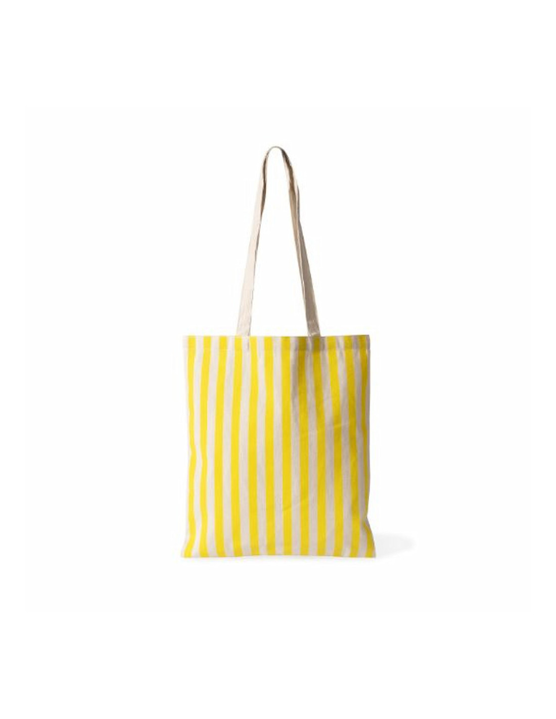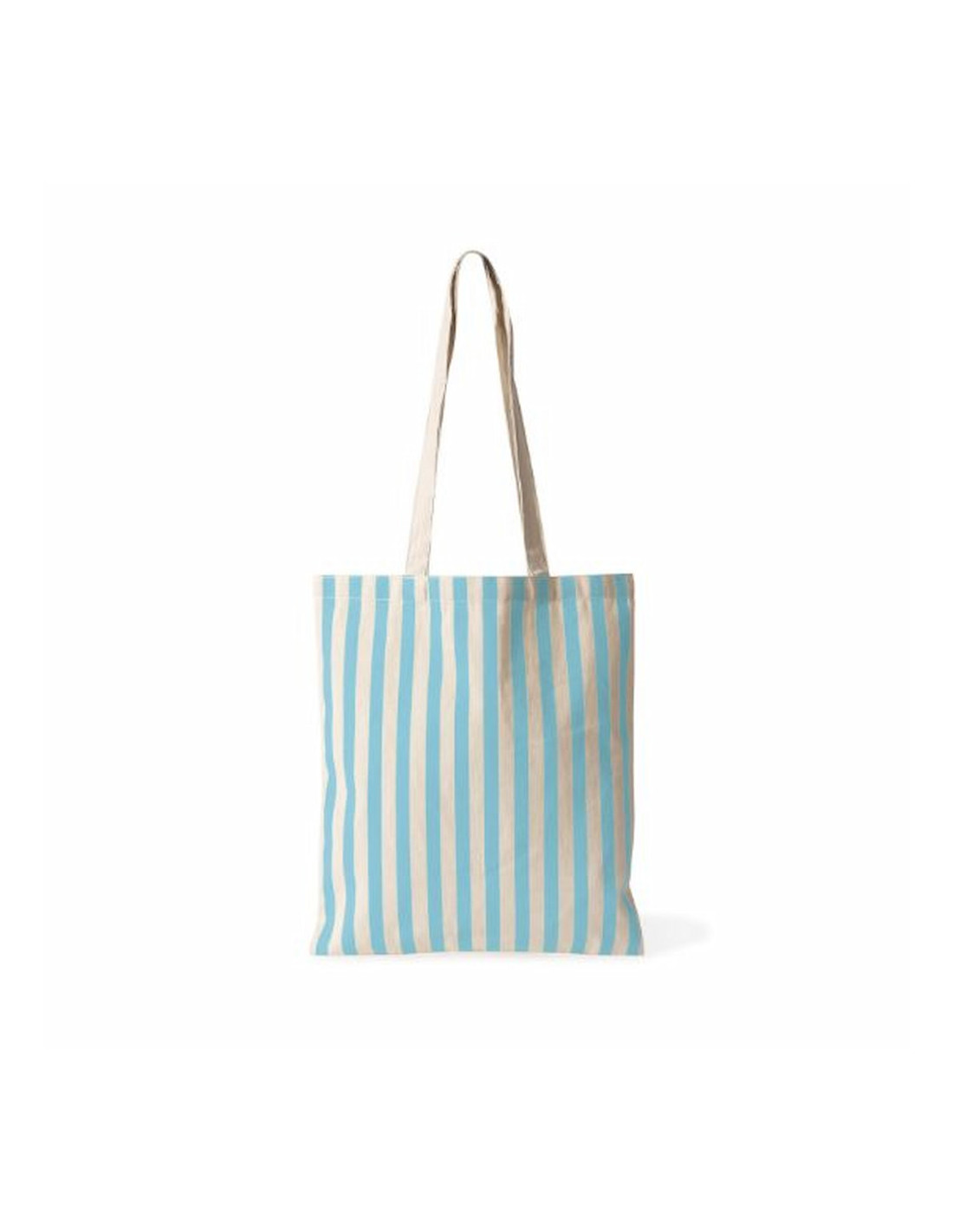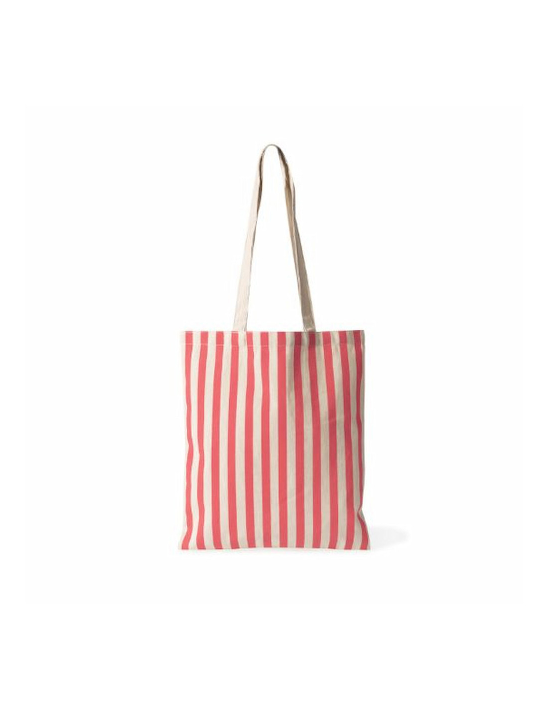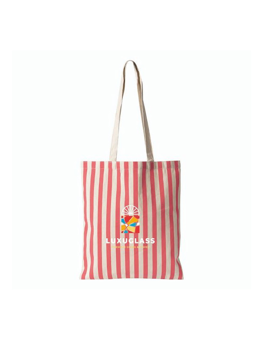 Bolsa de rayas con asas largas fabricada en algodón reciclado de 180 g/m², una opción sostenible, ligera y funcional para el uso diario. Su diseño práctico permite transportar cómodamente compras, documentos o enseres personales, siendo ideal para eventos, promociones o uso cotidiano. Las asas largas facilitan llevarla al hombro con comodidad. Con unas dimensiones aproximadas de 38 x 40 cm, es una bolsa versátil, resistente y respetuosa con el medio ambiente.