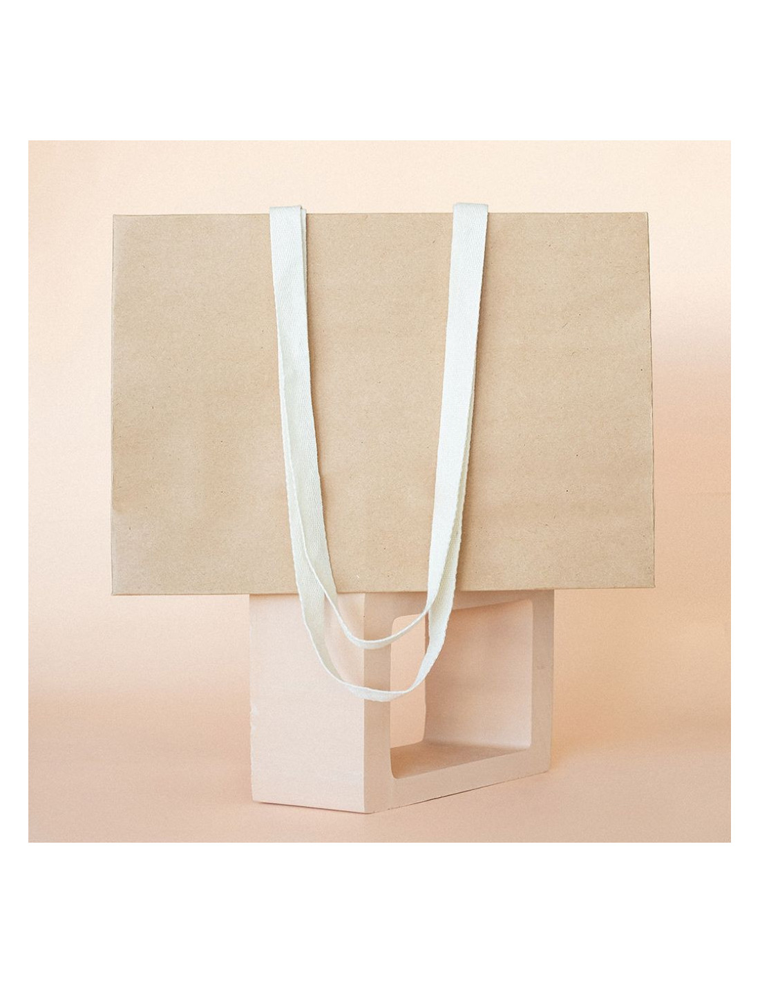 Bolsa de regalo premium grande elaborada en papel kraft de 150 g/m² con certificado FSC, ideal para quienes buscan una presentación elegante y sostenible. Sus asas largas de algodón (70 cm) proporcionan una sujeción cómoda y refuerzan su imagen natural y ecológica. Con un formato amplio (35 × 12 × 25 cm), esta bolsa es perfecta para regalos corporativos, tiendas o eventos que desean transmitir un cuidado especial en cada detalle.
