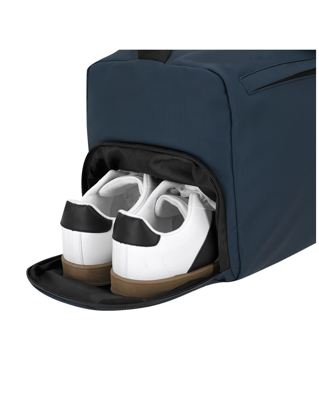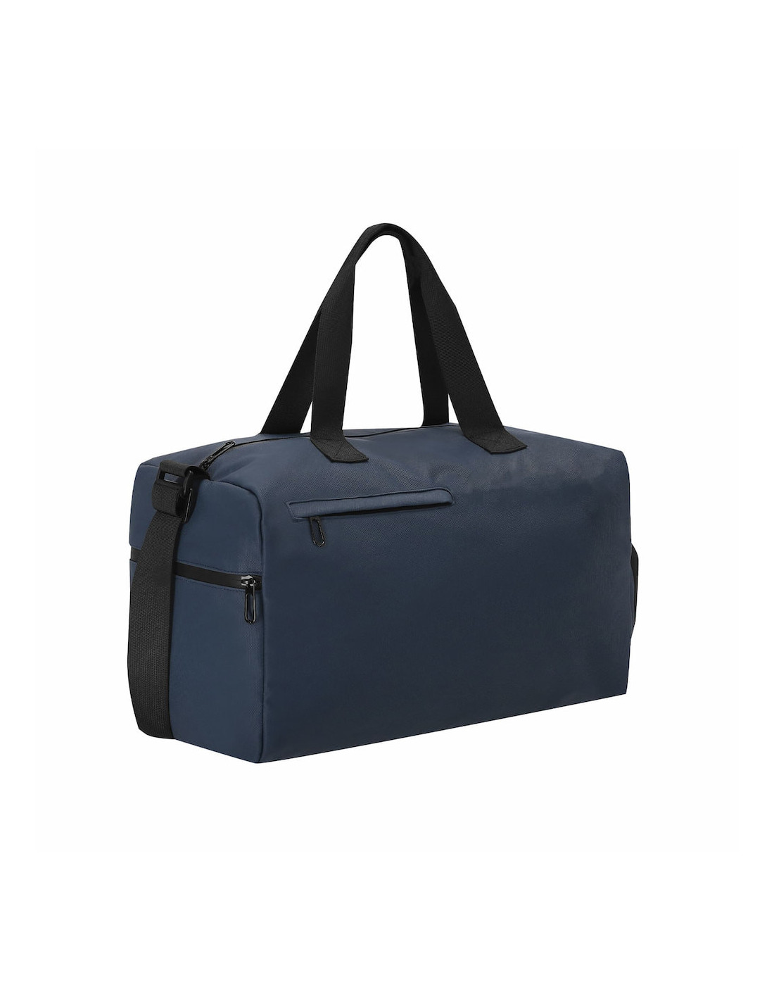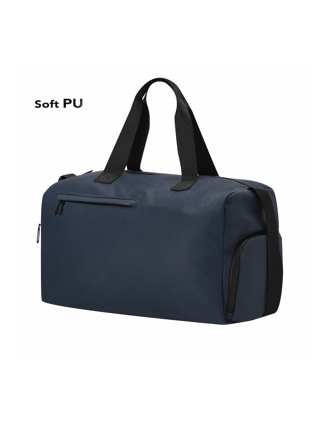 Bolsa de viaje de PU resistente con diseño funcional y versátil. Dispone de tres compartimentos: principal de gran capacidad con cremallera impermeable, lateral con cierre de cremallera y un compartimento inferior para calzado. Incluye asas de mano, asa larga ajustable y bolsillos interiores y laterales para objetos pequeños. Ideal para viajes, deporte o uso diario. Una opción compacta y muy versátil para todo tipo de usos y para viajes cortos. Medidas: 40 x 24 x 22 cm
