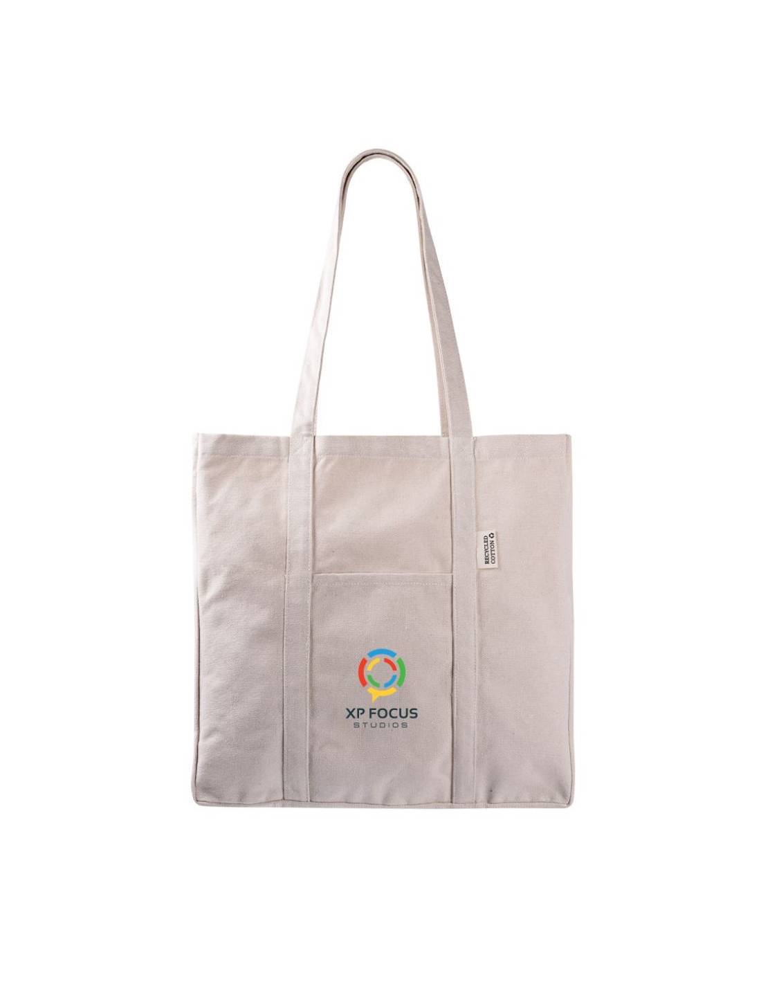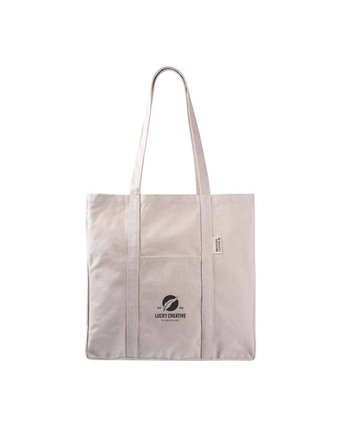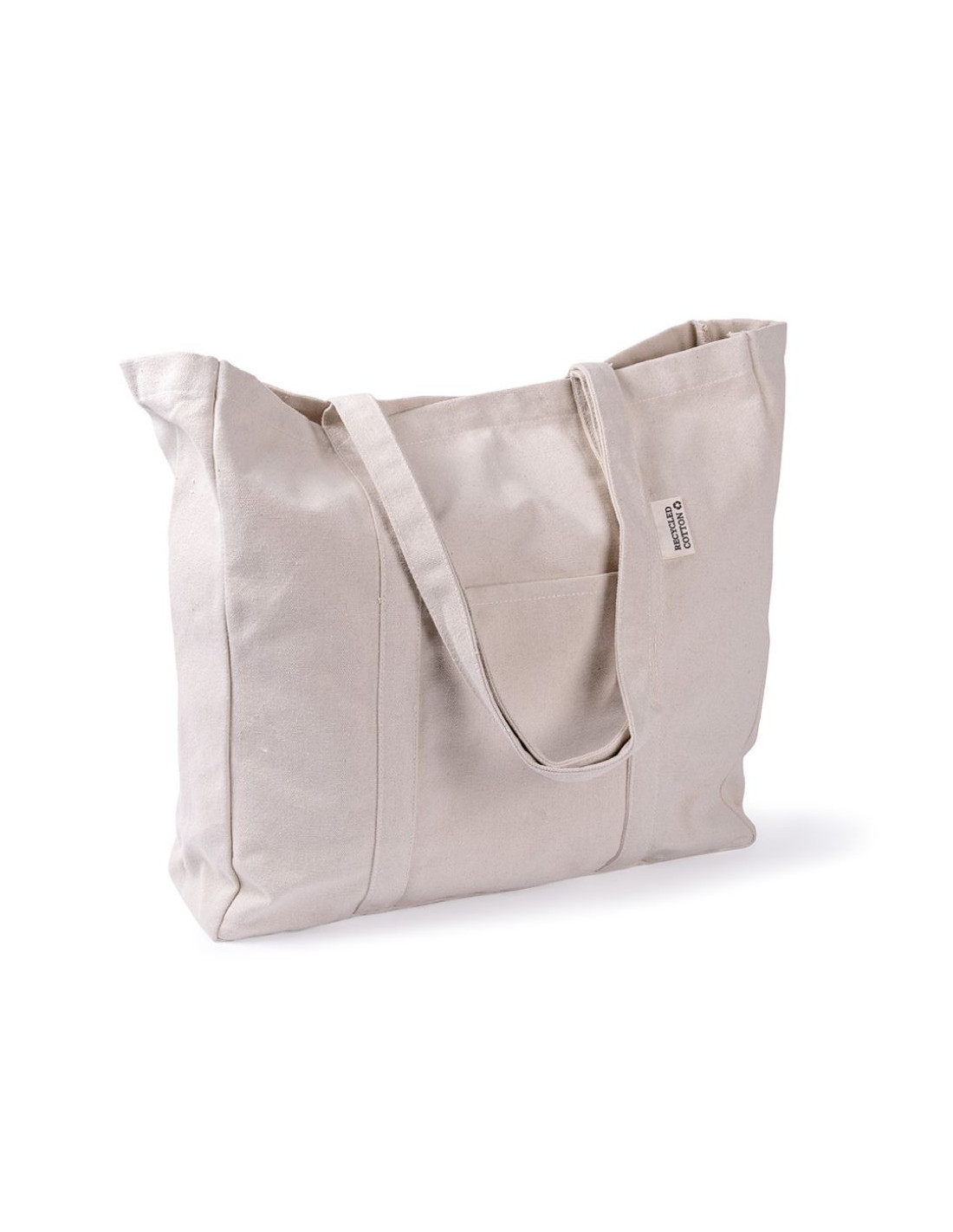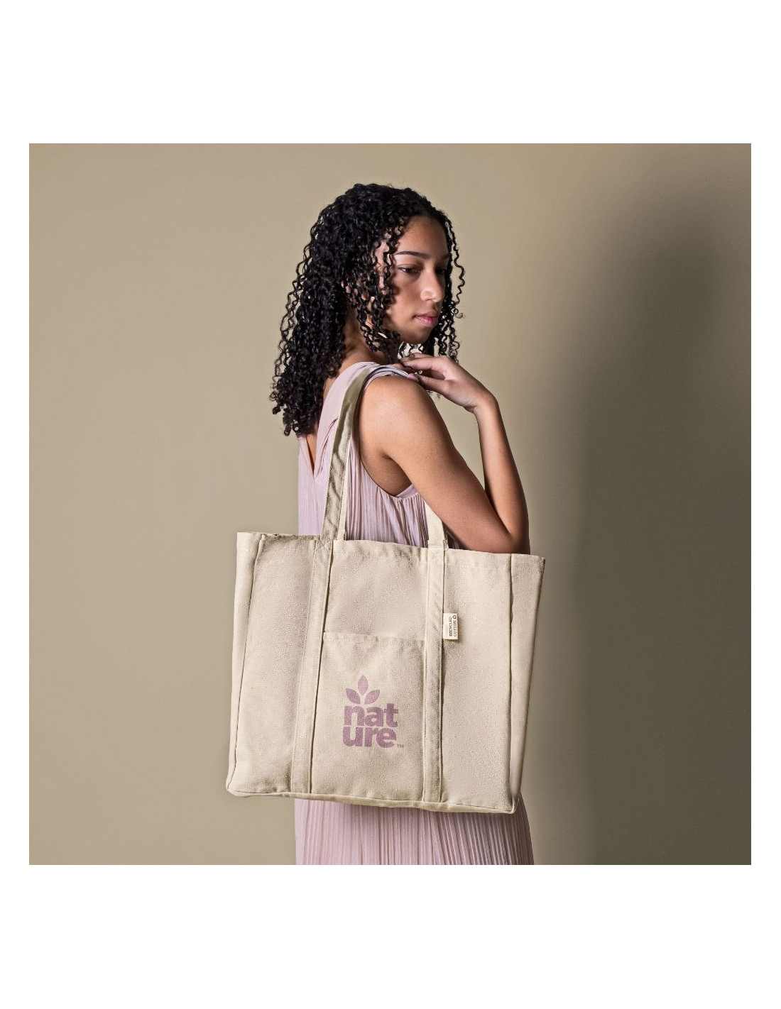Esta bolsa tote está fabricada en canvas reciclado de 360 gr/m², un material resistente y ecológico que contribuye a la sostenibilidad. Con unas medidas de 39 x 12 x 38,5 cm, ofrece un diseño espacioso y práctico, perfecto para el uso diario o para llevar tus compras. Su construcción robusta, gracias también al refuerzo de sus asas largas cosidas en toda la bolsa, asegura que tus pertenencias estén bien protegidas. El uso de material reciclado le da un toque de responsabilidad ambiental. Ideal para quienes buscan una bolsa que combine estilo y conciencia ecológica.