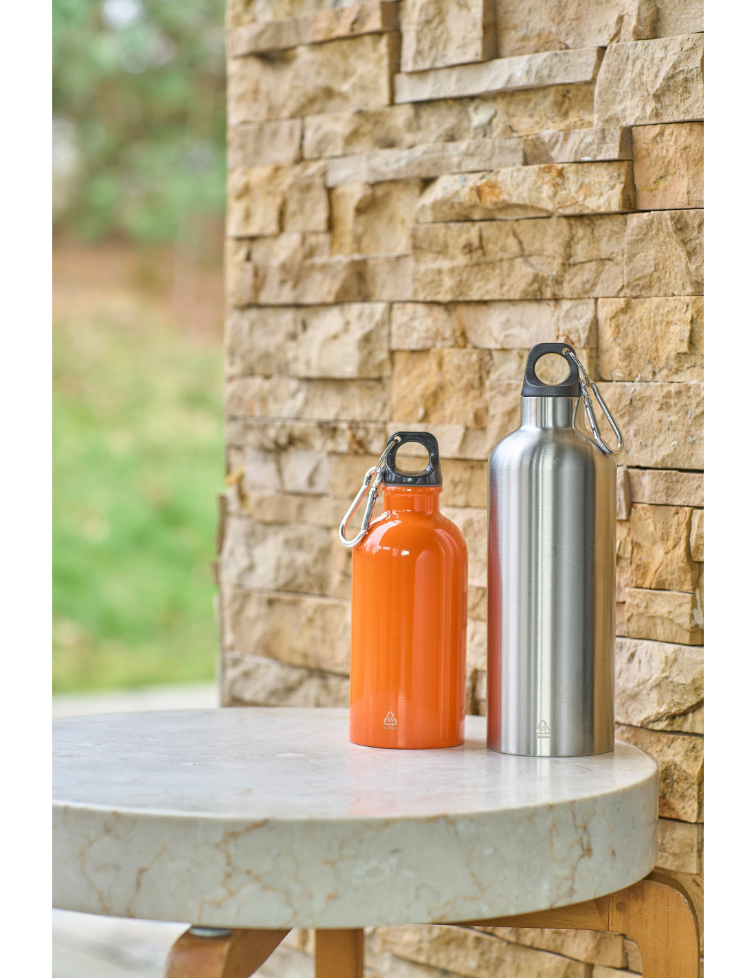 Esta botella de acero inoxidable reciclado personalizada de 400 ml es una solución sostenible y práctica dentro de las botellas personalizadas de acero inoxidable para empresas y acciones promocionales. Fabricada en acero inoxidable reciclado s/s304, combina resistencia, ligereza y un diseño compacto ideal para el día a día. Incluye un tapón de PP y un mosquetón de aluminio plateado que permite transportarla fácilmente en mochilas o bolsos. Además, incorpora un logotipo grabado a láser que identifica el uso de material reciclado, reforzando el compromiso medioambiental de tu marca. Con una capacidad de 400 ml, un peso muy ligero de solo 96 g y diseño de pared simple, esta botella publicitaria es antifugas y perfecta para eventos, ferias, campañas promocionales o merchandising ecológico. Se recomienda evitar bebidas ácidas o con gas para conservar sus propiedades.