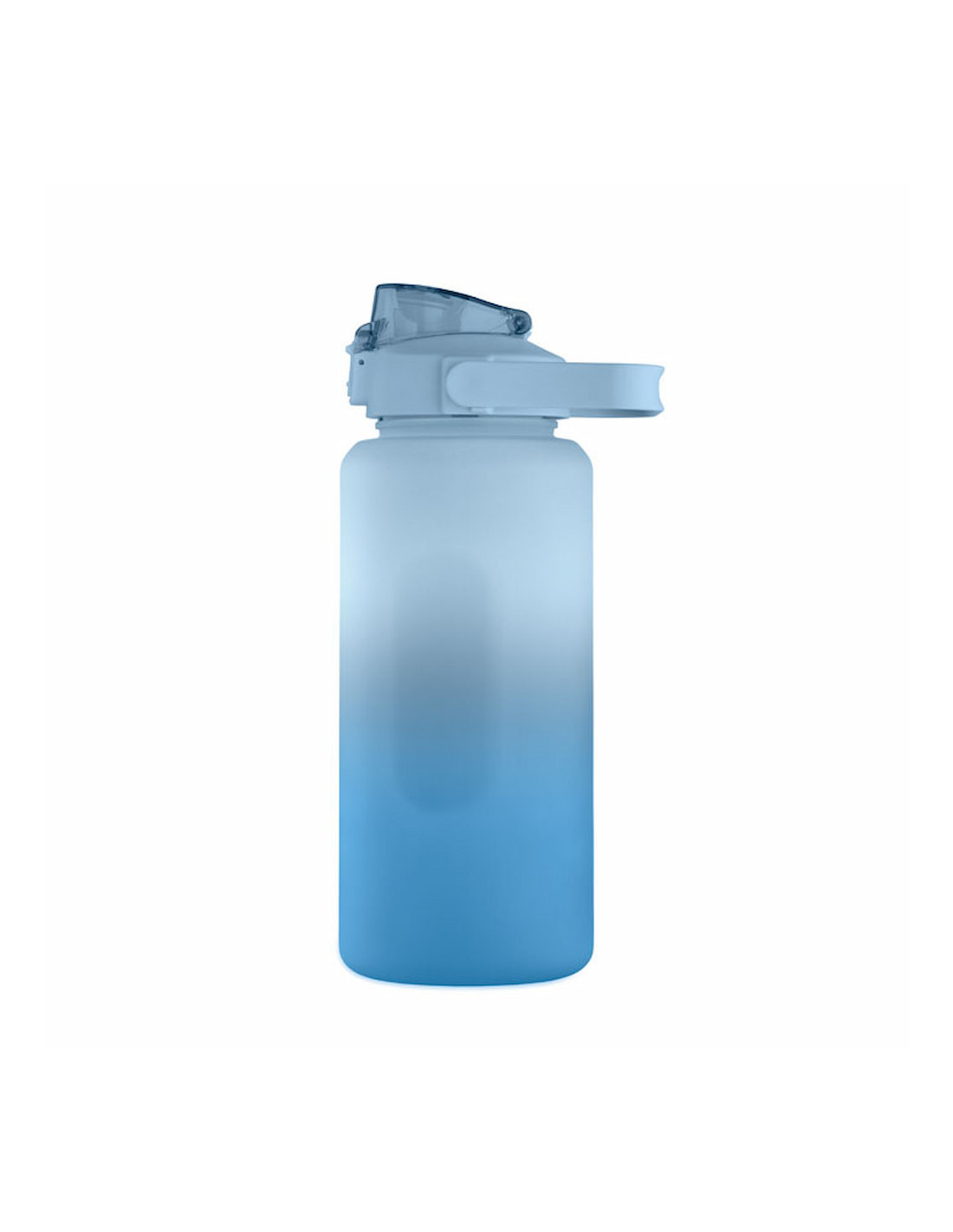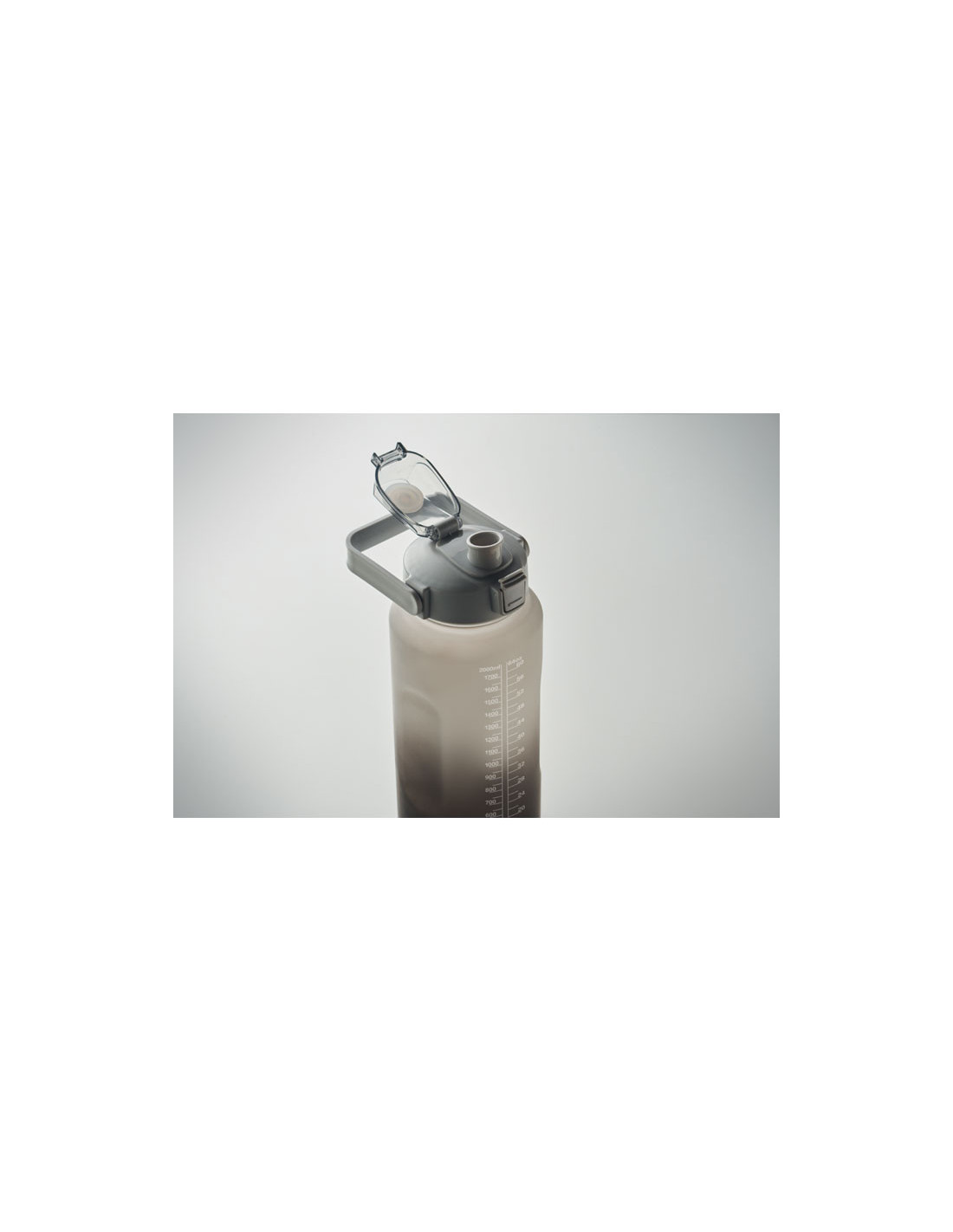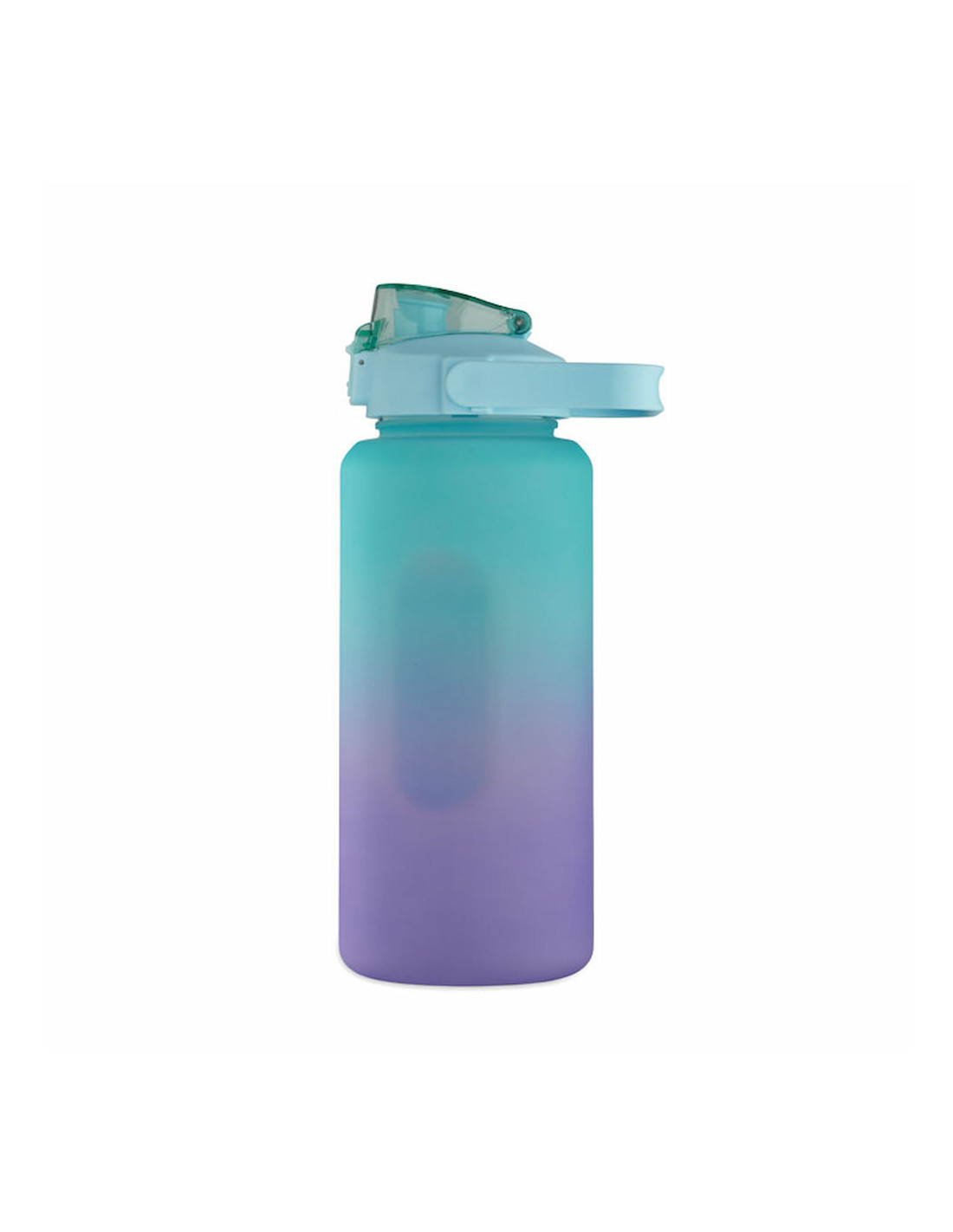 Botella de agua motivacional de RPET con tapa abatible 2L