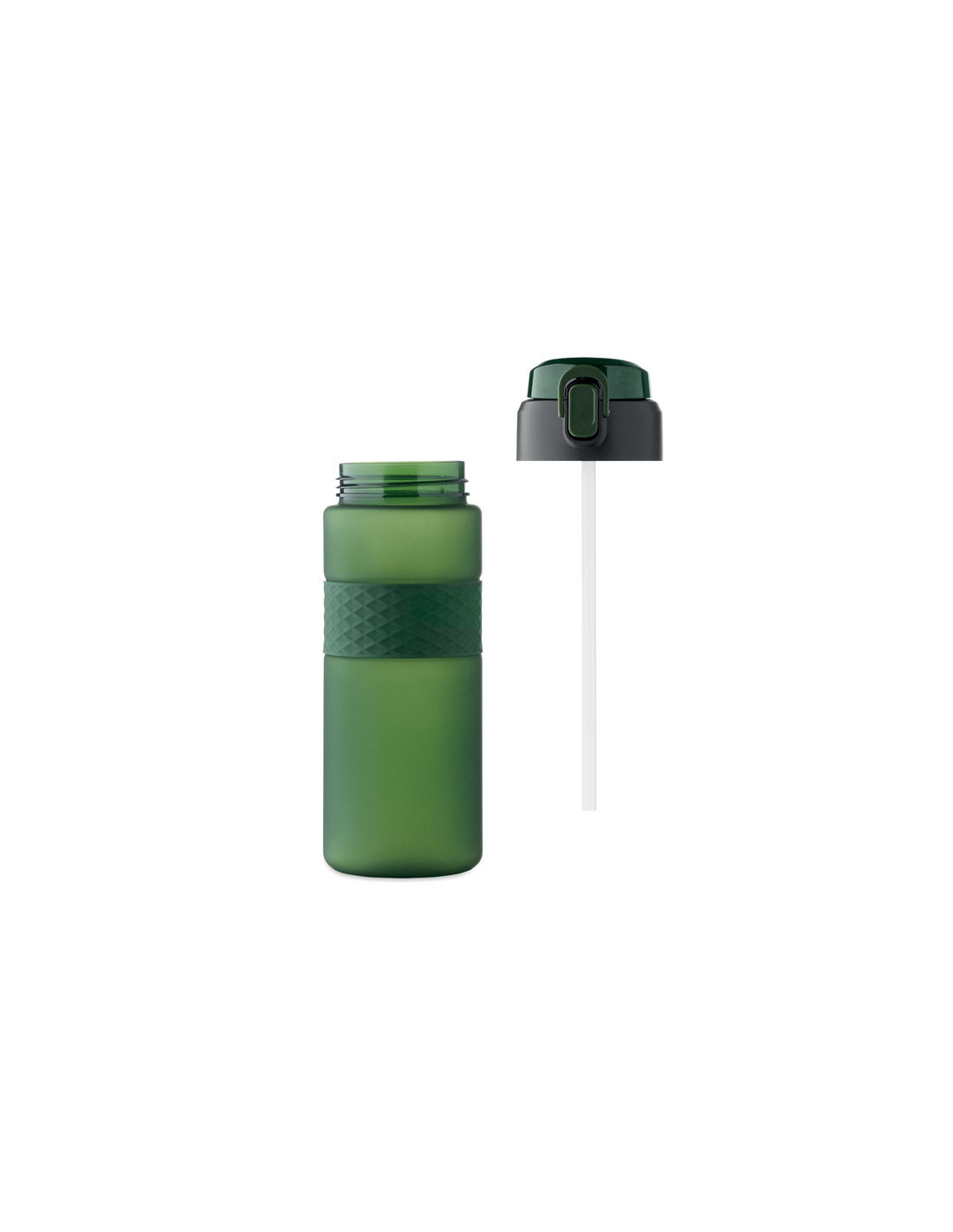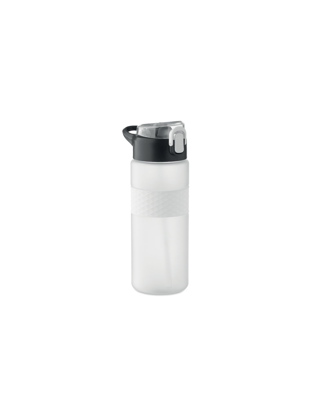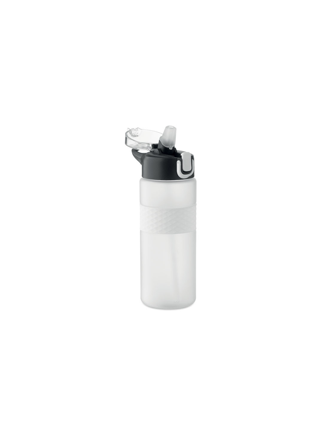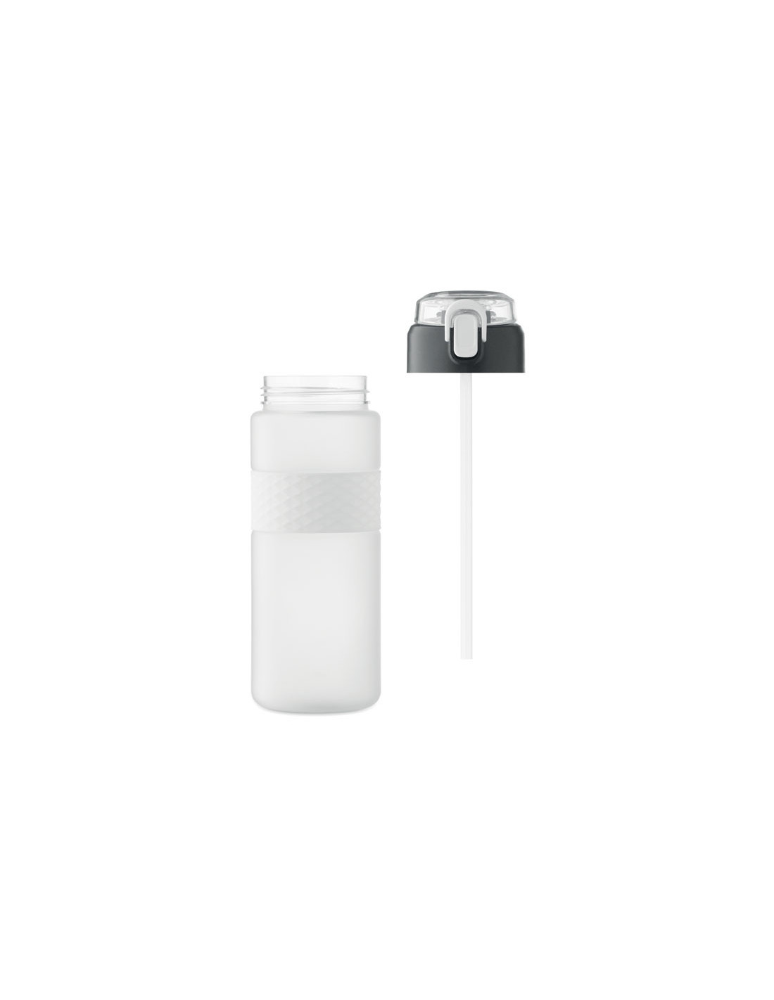 Botella reutilizable de RPET con un diseño práctico. Incorpora una tapa abatible de PP con cierre de seguridad y un sistema antifugas, lo que la hace ideal para llevar en la mochila o bolso sin preocupaciones. Cuenta con una pajita integrada para beber cómodamente y una banda central de silicona texturizada que mejora el agarre. Con una capacidad de 700 ml, es la opción perfecta para mantenerte hidratado en tu día a día de forma sostenible.