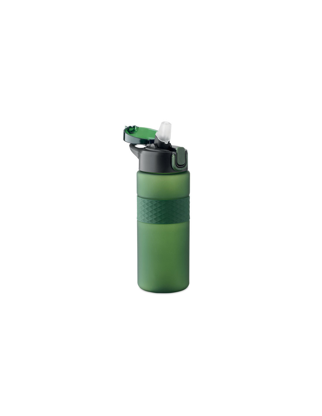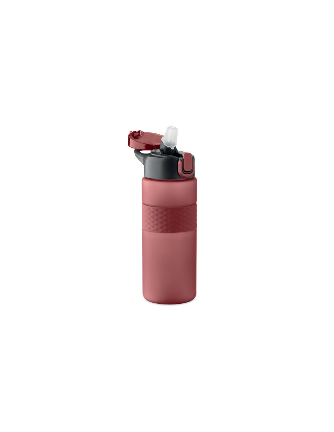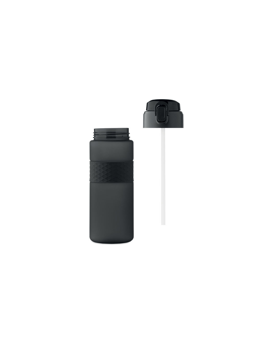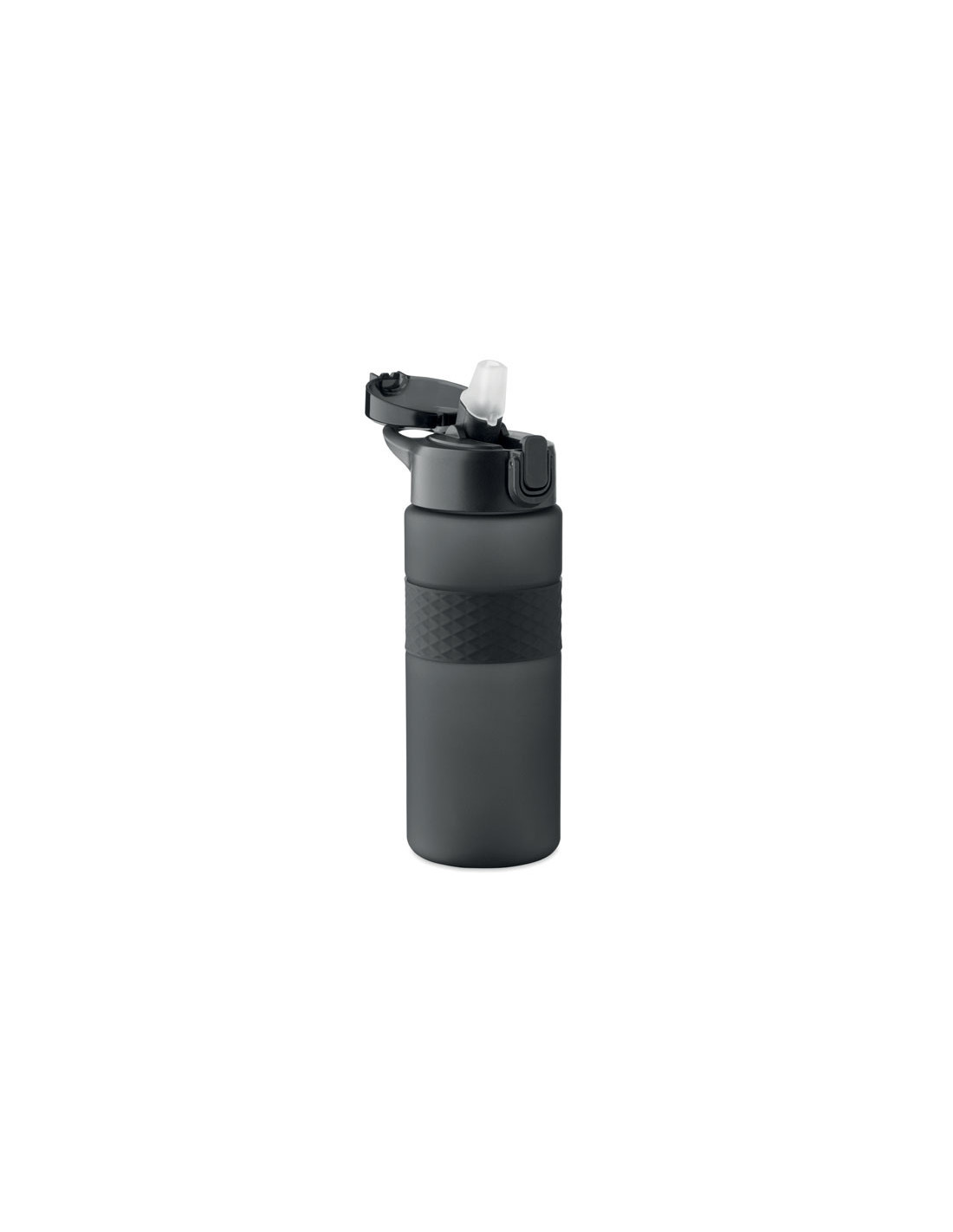Botella reutilizable de RPET con un diseño práctico. Incorpora una tapa abatible de PP con cierre de seguridad y un sistema antifugas, lo que la hace ideal para llevar en la mochila o bolso sin preocupaciones. Cuenta con una pajita integrada para beber cómodamente y una banda central de silicona texturizada que mejora el agarre. Con una capacidad de 700 ml, es la opción perfecta para mantenerte hidratado en tu día a día de forma sostenible.