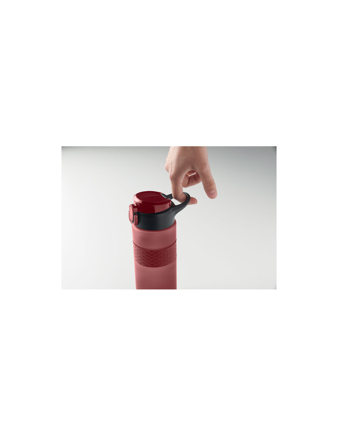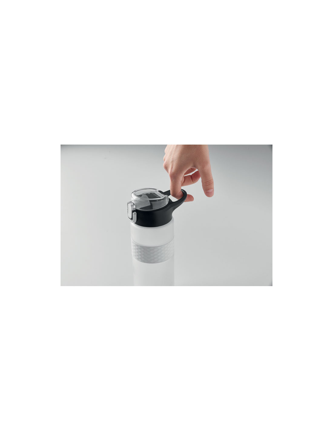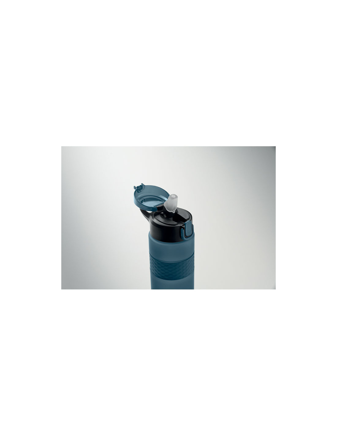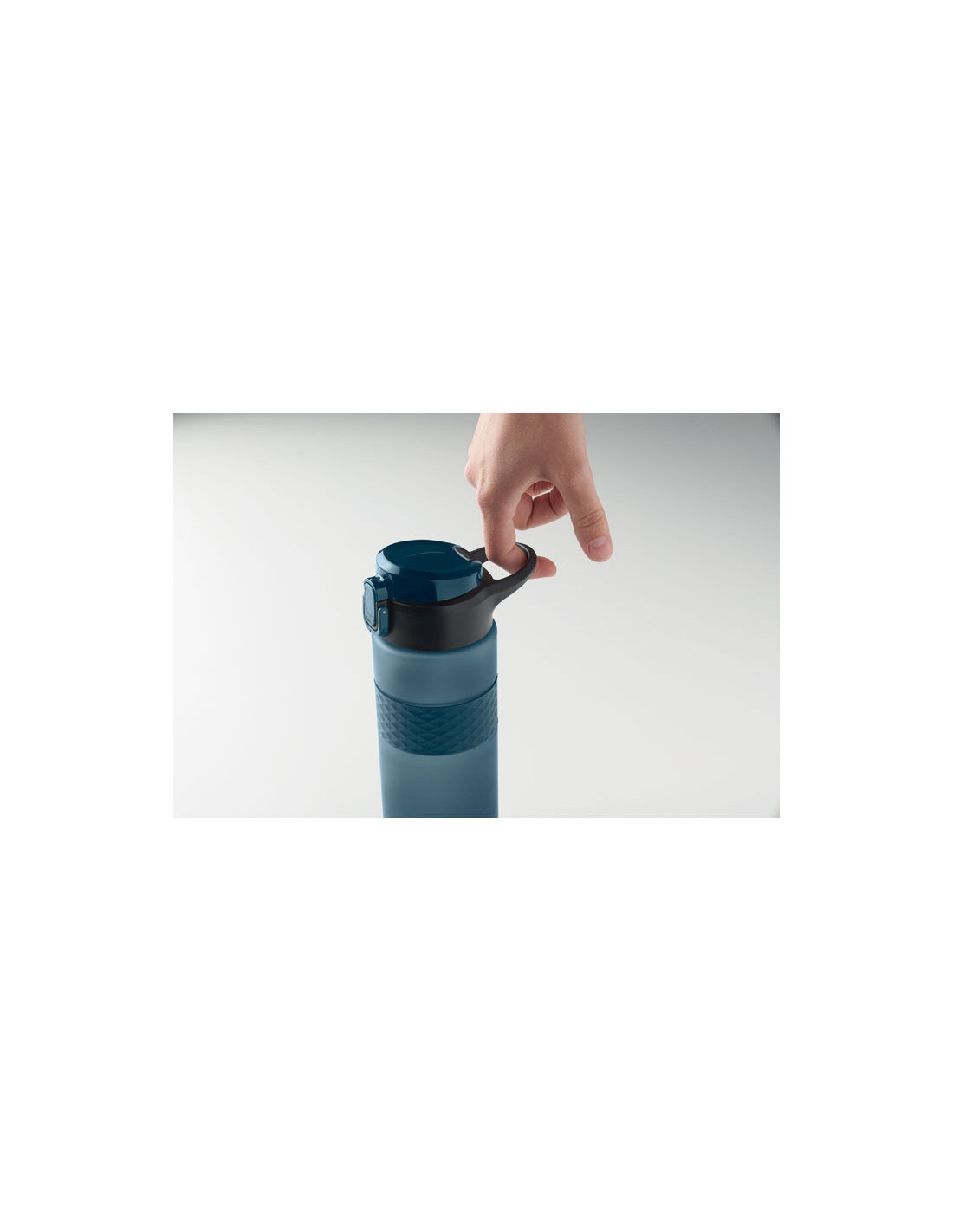 Botella reutilizable de RPET con un diseño práctico. Incorpora una tapa abatible de PP con cierre de seguridad y un sistema antifugas, lo que la hace ideal para llevar en la mochila o bolso sin preocupaciones. Cuenta con una pajita integrada para beber cómodamente y una banda central de silicona texturizada que mejora el agarre. Con una capacidad de 700 ml, es la opción perfecta para mantenerte hidratado en tu día a día de forma sostenible.