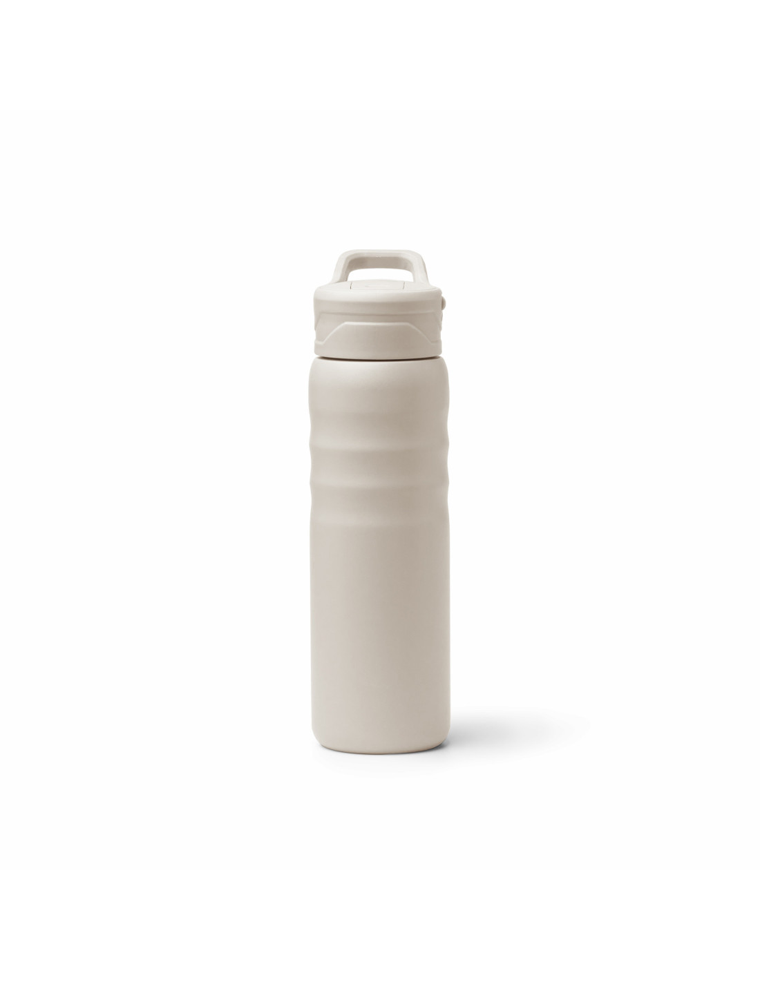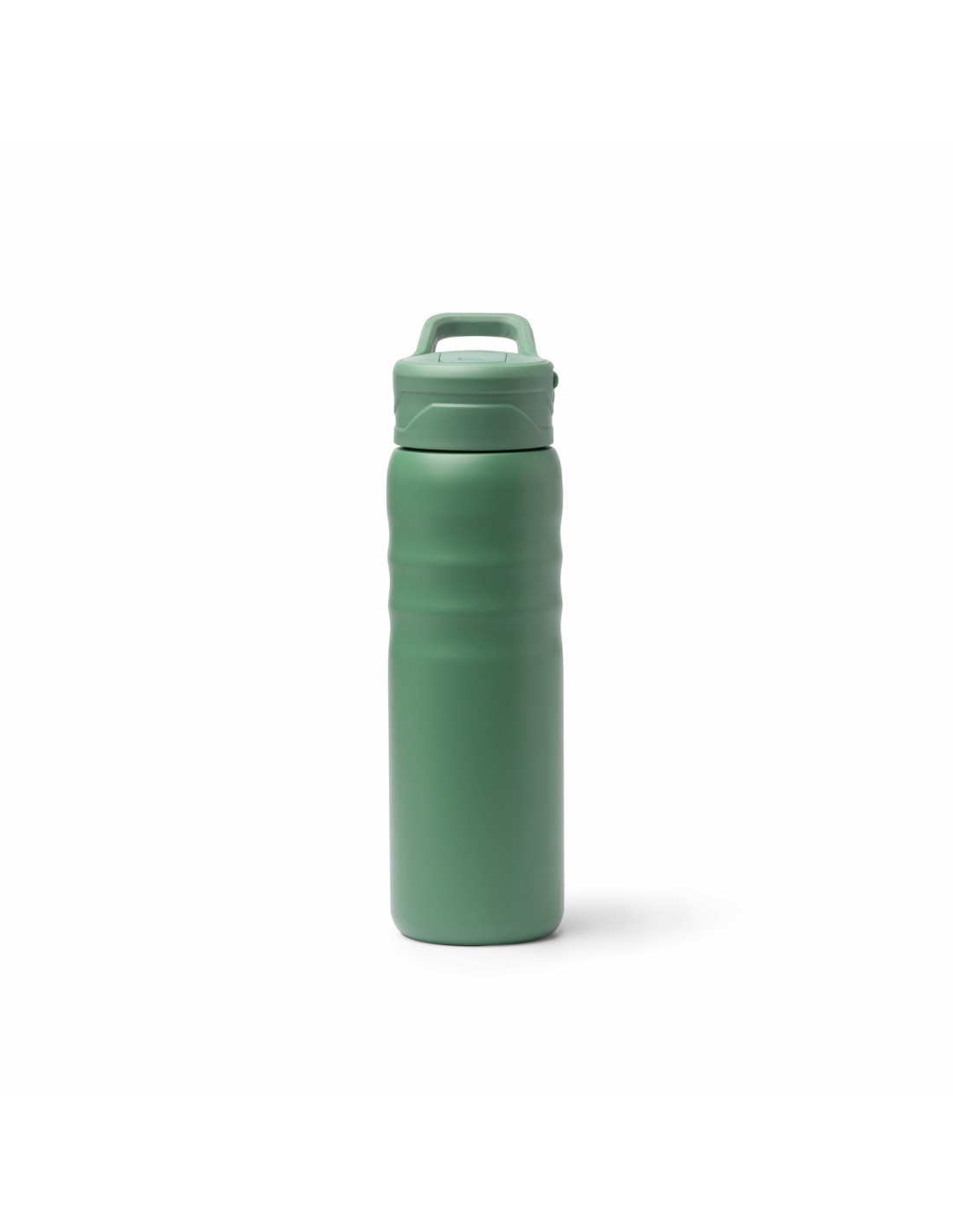 Bidón térmico de 710 ml fabricado en acero inoxidable reciclado 304 de doble capa, diseñado para mantener tus bebidas a la temperatura ideal durante más tiempo. Incorpora tapa con pajita abatible con recubrimiento de silicona y cierre individual, además de sistema automático de apertura mediante botón para un uso cómodo y rápido. Incluye bloqueo de seguridad para evitar aperturas accidentales y sistema antigoteo gracias al recubrimiento de silicona y al anillo interior situado en el cuello del bidón. La tapa integra también un asa de transporte que facilita llevarlo a cualquier lugar, siendo perfecto para el día a día, el deporte o la oficina. Dimensiones aproximadas: 25 cm de alto y 7,5 cm de diámetro.