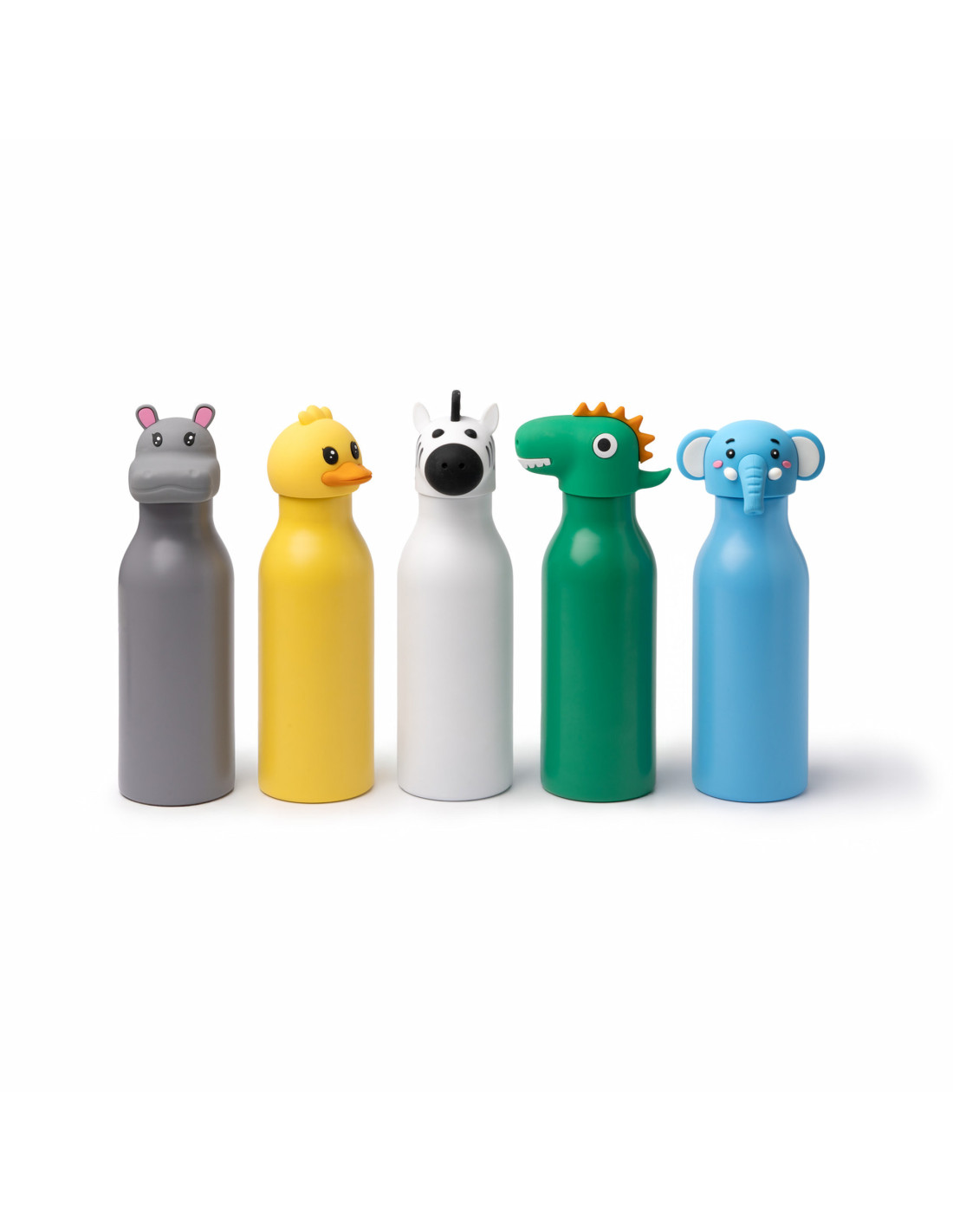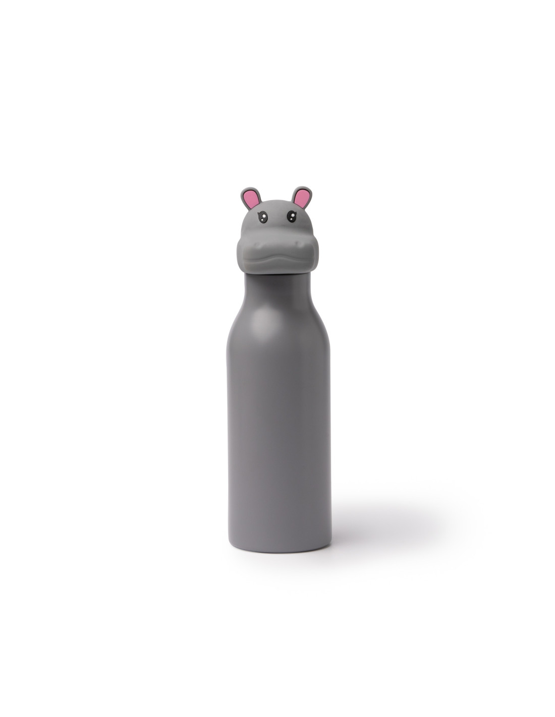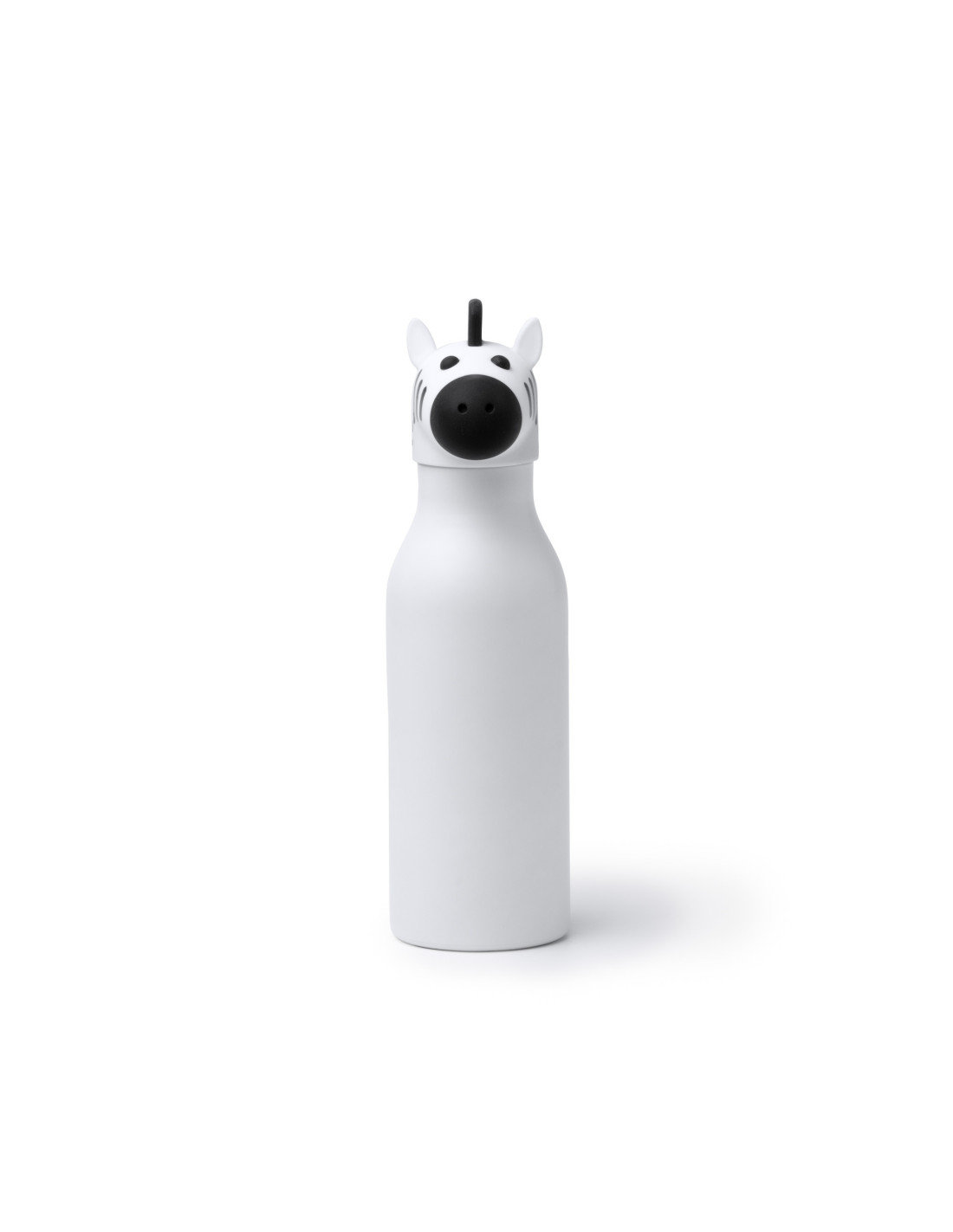 Botella térmica infantil de 450 ml con diseño divertido y funcional, ideal para el uso diario de los más pequeños en el colegio, excursiones o actividades al aire libre. Su estructura de doble pared ayuda a mantener la temperatura de las bebidas durante más tiempo, mientras que el sistema antigoteo con anillo de silicona evita derrames y aporta mayor seguridad en el transporte. Incorpora un tapón con funda en forma de animal que facilita su uso y la convierte en un producto atractivo para niños, disponible en varios colores y diseños como cebra(blanco), pato (amarillo), elefante (azul), dinosaurio (verde) o hipopótamo (gris). Una opción práctica para promociones, regalos escolares o campañas dirigidas a los más pequeños.