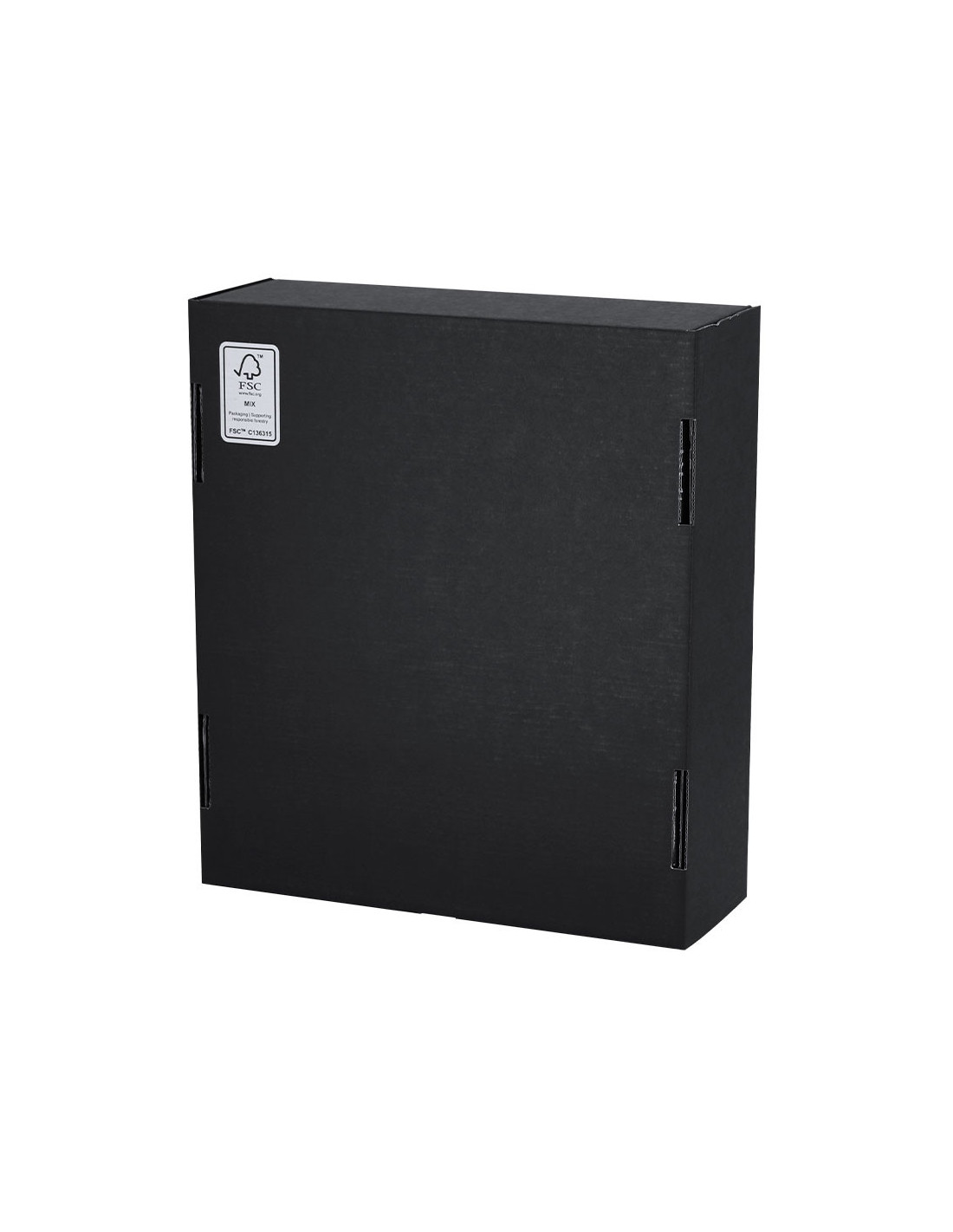 Caja de presentación tamaño XL fabricada en cartón corrugado negro con certificación FSC. Con unas medidas de 26,5 x 9 x 30 cm, es una opción práctica y resistente para presentar regalos de empresa, kits promocionales o detalles personalizados. Su formato amplio permite incluir varios productos y ofrecer una presentación cuidada, perfecta para campañas corporativas o entregas especiales. El material cuenta con certificación FSC, lo que garantiza que el cartón proviene de fuentes responsables, contribuyendo a la sostenibilidad y al respeto por el medio ambiente. Esta caja se adapta a diferentes tipos de artículos y puede reutilizarse, ofreciendo una solución funcional.