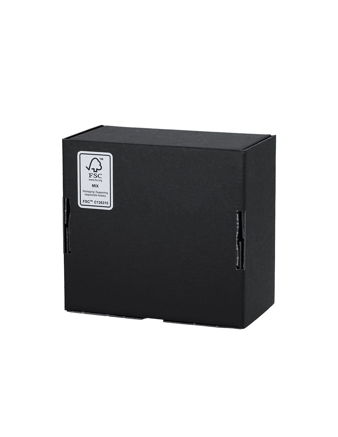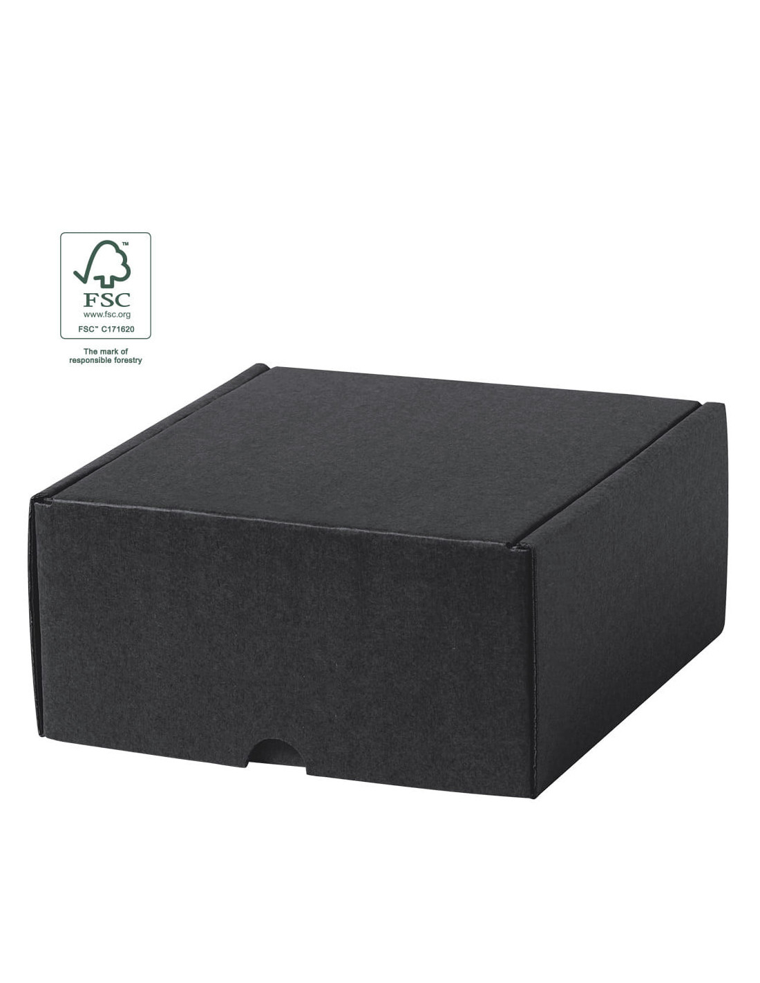 Caja de presentación tamaño S fabricada en cartón corrugado de color negro con certificación FSC. Su formato compacto la convierte en una solución práctica para la presentación de pequeños regalos promocionales, artículos personalizados o detalles de empresa, ofreciendo una imagen cuidada y profesional. Elaborada con materiales procedentes de bosques gestionados de forma responsable, es una opción alineada con la tendencia hacia la sostenibilidad en el sector del regalo promocional.