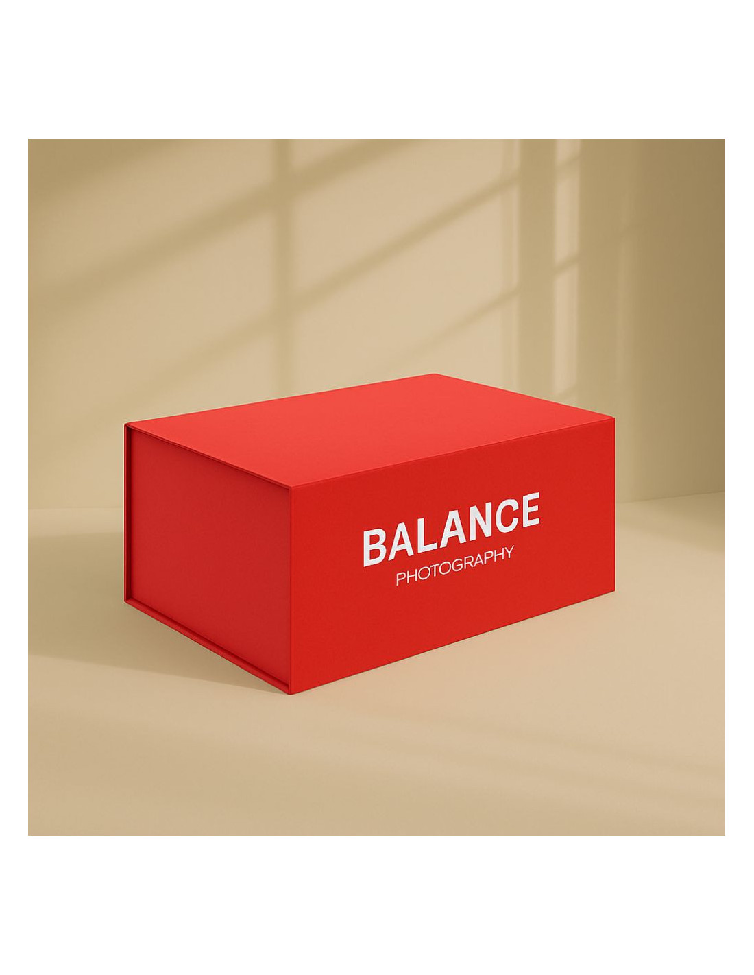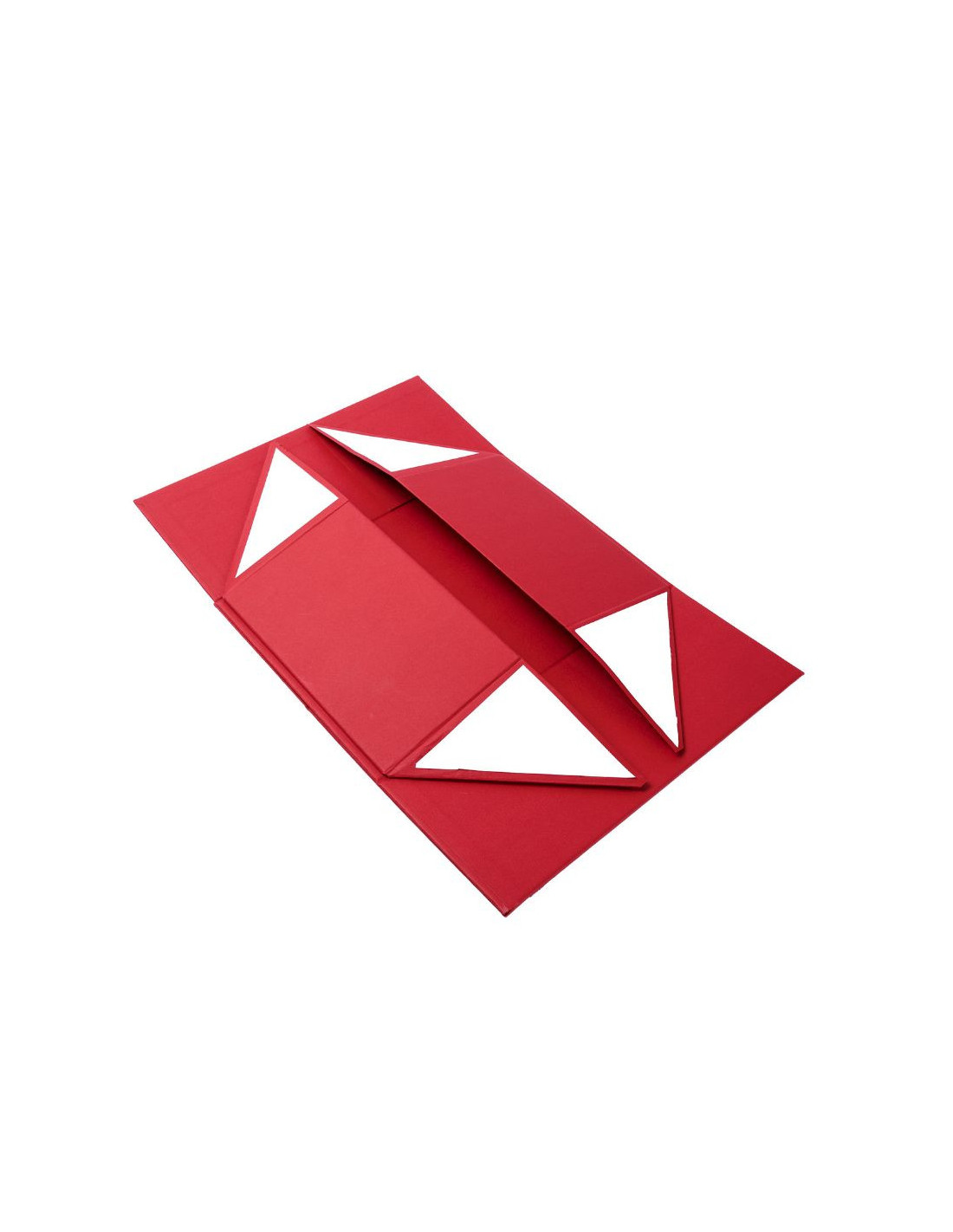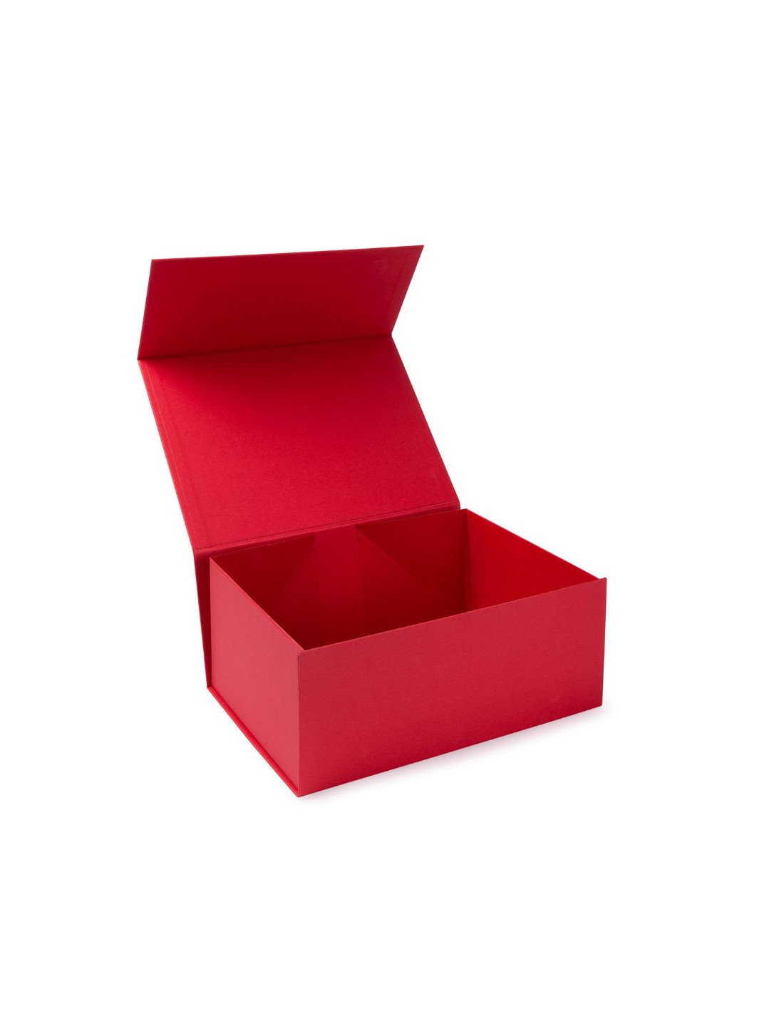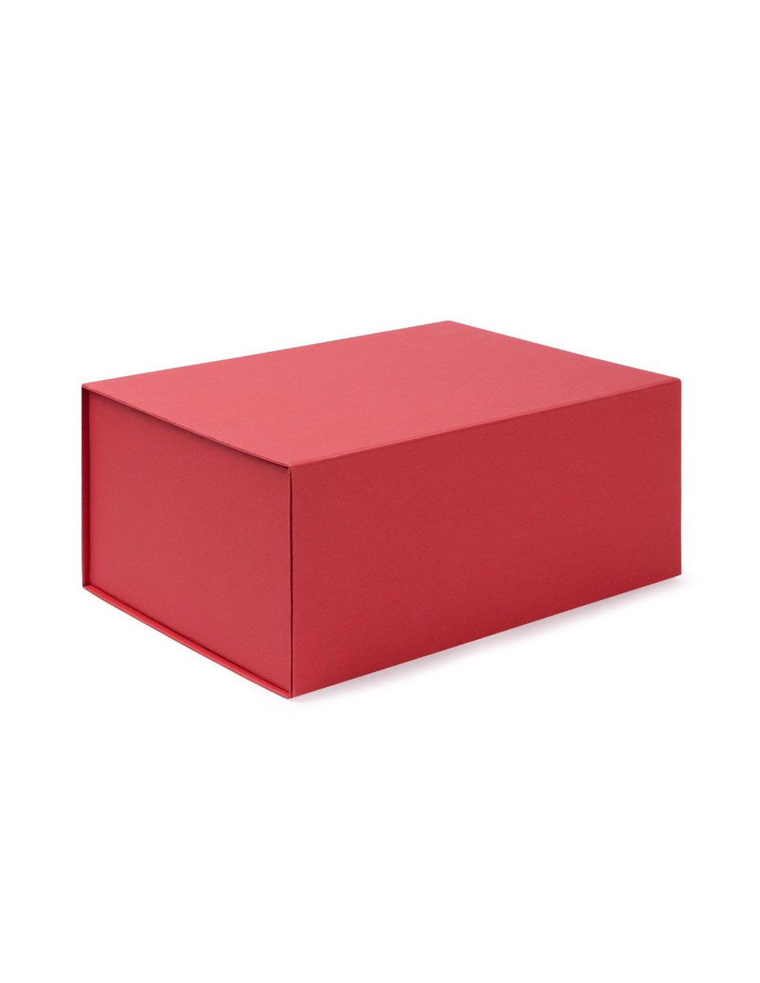 Caja plegable de cartón rígido de 900 g/m² en color rojo con cierre magnético y certificación FSC. Su formato automontable de 25 × 18 × 11 cm la convierte en una caja práctica y resistente para presentaciones de regalo, kits de bienvenida o packaging premium. Fabricada con materiales sostenibles, ofrece una imagen elegante y profesional que refuerza el valor de marca en cada entrega.
