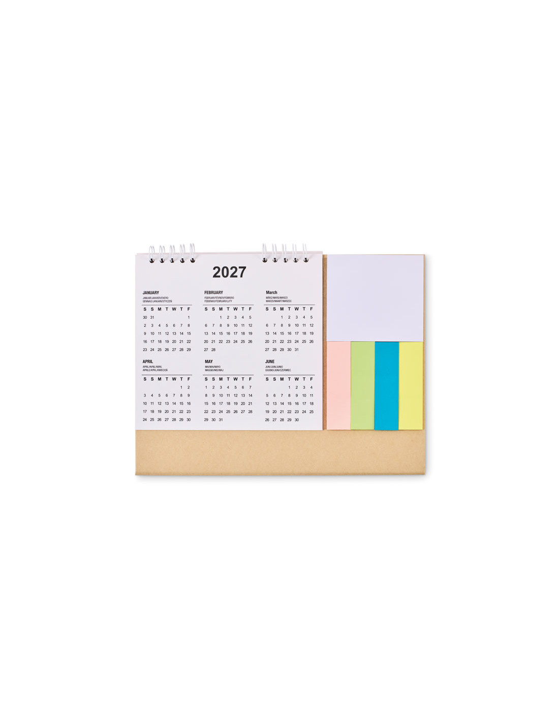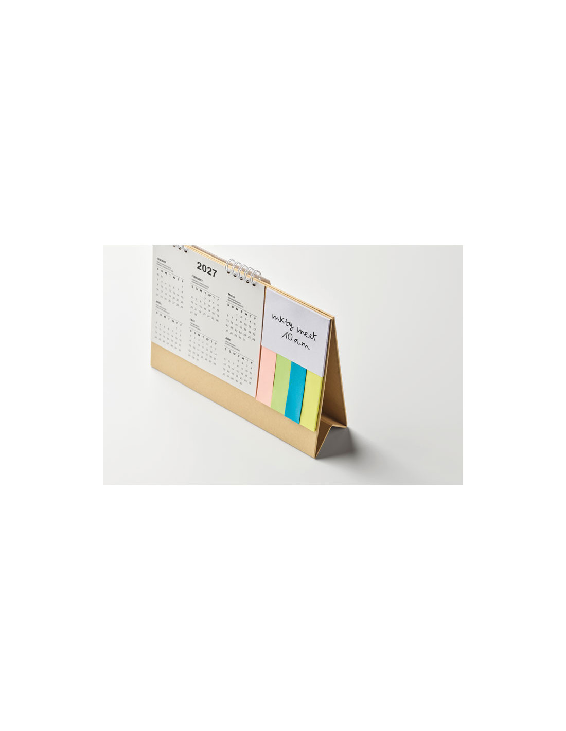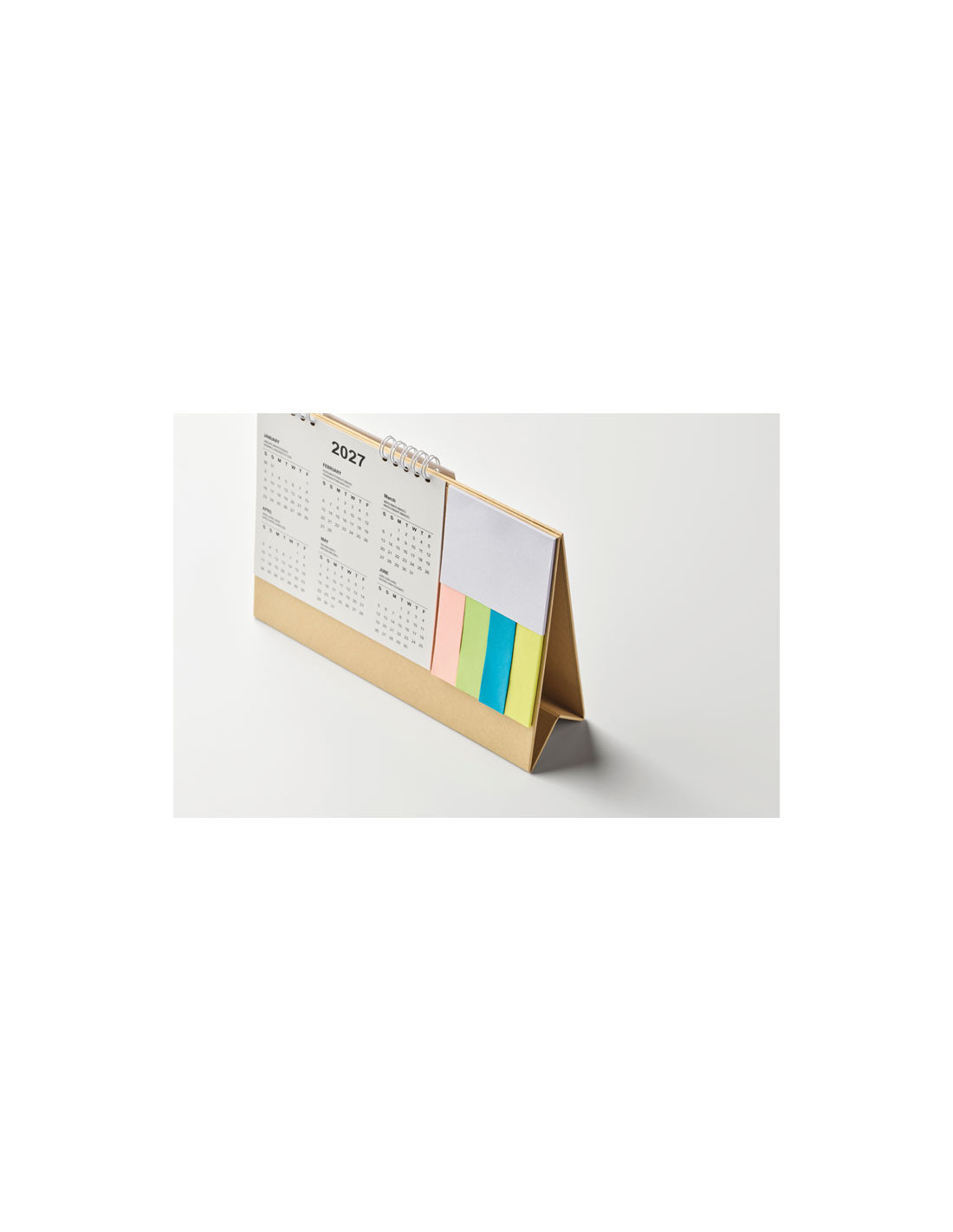 Organiza tu escritorio con este calendario de sobremesa de 4 años con notas adhesivas y bloc de notas, una herramienta sostenible y práctica para empresas que buscan merchandising útil y ecológico. Fabricado en papel reciclado y con certificación FSC® MIX, garantiza una gestión responsable de los recursos naturales. Incluye tres juegos de notas adhesivas, un bloc de notas y un soporte rígido de cartón que aporta estabilidad en cualquier superficie. Ideal como regalo publicitario sostenible para oficinas, eventos o campañas de branding corporativo. Su diseño compacto de 24 × 18 × 1 cm lo convierte en el aliado perfecto para planificar tareas, tomar apuntes y mantener la organización diaria, mientras tu marca destaca de forma constante y responsable.
