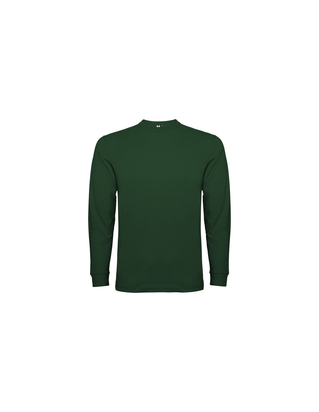 Camiseta de manga larga fabricada en 100% algodón, punto liso, 165 g/m² con tejido tubular, cuello redondo de 4 capas y puños canalé 1x1. Cubre costuras reforzado en cuello y hombros.