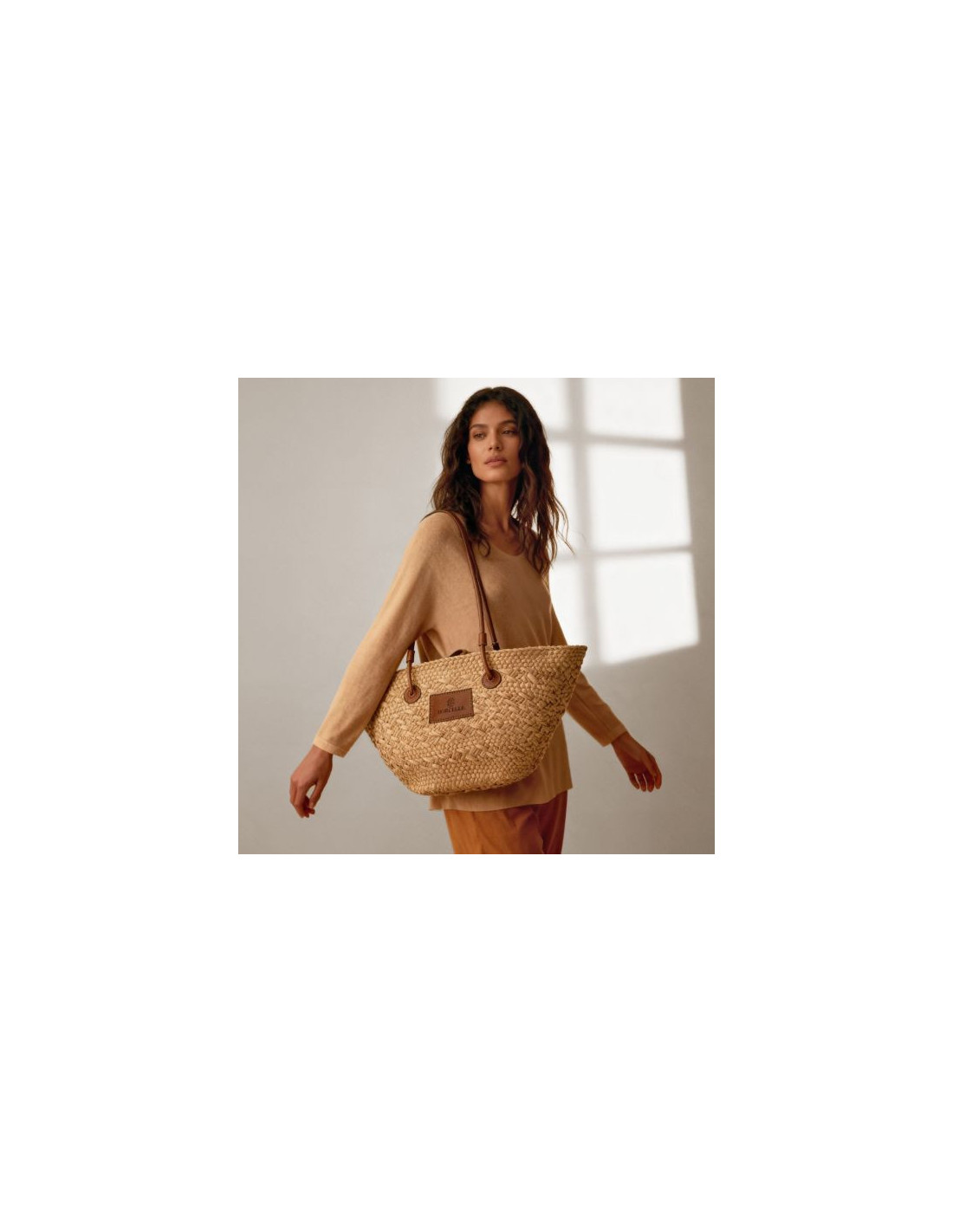 Capazo mediano con asas largas, elaborado en papel resistente y acompañado de etiqueta para personalización de tu marca. Perfecto tanto como bolso de playa donde podrás llevar todo lo necesario en verano, como para eventos, compras o como regalo corporativo, combinando funcionalidad y estilo sostenible. Se presenta en bolsa de non woven para un transporte cómodo y protección adicional. Dimensiones aproximadas: 48 x 17 x 27 cm.