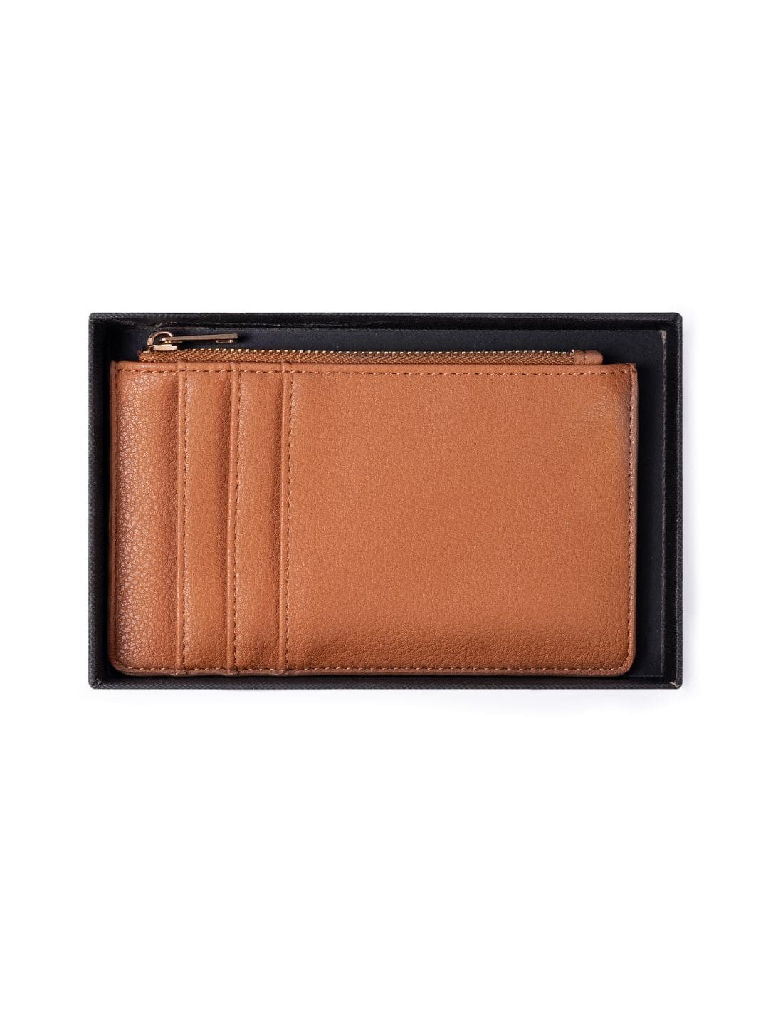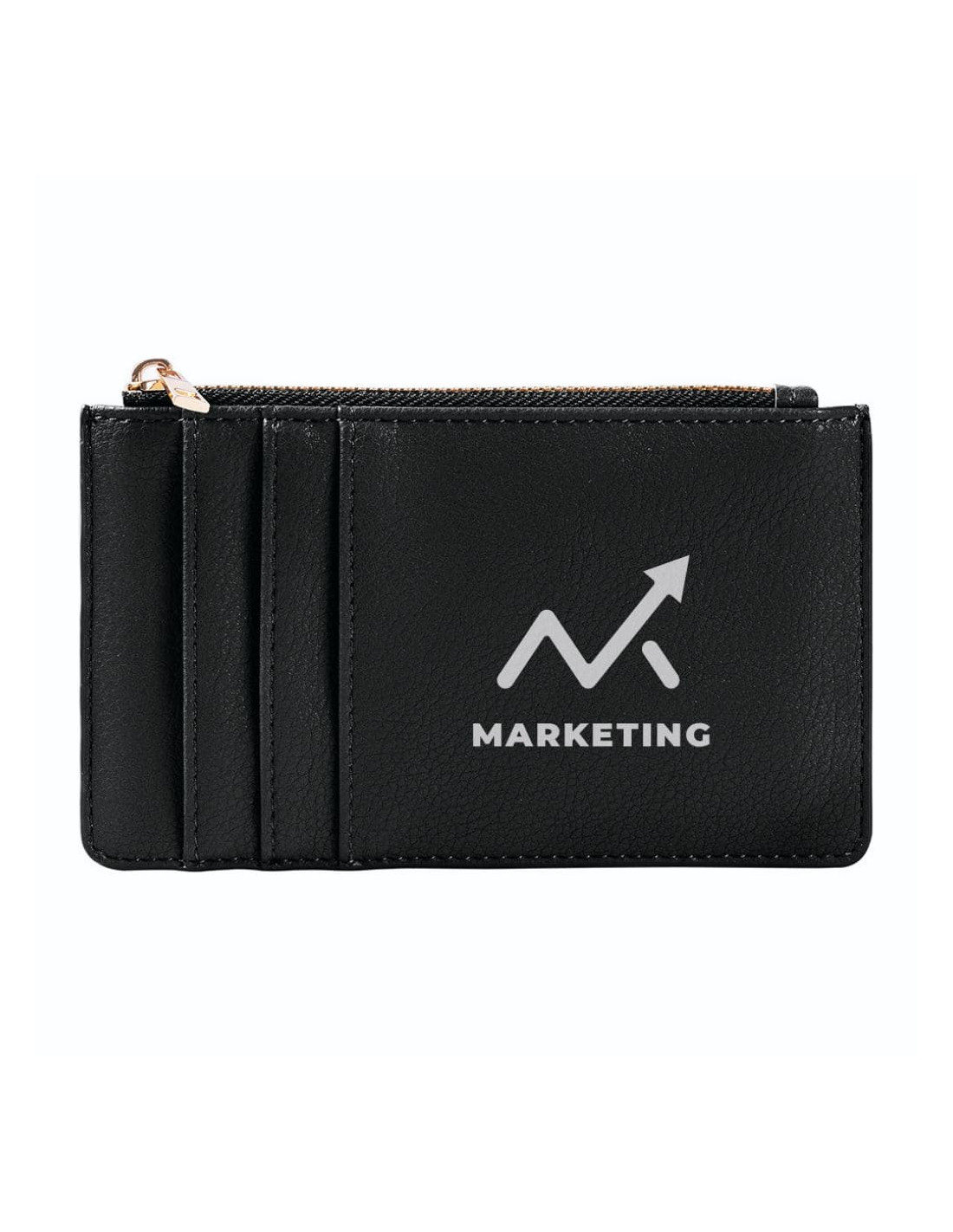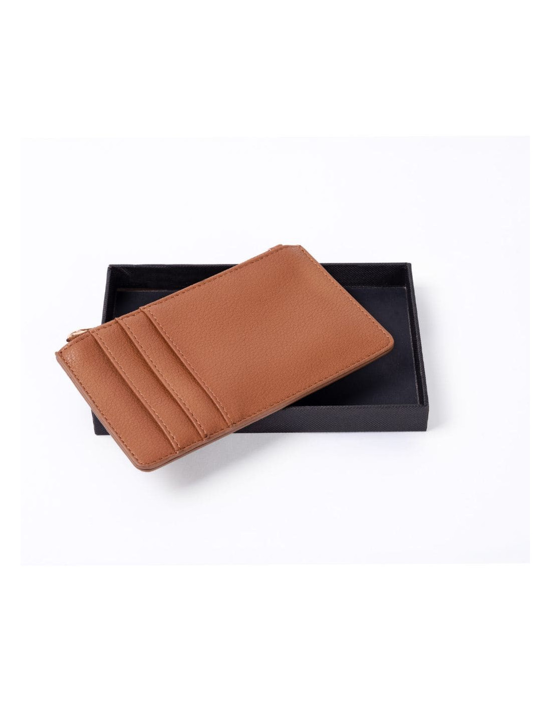 Cartera tarjetero con monedero Kalai fabricada en polipiel (PU) de alta calidad, con cierre de cremallera y compartimentos para tarjetas. Su diseño compacto (14,5 × 8,5 cm) permite llevar lo esencial de forma ordenada y con estilo. Esta cartera con tarjetero y monedero es ideal como regalo corporativo o detalle promocional, combina estética cuidada, funcionalidad (es tanto monedero como tarjetero) y materiales duraderos. Presentación individual en caja.