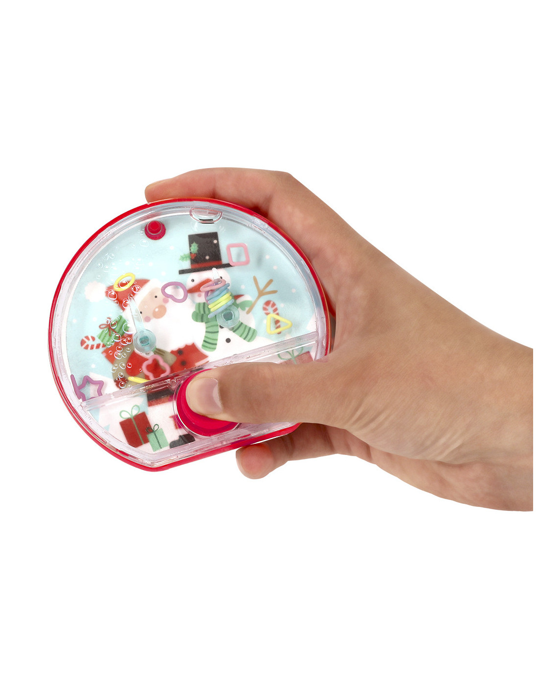 Divertida consola de agua con diseño navideño, fabricada en resistente material PS y equipada con botón de TPE en color rojo a juego. En su interior encontrarás aros de ABS en diferentes formas —corazón, triángulo, cuadrado y flor— con colores vivos como morado, rosa, azul claro y amarillo. Un clásico pasatiempo que nunca pasa de moda y que ayuda a ejercitar la destreza, la coordinación y la concentración de una manera entretenida. Perfecta como detalle en fiestas navideñas tanto para regalo infantil o complemento promocional original. Compacta y ligera, se transporta fácilmente y ofrece horas de diversión en cualquier lugar.