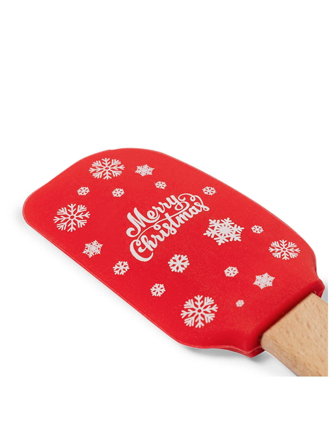 Espátula de cocina navideña fabricada en madera y silicona en rojo con mensaje de Merry Christmas. Práctica espátula para cocinar tus postres navideños favoritos a toda la familia. Medidas: 25 x 5 x 0.9 cm La temporada navideña es la oportunidad perfecta para hacer regalos especiales a empleados y clientes. La espátula de cocina personalizada no solo es un utensilio práctico, sino también un regalo único que destaca en el sector culinario.