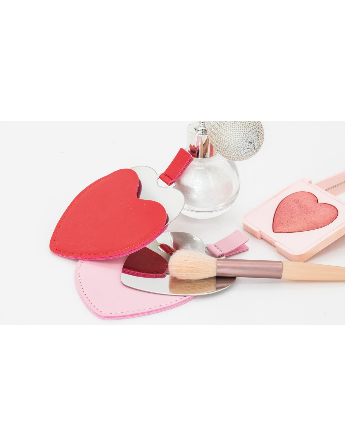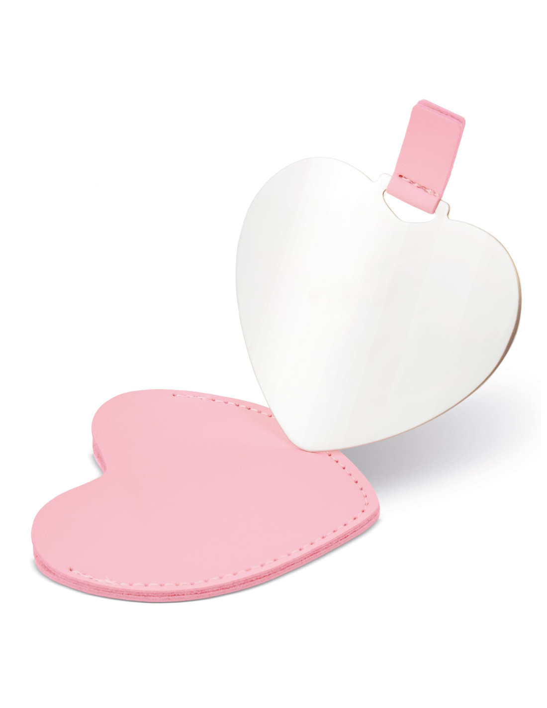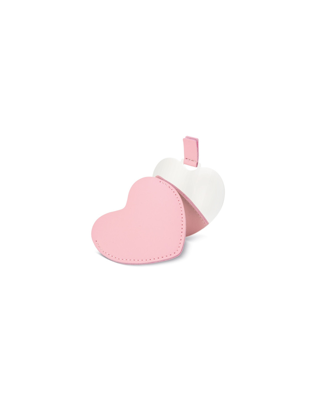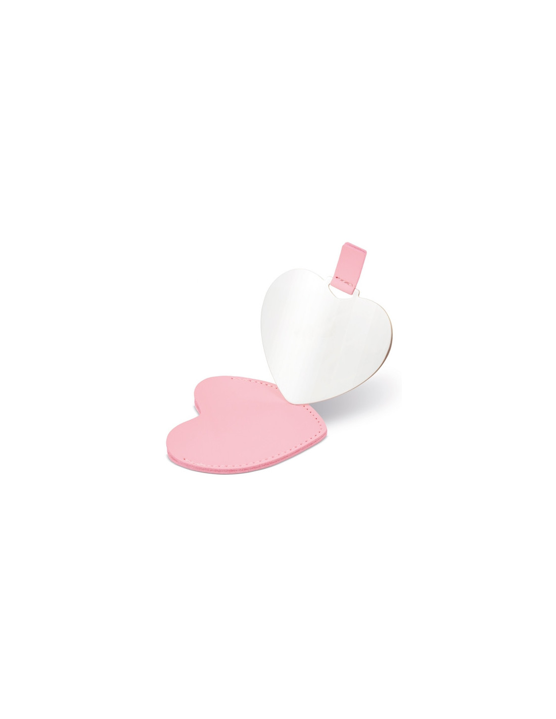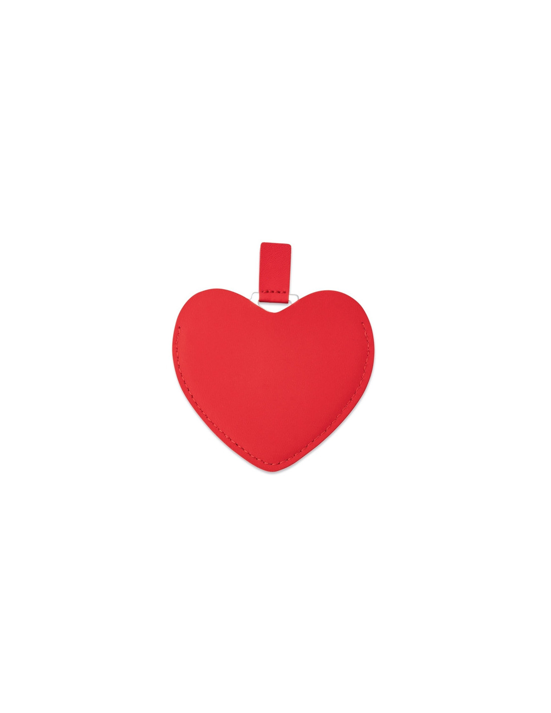Espejo con forma de corazón fabricado en acero, diseñado como accesorio compacto y práctico para llevar en bolso, mochila o neceser. Cada unidad se presenta en funda individual de PU, y está disponible en color rojo y rosa, opciones especialmente adecuadas para campañas promocionales, eventos especiales o acciones vinculadas a regalos emocionales. Sus medidas de 8,5 x 7,5 cm ofrecen un formato ligero y manejable, ideal para uso diario, mientras que su diseño cuidado permite la personalización con logotipo para reforzar la visibilidad de marca en regalos corporativos o promocionales.