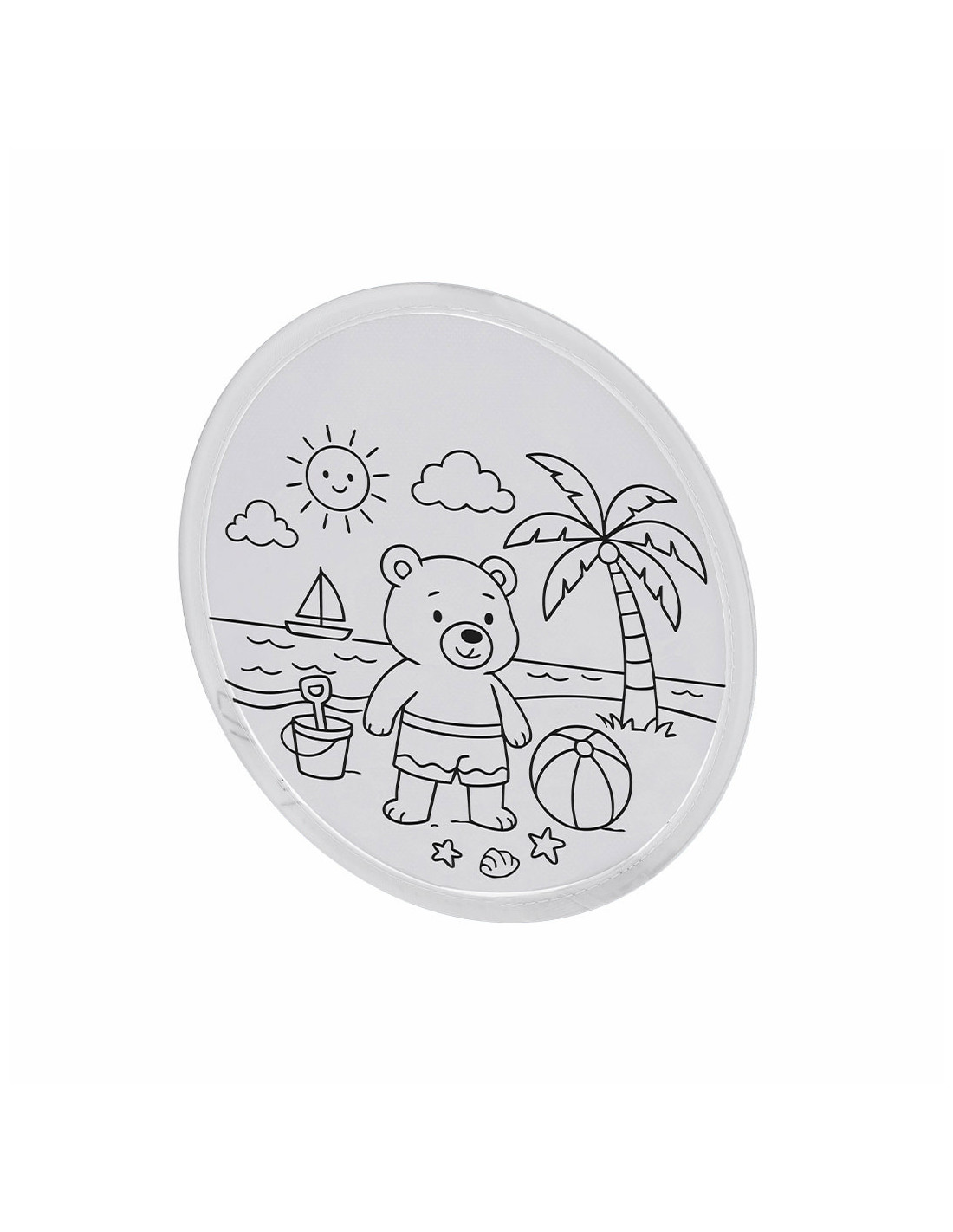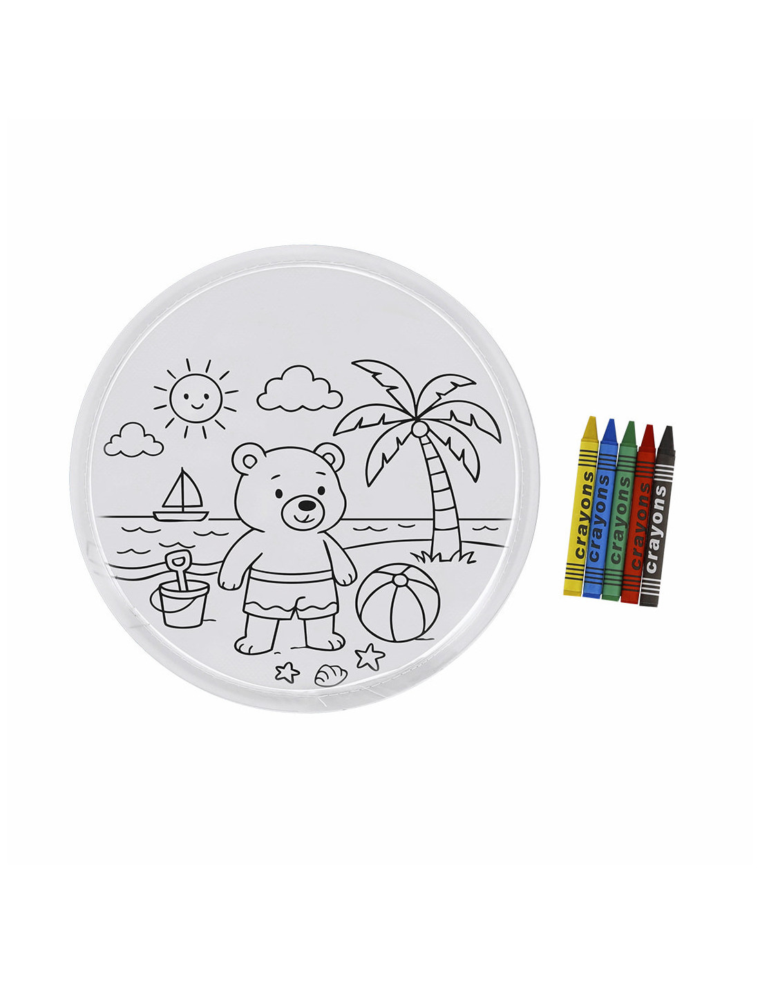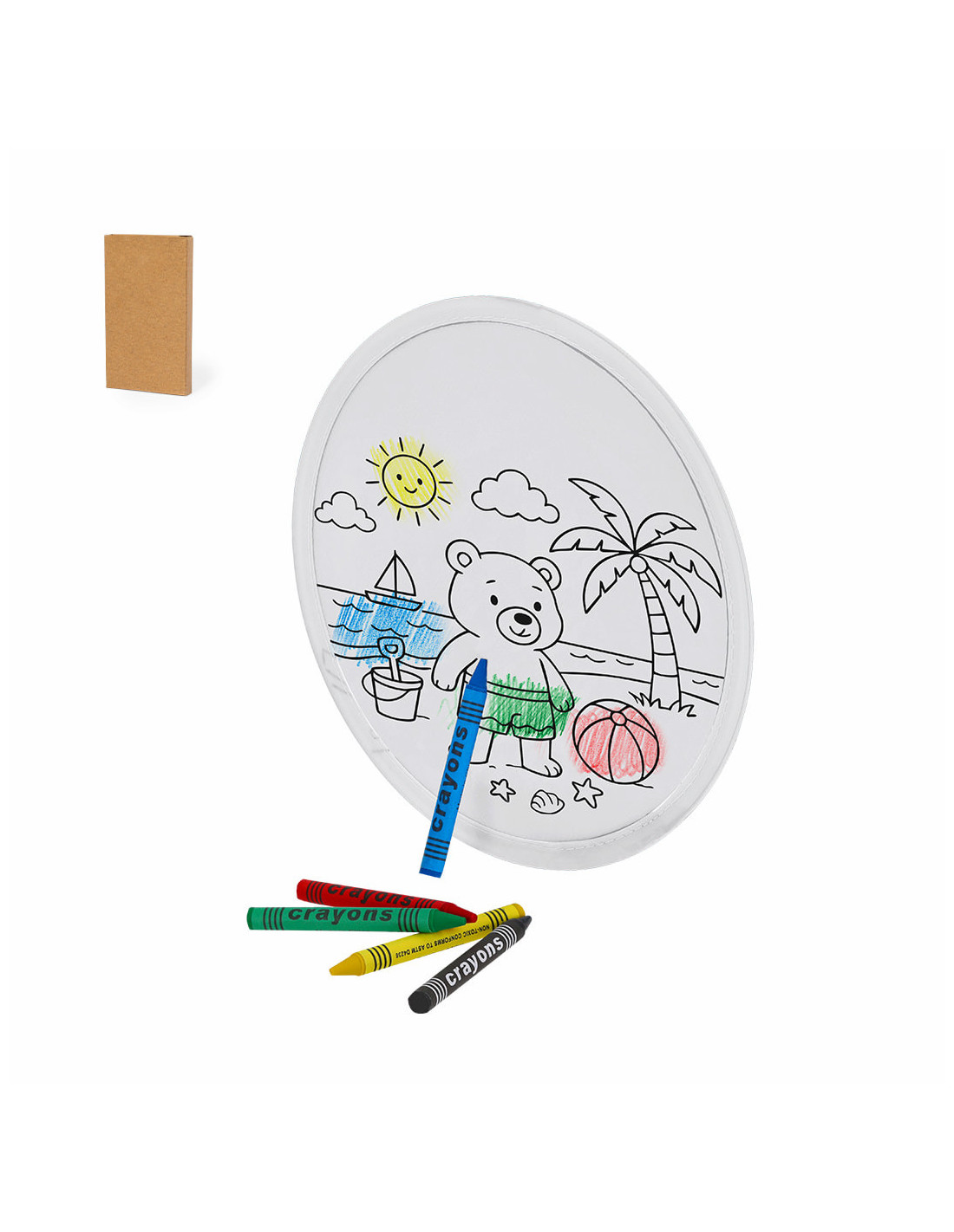 Frisbee original fabricado en Non-Woven, ideal para combinar diversión al aire libre con creatividad. Incluye un set de 5 ceras de colores y un frisbee con un diseño de osito en la playa listo para colorear, permitiendo que los niños personalicen su juguete mientras disfrutan del juego. Su material Non-Woven lo hace ligero, resistente y seguro para el uso infantil, perfecto para actividades en el parque, la playa o en casa. Este set creativo fomenta la imaginación, la coordinación y el entretenimiento en grupo, siendo también un excelente detalle promocional o regalo educativo.