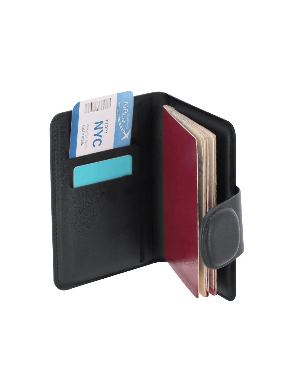 Funda para pasaporte con localizador inteligente integrada, fabricada en PU y pensada para proteger y localizar tus documentos de viaje. Incorpora sistema de conexión dual compatible con Apple Find My y Android Find Hub, lo que permite rastrear el pasaporte en tiempo real desde el móvil en caso de pérdida. Cuenta con cierre magnético que mantiene el pasaporte bien sujeto durante el transporte y facilita un acceso rápido. Incluye pila de botón para su uso inmediato, sin necesidad de accesorios adicionales. Una solución práctica para viajes, eventos corporativos o regalos promocionales orientados a la movilidad y la tecnología.