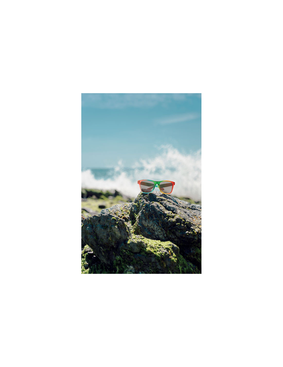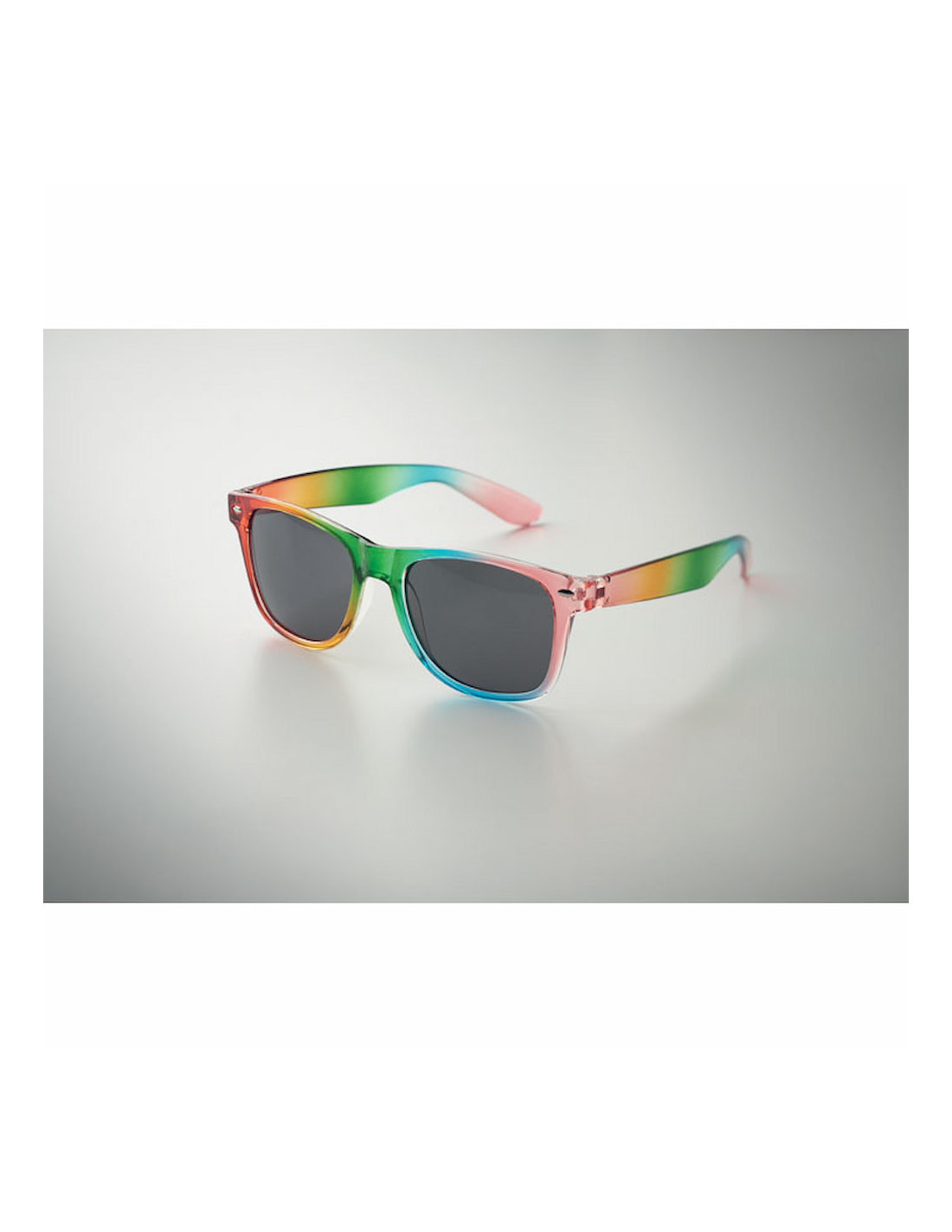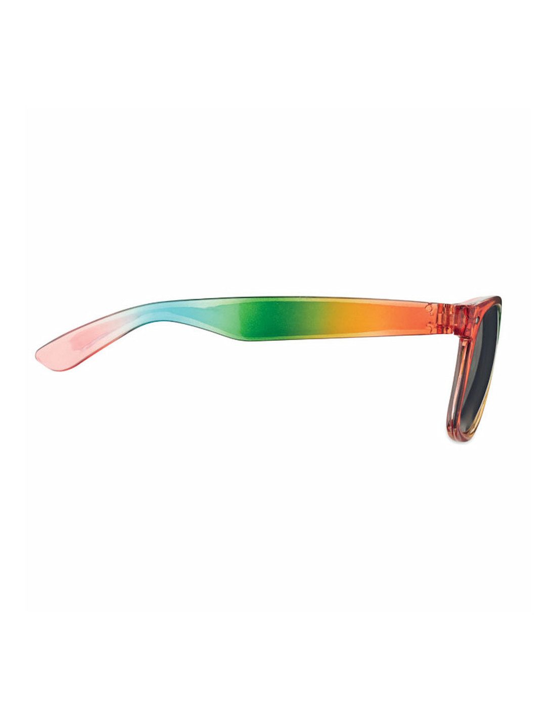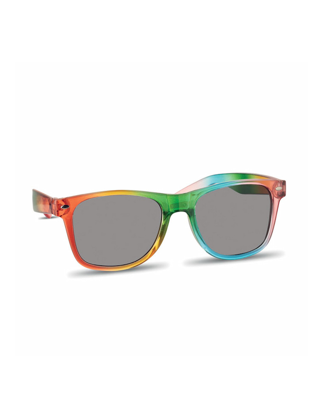 Gafas de sol multicolor con diseño multicolor y montura fabricada en PC, un material ligero y resistente ideal para un uso cómodo durante todo el día. Incorporan protección UV400 que ayuda a proteger los ojos frente a los rayos solares, siendo una opción práctica para actividades al aire libre, festivales, eventos o campañas promocionales. Su diseño llamativo y colorido aporta un estilo alegre y moderno, perfecto para destacar en verano o en acciones de marketing. Con unas dimensiones aproximadas de 14,2 x 4,6 x 14 cm, ofrecen un ajuste cómodo y versátil para diferentes usuarios.