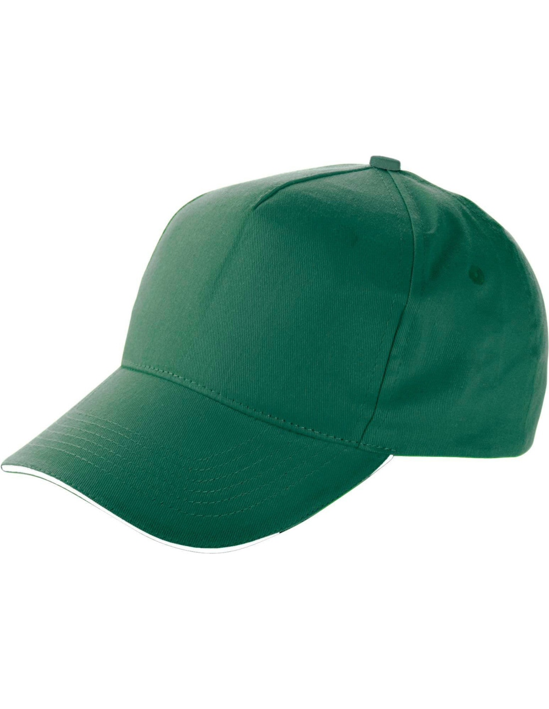 Gorra fabricada en algodón con 5 paneles y visera de sándwich de diferentes colores. Cierre de velcro.