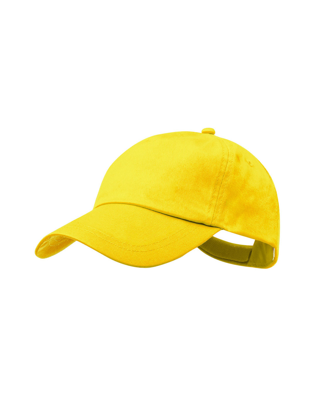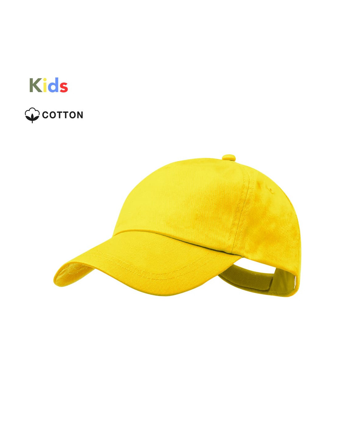 Gorra algodón para niños fabricada en 5 paneles con orificios de ventilación bordados y cierre ajustable de velcro. Práctica gorra infantil de colores con cinta interior ideal para campañas promocionales para niños y como regalo de escuelas deportivas.