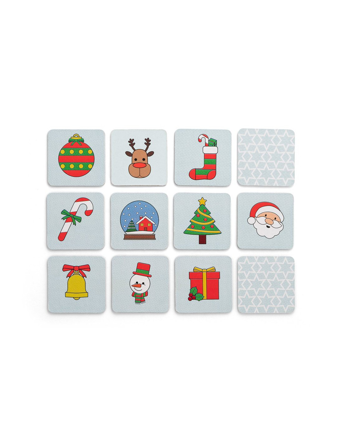Juego de memoria navideño compuesto por 20 piezas con divertidas ilustraciones de navidad para los más pequeños. Presentación en caja de cartón de color rojo para un fácil transporte y guardado. Medidas pieza: 50 x 50 x 1.5 mm