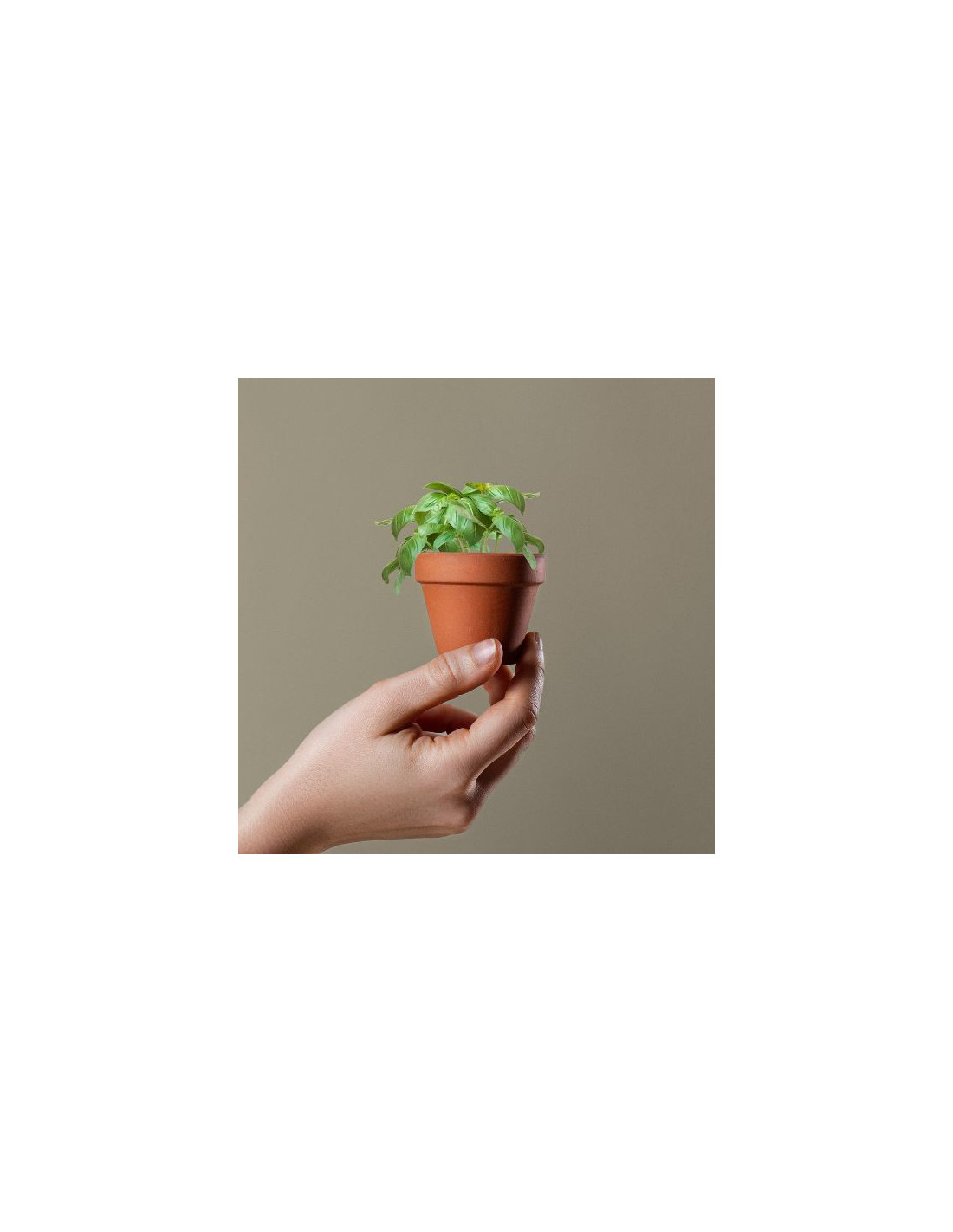 Mini maceta con albahaca fabricada en terracota de 5 cm con tierra y semillas incluidas. Presentación individual con vitola personalizable. Medidas: 5.5 x 5 cm. Pequeña maceta para regalo ideal para detalles promocionales de tu marca. Mini maceta para regalar y personalizar a medida para todos tus clientes.