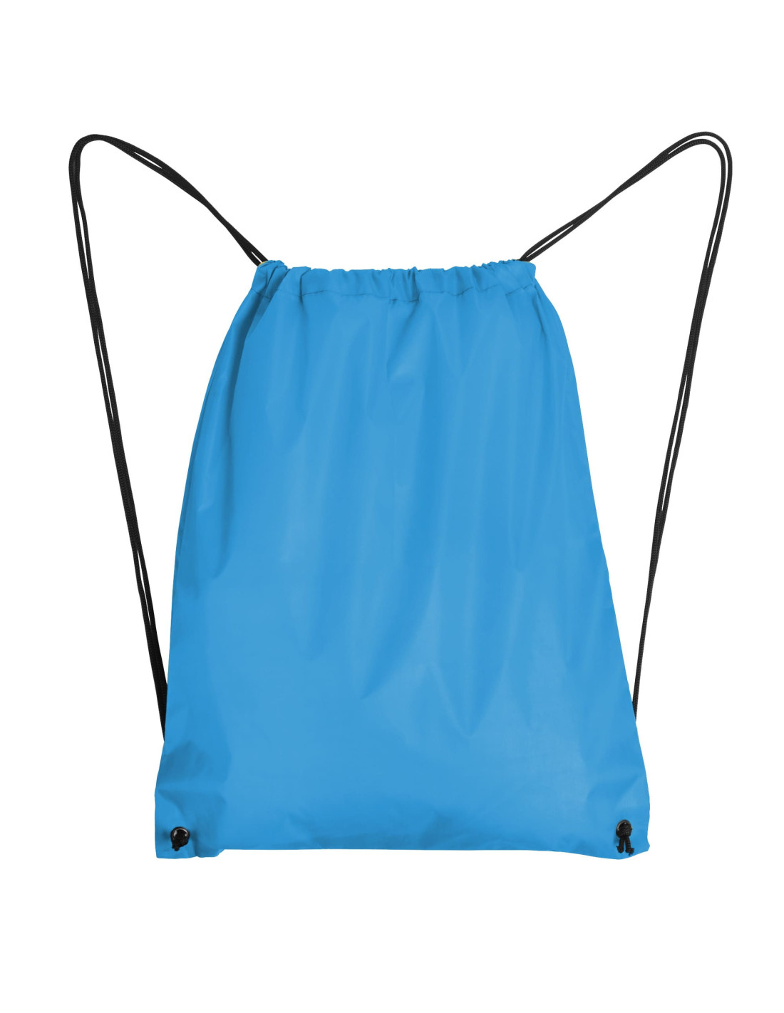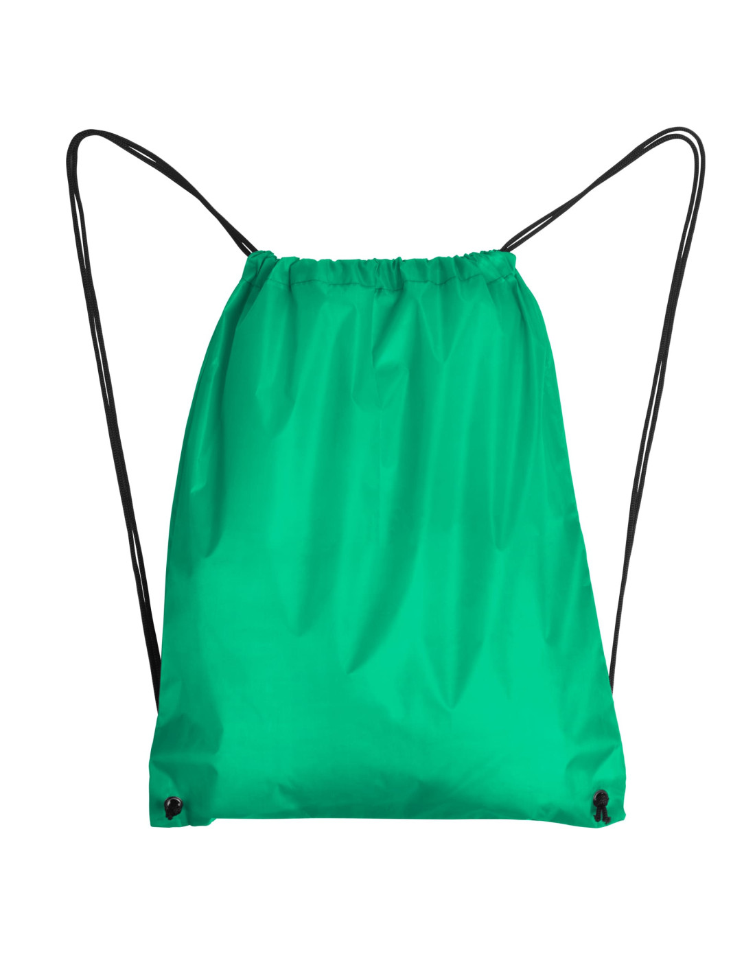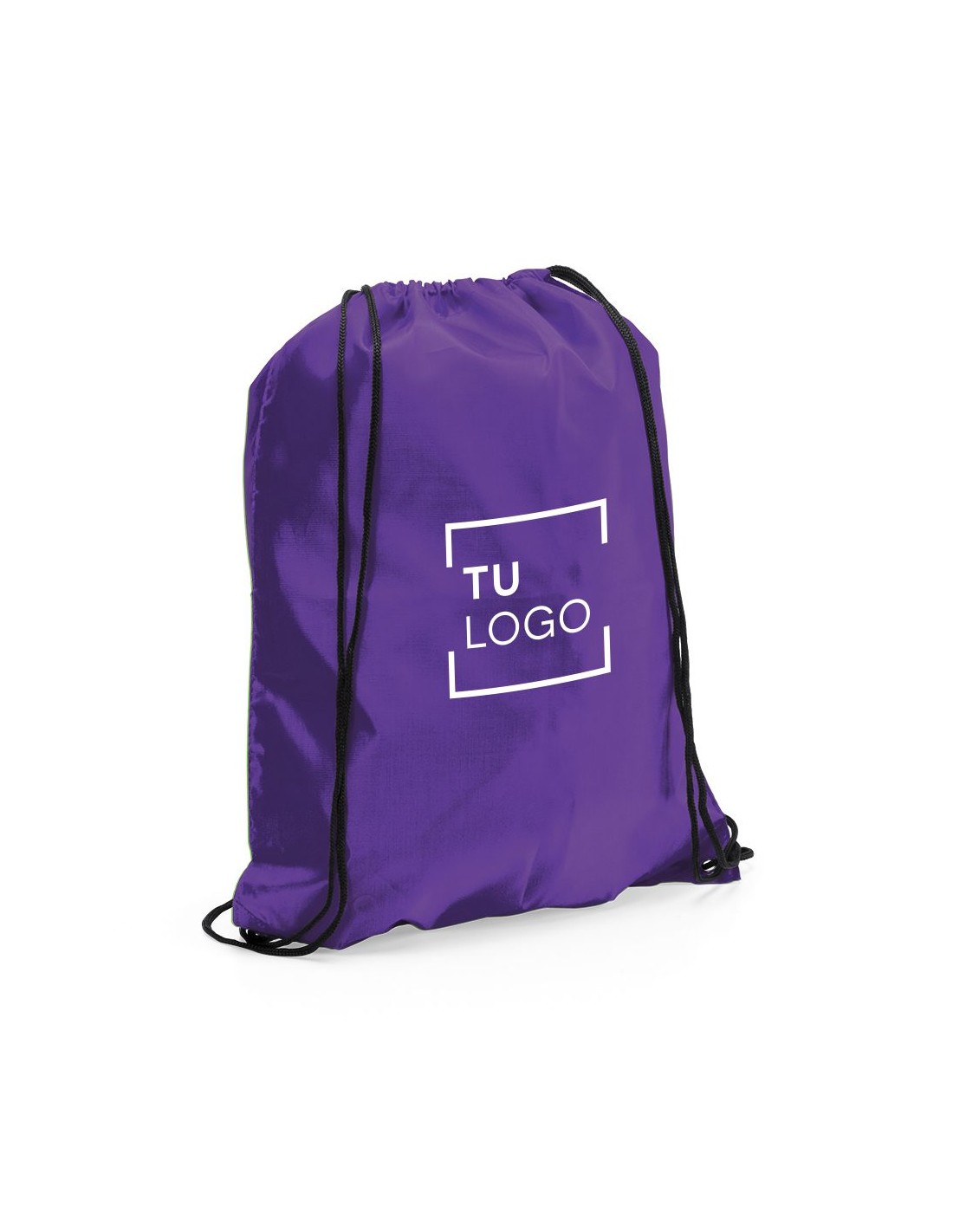 Mochila con cuerdas autocierre de color negro fabricada en poliéster 210T de diferentes colores, esquina con argollas metálicas y refuerzo de polipiel a juego.