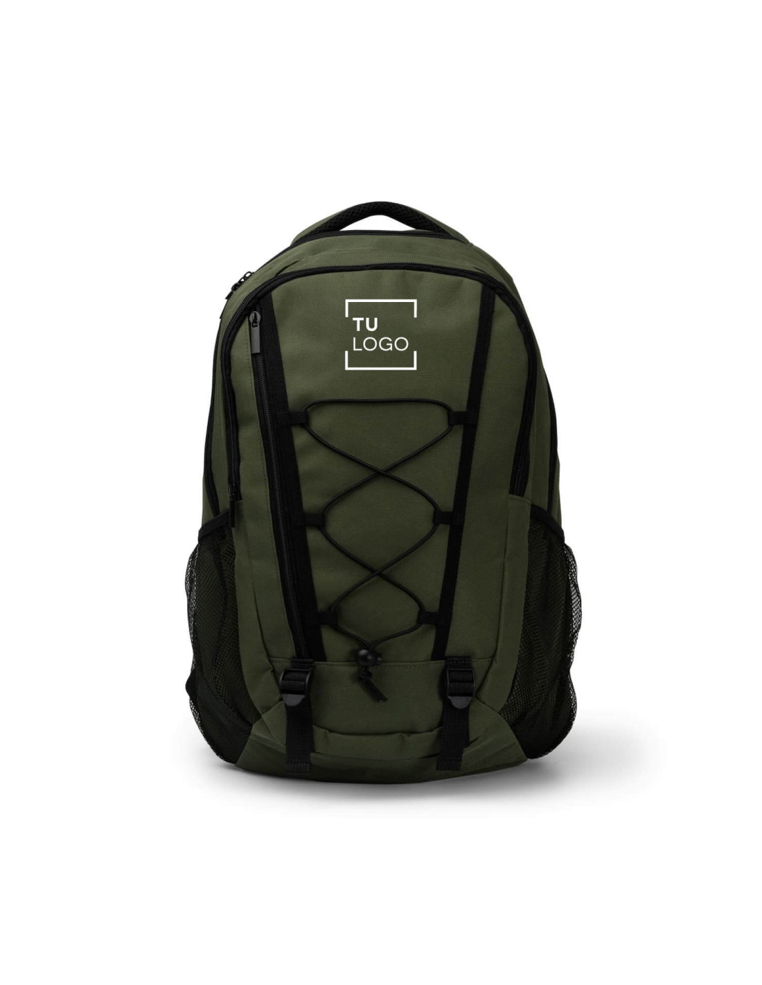 Esta mochila fabricada en resistente poliéster 600D ofrece un diseño práctico y versátil, perfecta para trabajadores, estudiantes o para regalar en campañas de merchandising corporativo. Dispone de dos compartimentos principales, uno de ellos con bolsillo interior acolchado para portátiles de hasta 16", garantizando seguridad y una organización eficiente. El frontal incorpora un bolsillo con cierre de cremallera y cuerdas elásticas para llevar accesorios adicionales, mientras que sus dos bolsillos laterales de malla permiten transportar botellas o pequeños objetos de uso diario. La espalda y las asas acolchadas aportan mayor comodidad y ergonomía, e incluye tiradores y cremalleras en color negro para un acabado moderno. Con una capacidad amplia de 23 litros y unas medidas de 32 × 47 × 17 cm, es una opción ideal para personalizar con el logo de empresa.