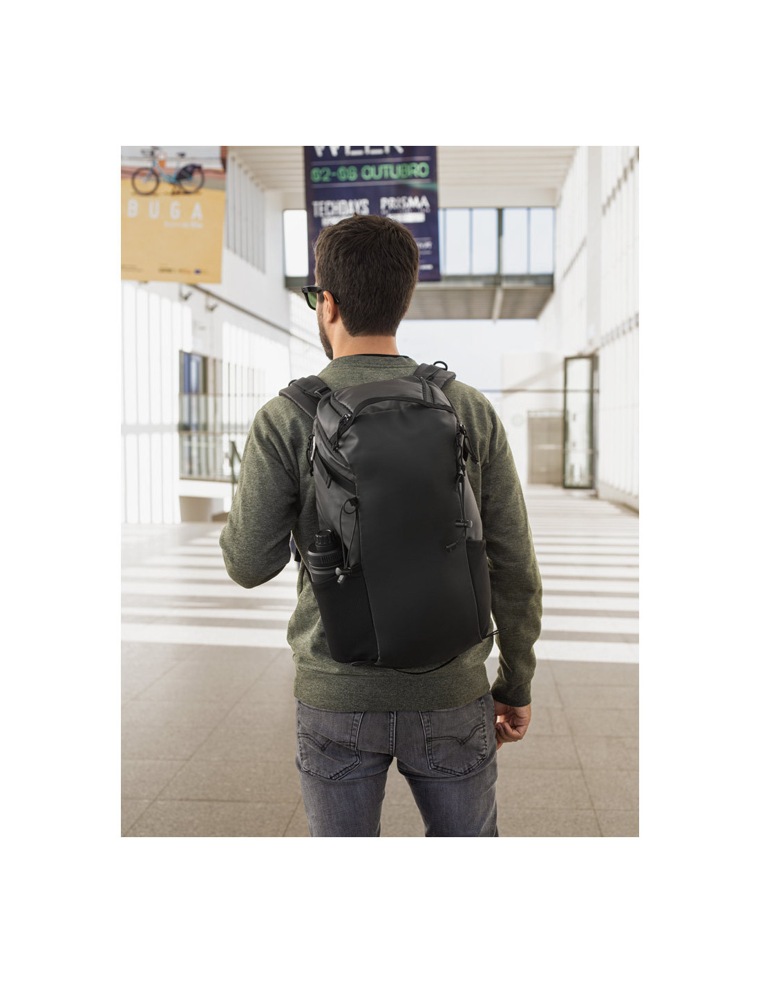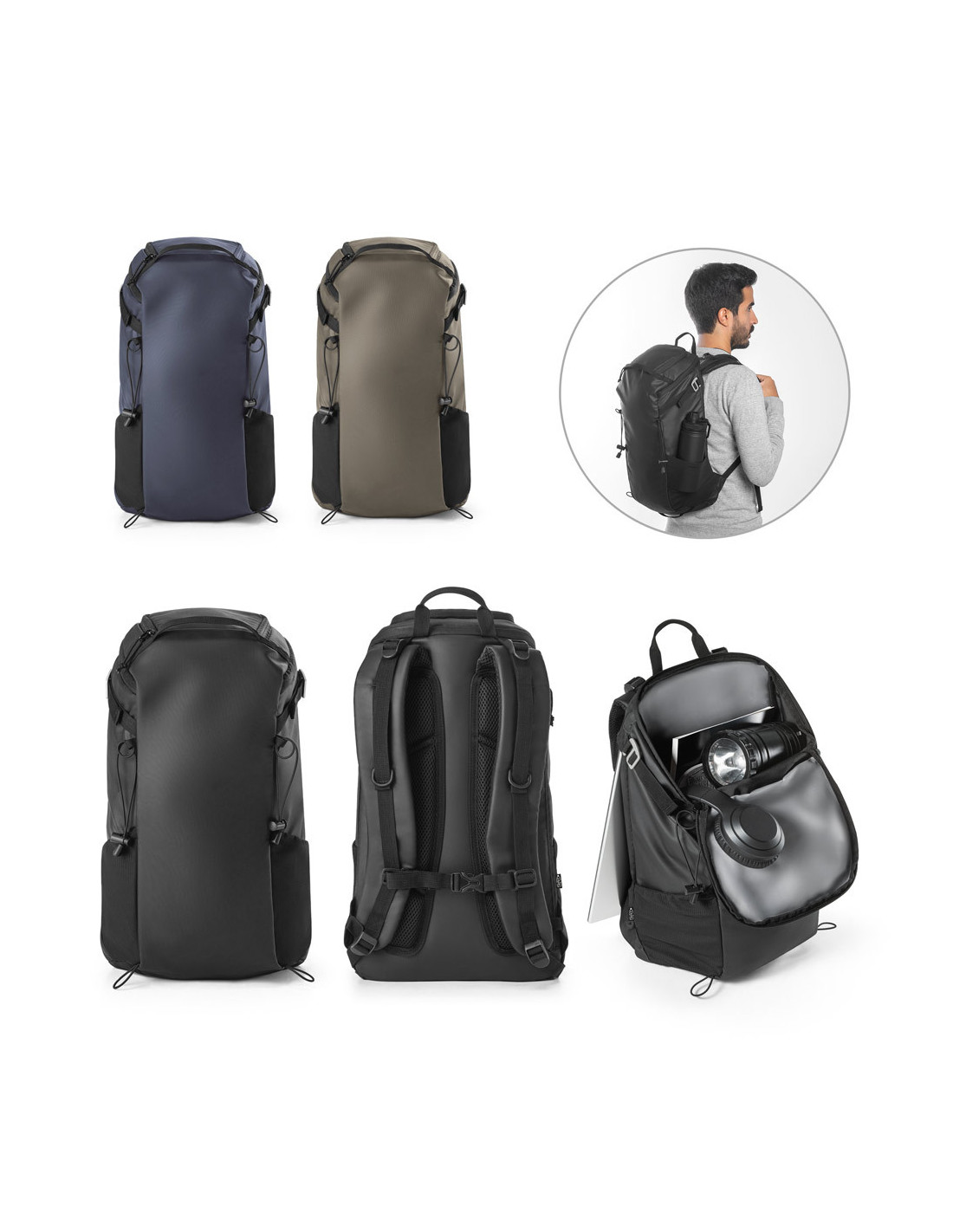 Mochila de senderismo impermeable diseñada para acompañarte en escapadas al aire libre pero también en el día a día como, un diseño pensado para ofrecer comodidad en cualquier situación. Con una capacidad de 18 litros, tiene tamaño perfecto para transportar todo lo necesario sin renunciar a un formato compacto y práctico, integrando dos compartimentos principales y un espacio específico acolchado para portátil de hasta 35,5 cm que garantiza una mayor protección durante el transporte. Incorpora un bolsillo superior con cremallera y bolsillos laterales de malla elástica, perfectos para llevar botellas u objetos de uso frecuente. Las trabillas laterales multifunción y las correas de control de peso permiten adaptar la carga para un uso más equilibrado. Cuenta con correa de sujección en el pecho para mejorar la sujeción al caminar, lo que la convierte en una opción ideal para actividades outdoor como senderismo. Su acabado suave da sensación agradable al tacto. Una mochila versátil que la convierten en un regalo perfecto para empresas que quieran promover un estilo de vida activo y relacionadas con actividades al aire libre y la naturaleza.