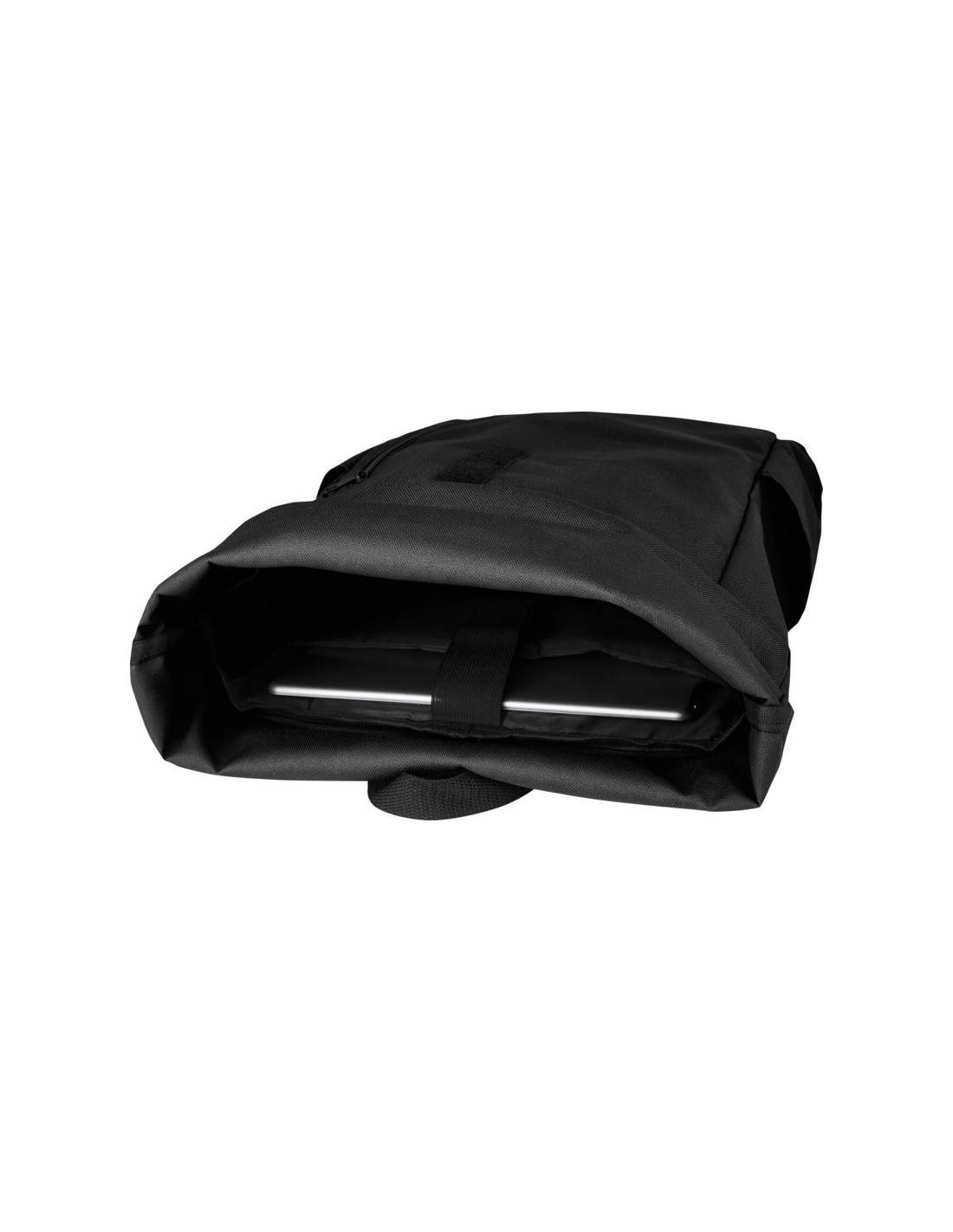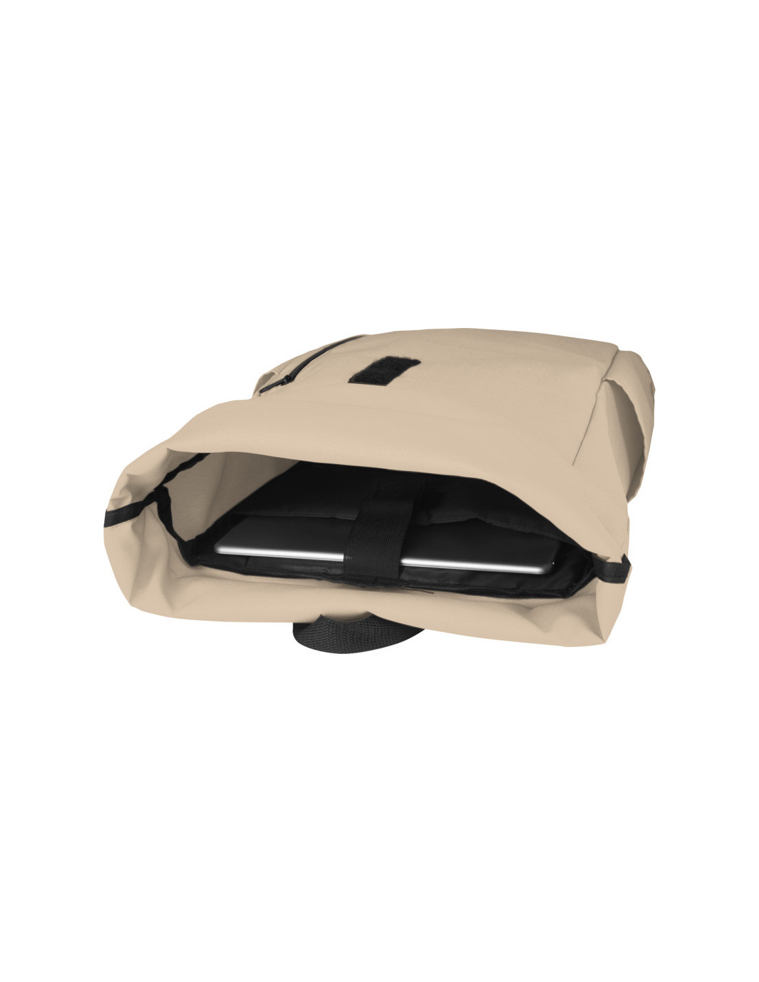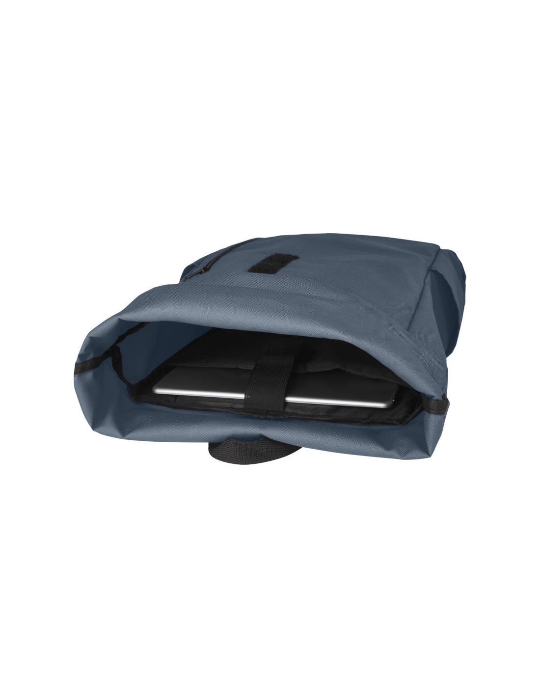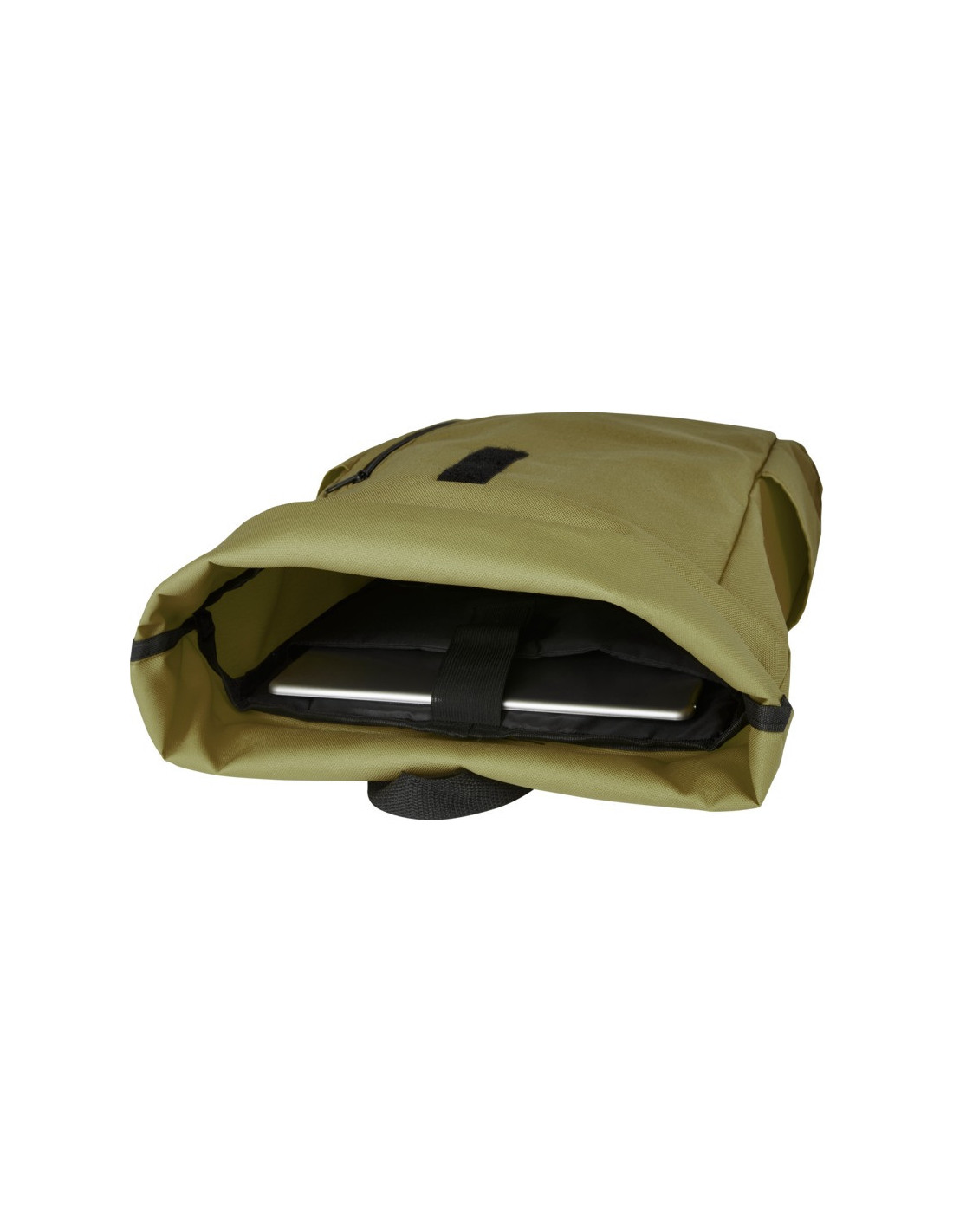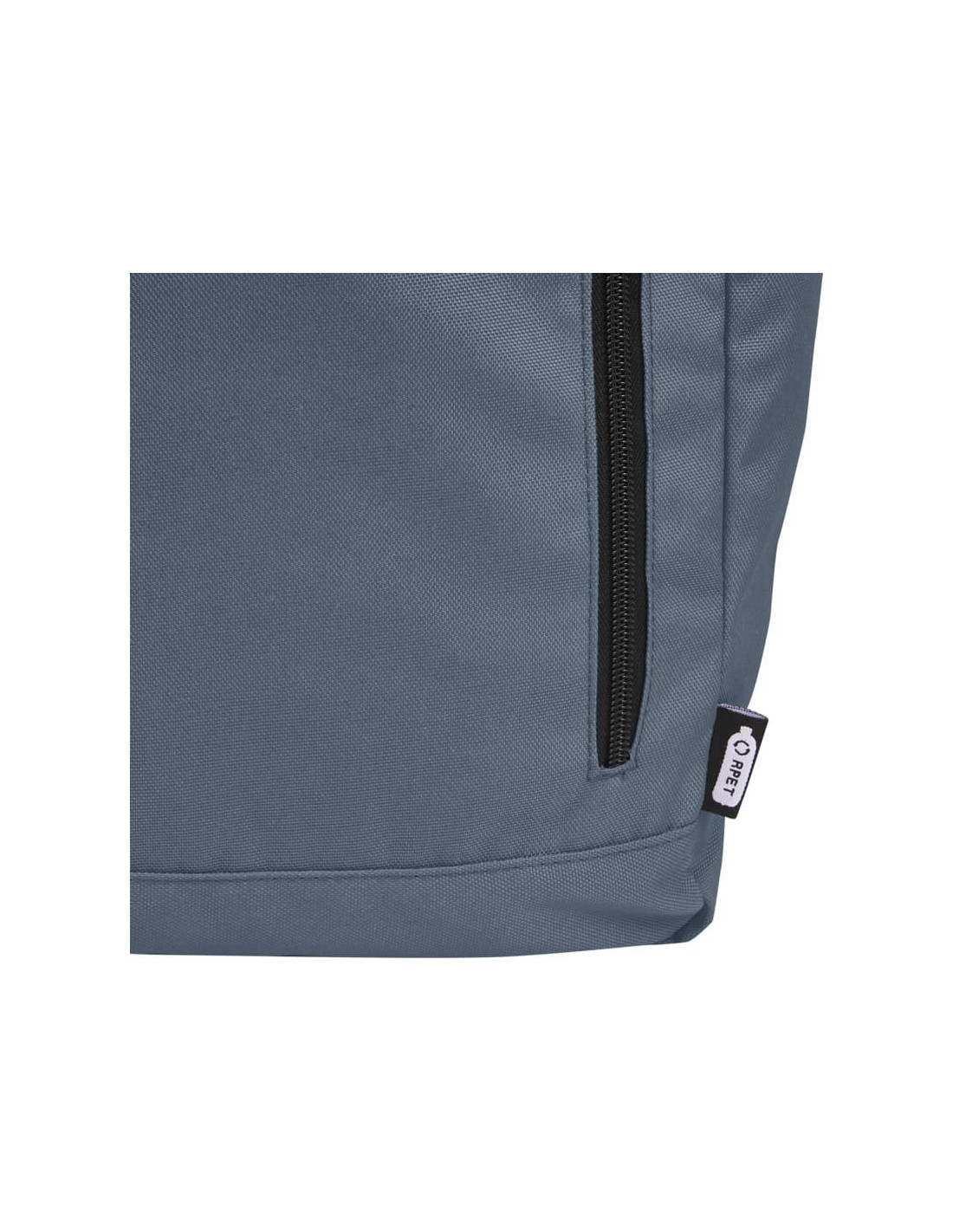 La mochila enrollable personalizada de 18 litros es una opción práctica y sostenible para el uso diario, fabricada en poliéster reciclado RPET con certificado GRS. Su diseño resistente e impermeable la hace ideal para ir al trabajo, a clase o desplazarse por la ciudad con total comodidad. Cuenta con un amplio compartimento interior acolchado para portátiles de hasta 15,6”, además de un bolsillo frontal con cremallera y dos bolsillos laterales para llevar siempre organizados los accesorios esenciales. Incorpora respaldo y asas ajustables acolchadas, asa de transporte superior y un cierre enrollable con sistema de gancho y bucle que aporta seguridad y un estilo moderno. Una mochila perfecta para quienes buscan funcionalidad, diseño urbano y un menor impacto medioambiental.