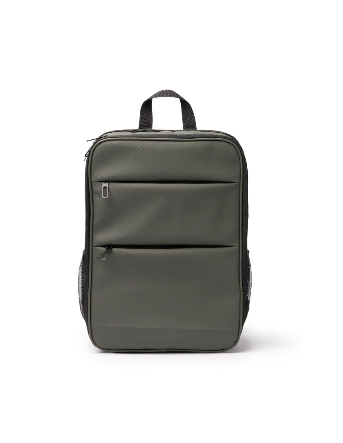 Mochila en PU Leather o piel sintética con doble compartimento y cierre de cremallera doble, diseñada para ofrecer organización y comodidad en el día a día. Incorpora compartimento acolchado para portátil de hasta 15" y segundo compartimento extensible con bolsillo interior de ajuste elástico para otros dispositivos. Dispone de dos bolsillos frontales con cremallera y dos bolsillos laterales de rejilla con ajuste elástico para botellas o bidones. Asas y espalda acolchadas que garantizan un transporte cómodo y seguro. Capacidad: 15 litros. Capacidad 15L. Medida extendida: 38,5 x 27 x 15 cm. Medida contraída: 38,5 x 27 x 4 cm.