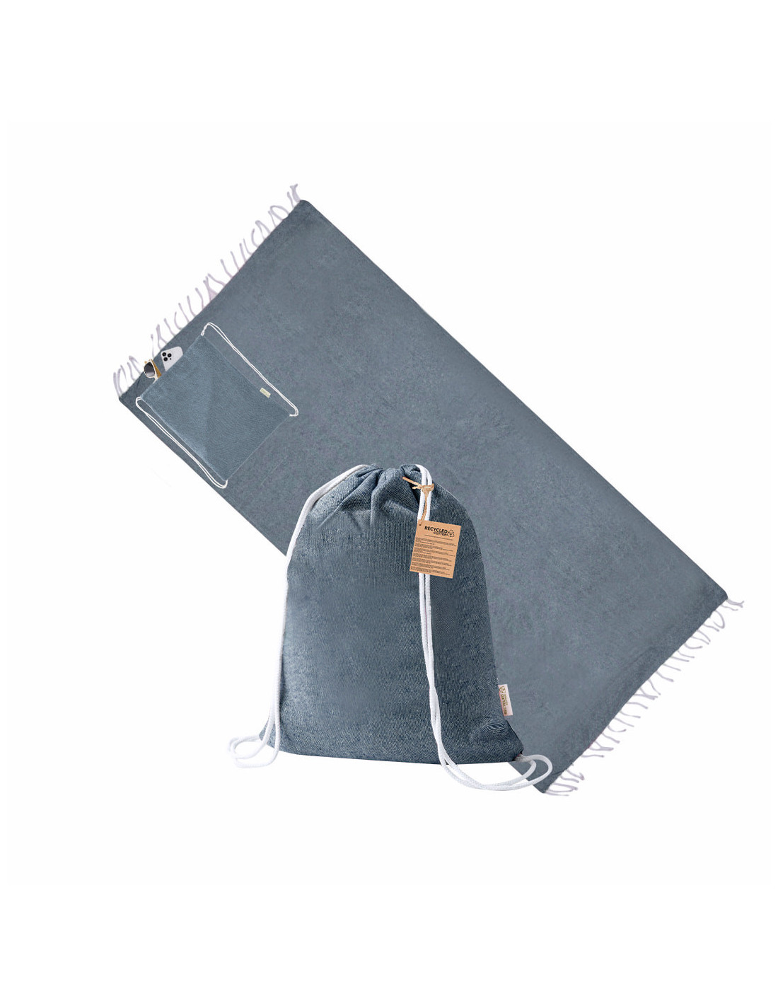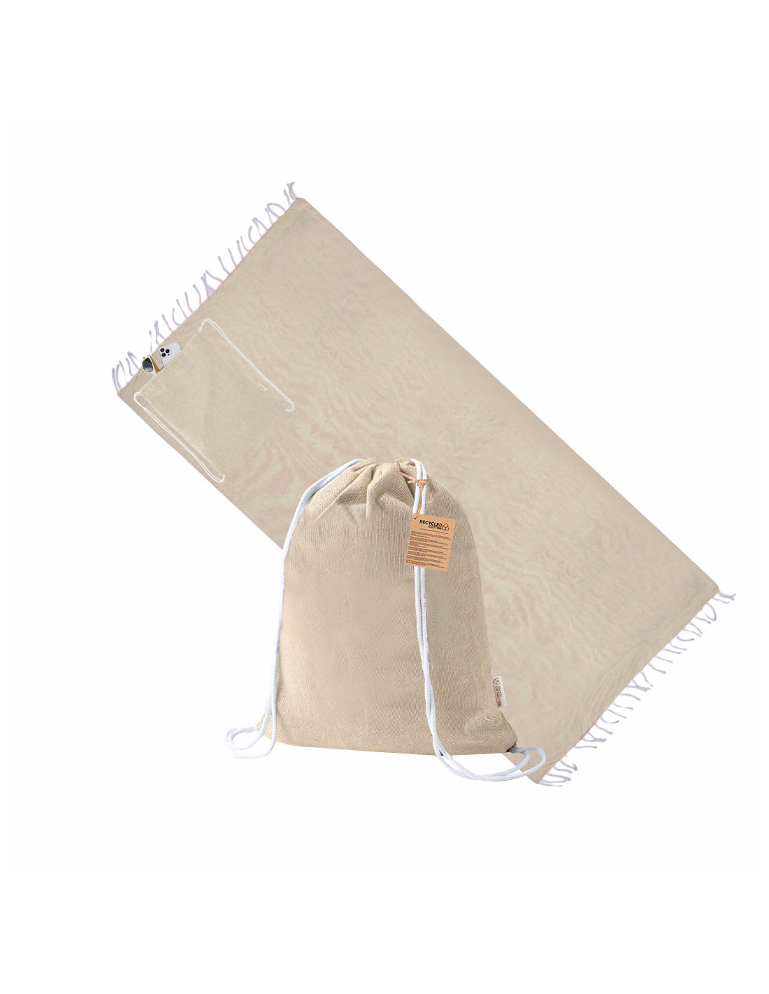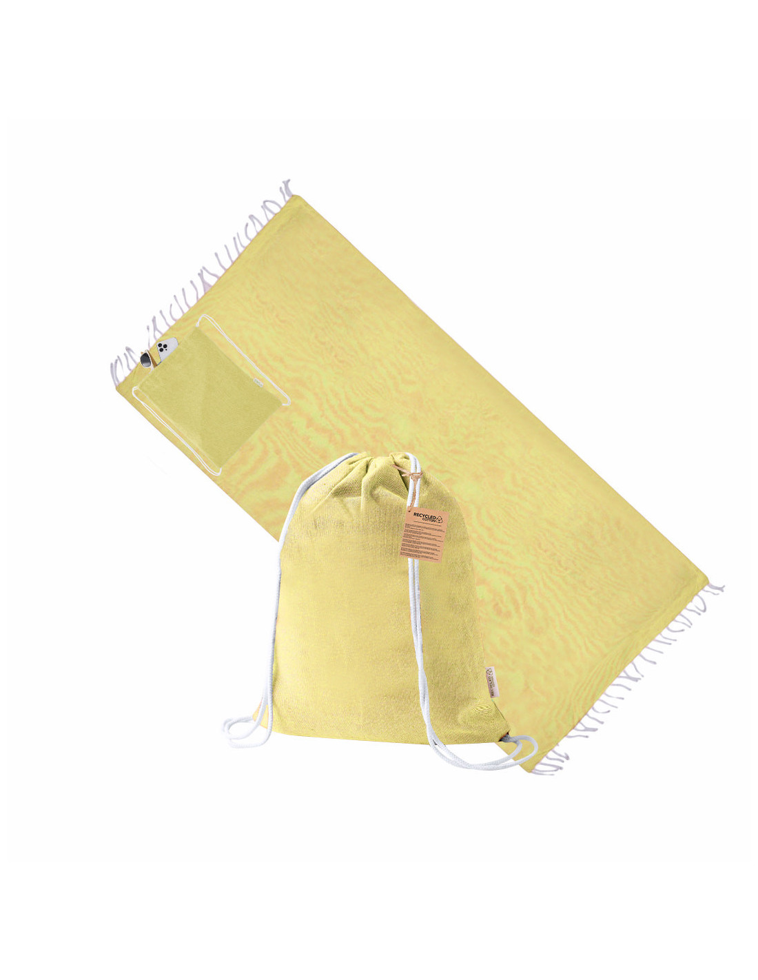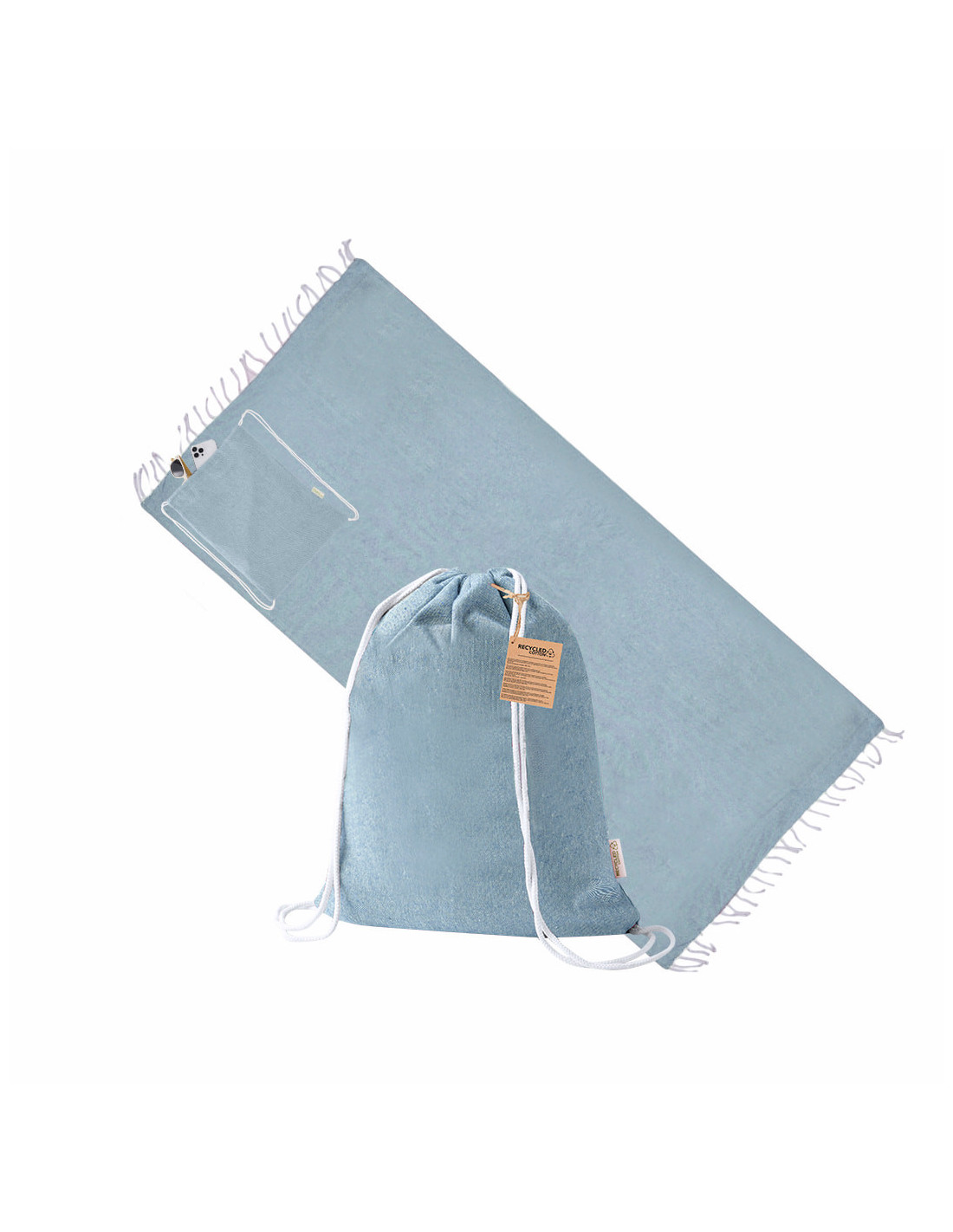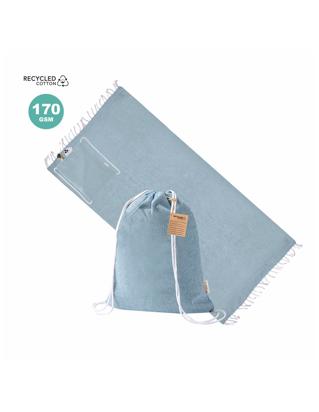 Mochila pareo fabricada en suave algodón reciclado de 170 g/m², un práctico accesorio 2 en 1 ideal para playa, piscina o actividades al aire libre. Incluye un pareo de gran tamaño de 180 x 90 cm con diseño a un color a juego con la mochila. Gracias a su plegado especial, el pareo se recoge fácilmente dentro de la mochila de cuerdas, facilitando su transporte y almacenamiento. Cuenta con etiqueta exterior con logotipo de algodón reciclado que destaca su carácter sostenible. Fabricado en 100% algodón reciclado, es una opción ecológica y funcional perfecta como regalo promocional para verano, eventos o campañas publicitarias. Medidas del pareo: 180 x 90 cm.