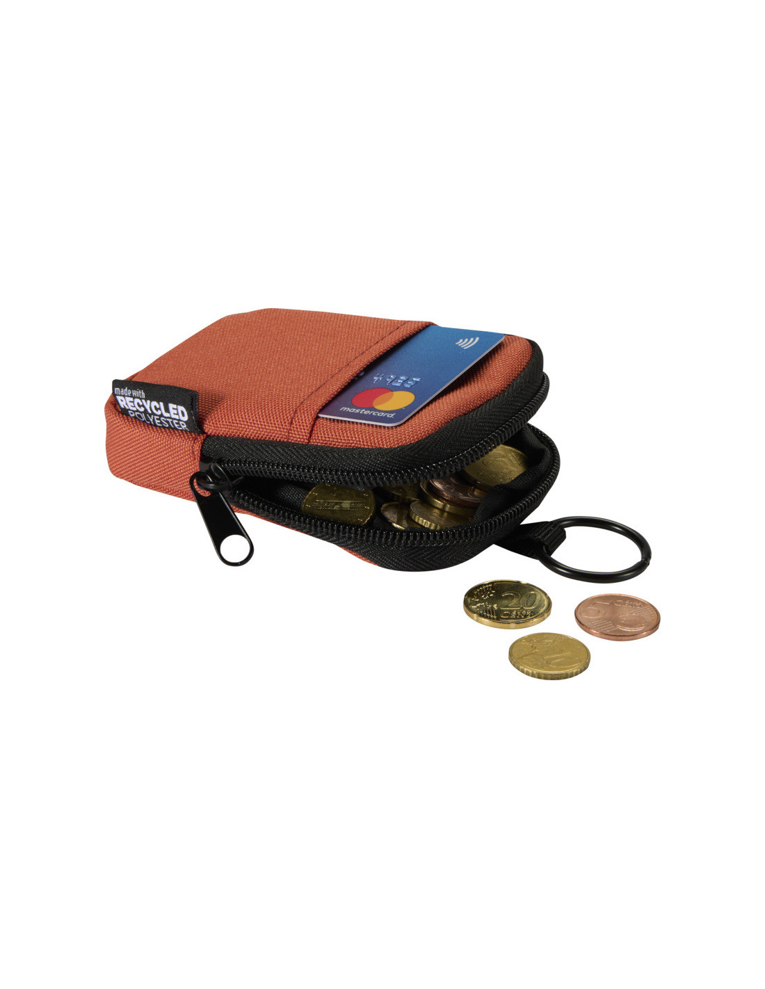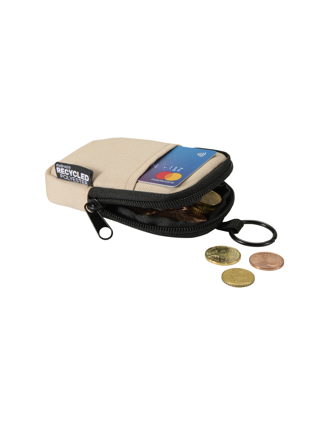 El monedero personalizado con Clip & Go es un accesorio compacto y elegante pensado para mantener organizados los pequeños objetos esenciales en el día a día. Fabricado en poliéster reciclado con certificado GRS, destaca por su diseño sostenible y su acabado repelente al agua, ideal para proteger monedas, llaves, auriculares, tarjetas o cables de carga durante tus desplazamientos. Este práctico monedero cuenta con un compartimento principal con cremallera y un bolsillo exterior frontal de acceso rápido, perfecto para tener siempre a mano lo más importante. Además, incorpora un mosquetón integrado que permite engancharlo fácilmente a mochilas, cinturones, bolsas de deporte o equipaje, convirtiéndolo en una opción muy útil para viajes, eventos o uso diario. Un regalo publicitario ecológico y funcional, perfecto para empresas que buscan un detalle promocional moderno, ligero y sostenible.