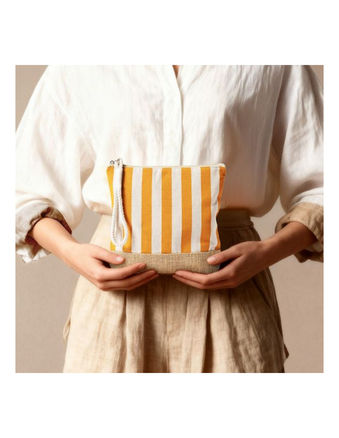 Neceser a rayas en algodón y yute 220g