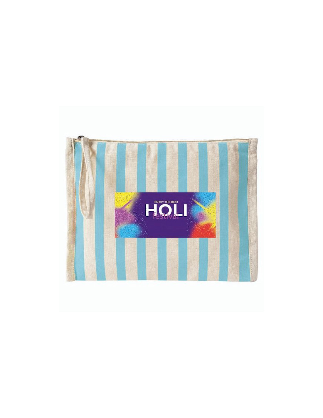 Neceser fabricado en algodón reciclado de 180 g/m², resistente y sostenible, ideal para guardar artículos de higiene, cosmética o pequeños accesorios. Dispone de compartimento principal con cierre de cremallera y tirador tipo pulsera que facilita su apertura y transporte. Diseño práctico y compacto, perfecto para viajes, eventos o promociones ecológicas. Medidas: 26,5 x 19,5 cm.